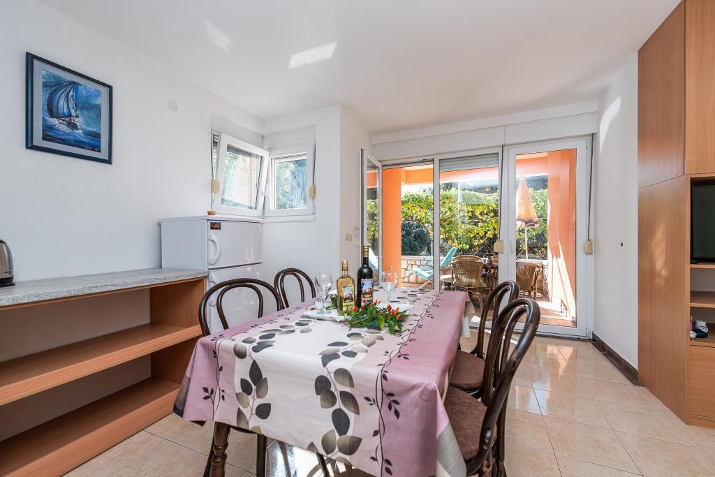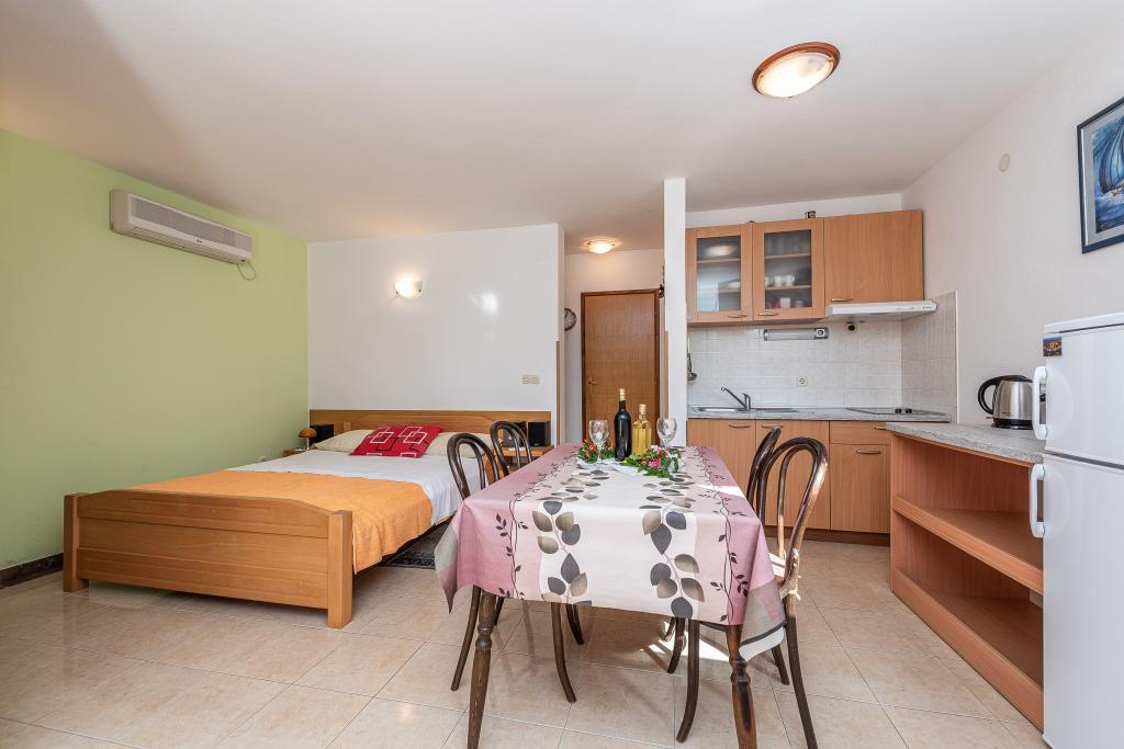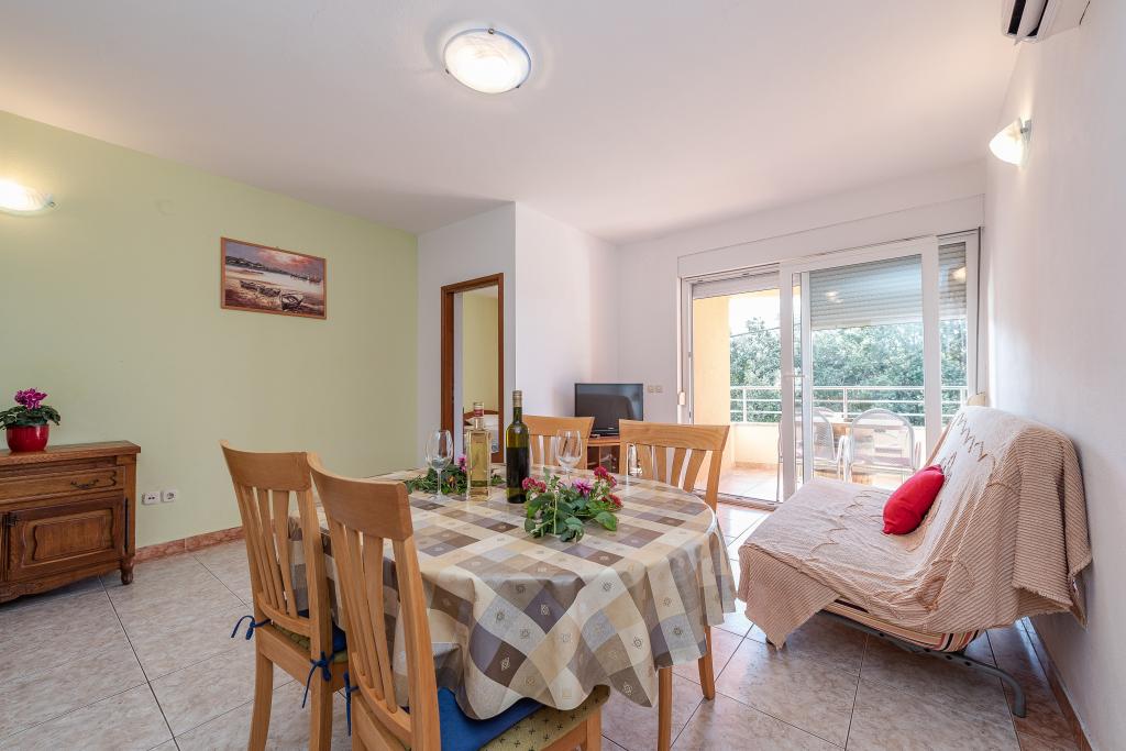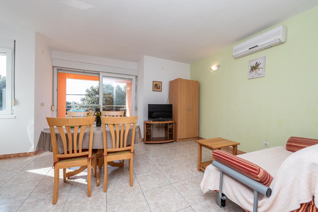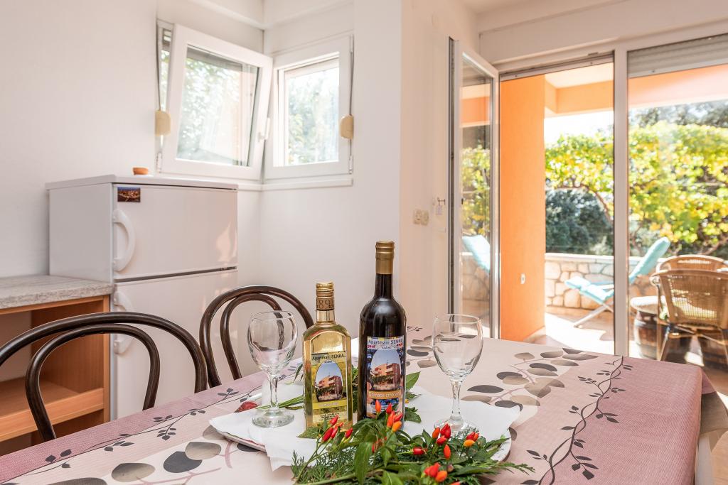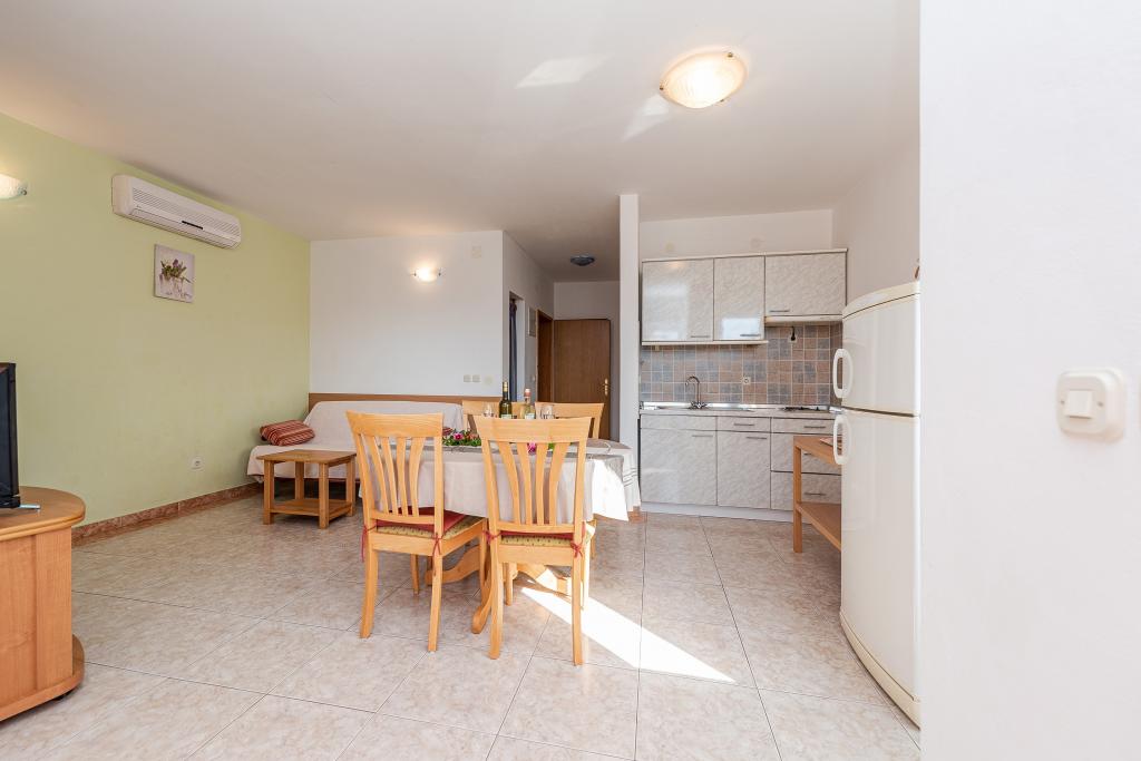 Pobyt upłynął w atmosferze spokoju i odgłosów natury, dzięki dużej ilości zieleni wokół apartamentu. Czuliśmy się jak w domu. Apartament był ładnie urządzony, w pełni wyposażony i czysty, a na zewnątrz znajdował się ogródek z grillem i prysznicem. Łóżko było nieco mniej wygodne. Spędziliśmy miłe chwile w towarzystwie właścicieli, którzy sprawili, że poczuliśmy się ciepło przyjęci. Zadbane plaże, czysta woda, naturalny cień. W pobliżu znajdują się liczne sklepy i znakomite restauracje. Istnieje wiele możliwości pieszych wędrówek. Najlepsza jest w większości zacieniona, żwirowa ścieżka do Petrčane. W mieście można również odwiedzić kino plenerowe.