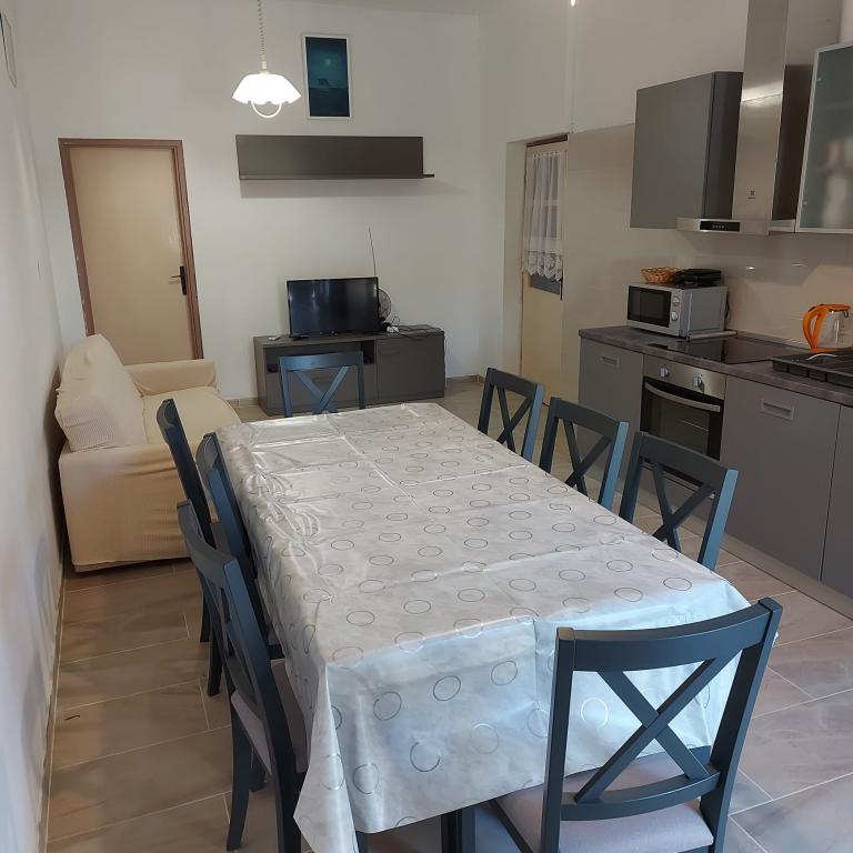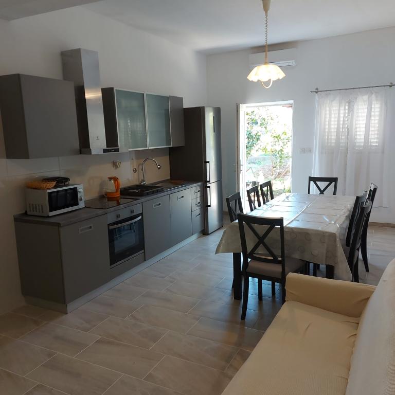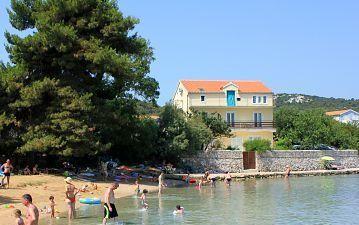 Pasman Wyspa. Apartament A8, A4 +1, A2 +1. Dom zaledwie 5-6 metrów od piaszczystej plaży. Spokojna lokalizacja na wakacje. Bez problemów w tej dziedzinie. Naturalna plaża, szczególnie nadaje się dla rodzin z małymi dziećmi.