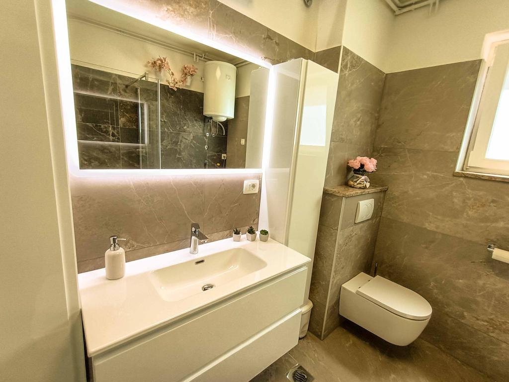 Mieszkanie znajduje się w zachodniej części Krk, 200m. od plaży i tylko 5 min. spacerkiem od centrum miasta, miasto otoczone jest dużą ilością zieleni. Mieszkanie składa się z dwóch dwuosobowych sypialni, jadalni, kuchni, łazienki i przestronnej loggii, posiada również własny zadaszony parking, położony w bardzo spokojnej części miasta, bez dużego ruchu, zaledwie kilka minut spacerem do kilku pięknych plaż miejskich. Z tarasu rozciąga się piękny widok na otaczającą zieleń oraz część miasta i jest to idealne miejsce na spokojny popołudniowy odpoczynek lub przyjemny obiad / kolację. Pokoje wyposażone są we wszelkie urządzenia, które umilą Państwu pobyt i pozwolą poczuć się u nas jak w domu. W cenę noclegu wliczona jest kompletna pościel (pościel, ręczniki, ściereczki kuchenne ...), kuchnia w pełni wyposażona (talerze, naczynia, mikrofalówka, ekspres do kawy, ekspres do kawy ...) oraz sprzątanie końcowe apartamentu. wliczone w cenę. Jest też klimatyzacja, która umili pobyt w upalne i parne dni.