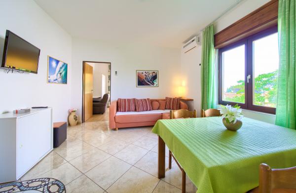 W pełni wyposażone apartamenty w cichej okolicy i Krka, siedzący w trzecim rzędzie do mora.Objekt jest max 5 min spacerem do plaży i 15 minut do centrum miasta, gdzie wszystkie niezbędne udogodnienia.