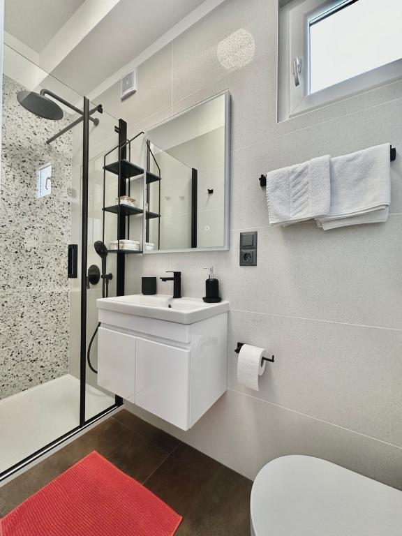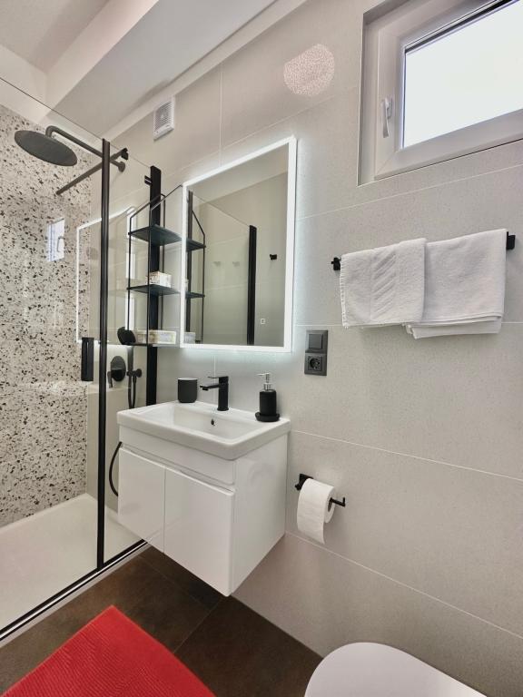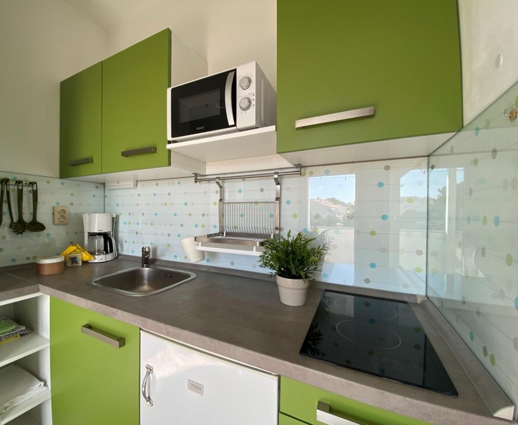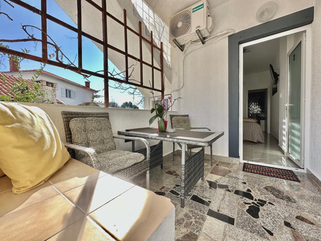Dom położony jest w bardzo dogodnej lokalizacji, w spokojnej okolicy, kilka minut pieszo od plaży i dziesięć minut spacerem do centrum miasta. Obiekt składa się z 5 apartamentów. Trzy z nich to studia dla maksymalnie 2 osób, jeden apartament dla maksymalnie 3 osób i apartament o powierzchni 75 metrów kwadratowych dla maksymalnie 5 osób. Każdy apartament posiada w pełni wyposażoną kuchnię, piękny balkon lub taras, oddzielne wejście i strzeżone miejsce parkingowe. Do dyspozycji gości wspólny ogród ze sprzętem do grillowania. *** Zwierzęta mile widziane po wcześniejszym zgłoszeniu i za dodatkową opłatą 12 eur za dzień (płatne na miejscu).