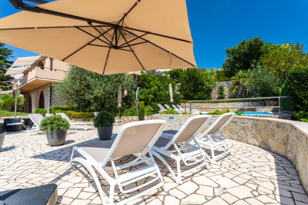 Apartamenty Haus Barbara – oaza spokoju z basenem na wyspie Krk. Witamy w Haus Barbara, rodzinnym obiekcie położonym w urokliwym miasteczku Kornić. Nasze apartamenty położone są w idealnej lokalizacji, zaledwie 3 km od miejscowości Punat i 5 km od miasta Krk. Oferują one idealne połączenie komfortu, nowoczesnego designu i relaksującej atmosfery. Co Cię czeka? 4 nowocześnie urządzone apartamenty, idealne na rodzinne wakacje lub wypad we dwoje. W każdym apartamencie dla Państwa wygody oferujemy WiFi, klimatyzację i telewizję satelitarną. Piękny ogród - idealne miejsce na relaks i obcowanie z naturą. Basen dostępny dla wszystkich gości - można tu ochłodzić się w ciepłe letnie dni. Bezpieczny parking - nie musisz się martwić o swój pojazd. Doskonała lokalizacja: Blisko pięknych plaż, restauracji i atrakcji. Spokojne otoczenie, z dala od tłumów, ale wystarczająco blisko, aby zwiedzić wyspę. Idealne miejsce dla miłośników natury, aktywności sportowych i autentycznych wrażeń na wyspie.