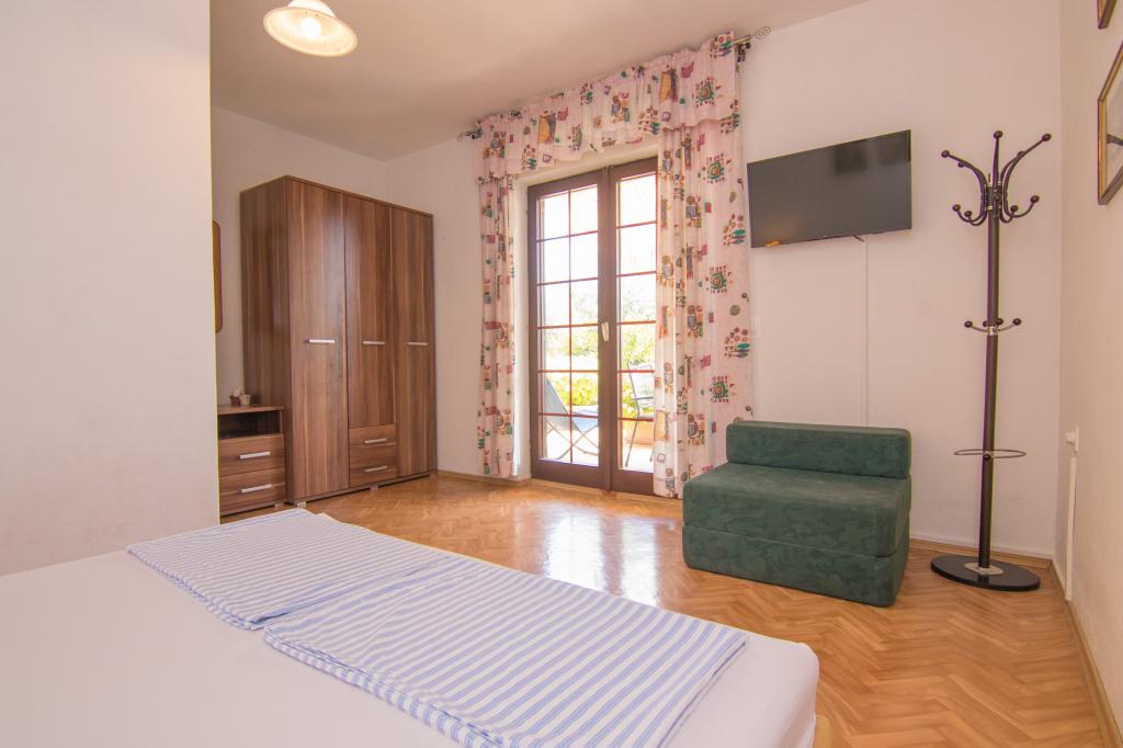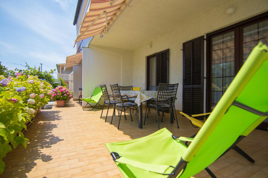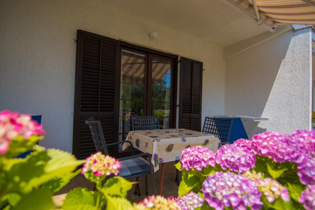 Nasz dom z apartamentami położony jest w spokojnej części Krk. Apartamenty znajdują się na parterze, obok siebie. Są nowocześnie wyposażone. Każdy ma własny taras otoczony kwiatami hortensji. z widokiem na ogród. Parking znajduje się na podwórku, przykryty markizą. Plaża PLAV znajduje się 2-3 minuty spacerem od naszego domu. Właściciele mieszkają na pierwszym piętrze domu.