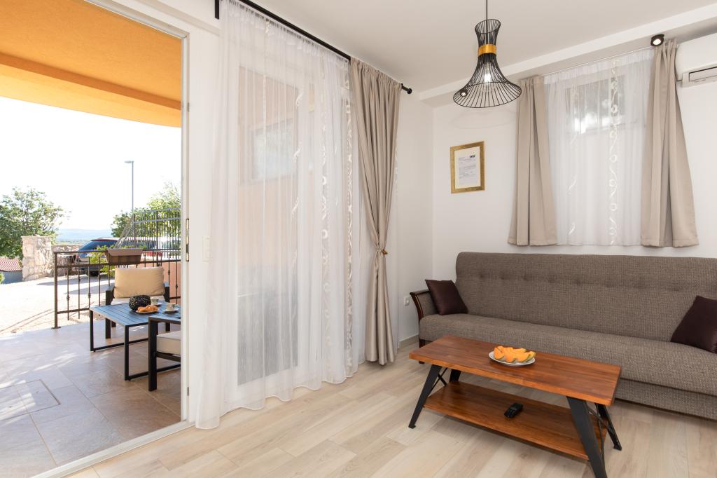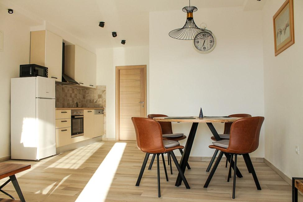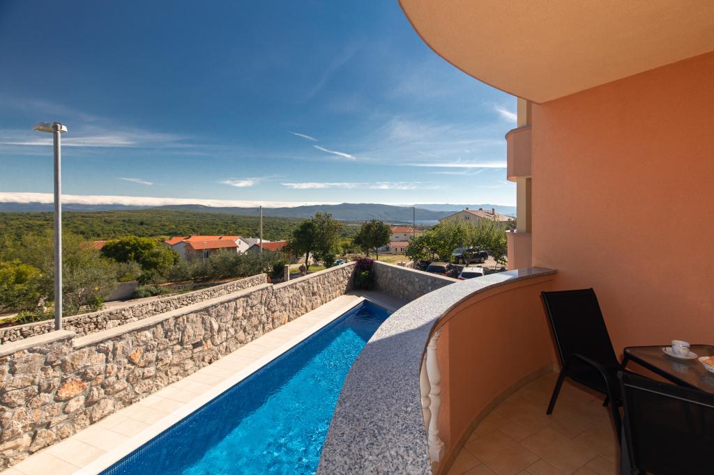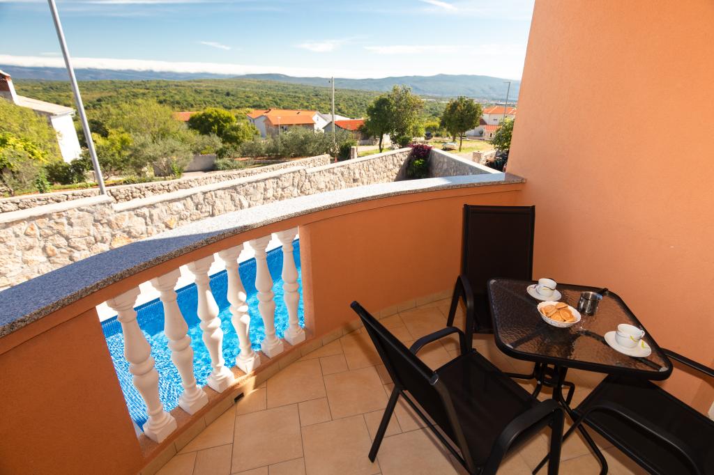 Wieś Salatić znajduje się około 3 km od miasta Krk, na wysokości około 140 m, z przyjemnym, łagodnym klimatem i świeżym powietrzem. Rozpościera się z niego wspaniały widok z Učki na Velebit aż do cudownego błękitnego morza i archipelagu Kvarner (Golog otok, Grgura, Cres...) Apartamenty składają się z jednego (A2 2) lub dwóch (A4 2) pokoi dwuosobowych , kuchnia, jadalnia, pokój dzienny, łazienka i balkon. ) Balkony ze wspomnianym już cudownym widokiem to idealne miejsce na spotkania towarzyskie przy obiedzie lub na spokojny popołudniowy odpoczynek. Wyposażony jest we wszystkie niezbędne urządzenia, które uczynią Państwa pobyt jeszcze przyjemniejszym i piękniejszym. Oferujemy również duży basen ze słoną wodą, doskonałe miejsce do wypoczynku, zabawy i uniknięcia tłumów na plażach. Apartamenty znajdują się zaledwie 5 minut jazdy samochodem od centrum Krk (3,5 km) i wielu miejskich plaż. Osada jest bardzo dobrze skomunikowana, co znacznie ułatwi ci zwiedzanie wiejskich części wyspy