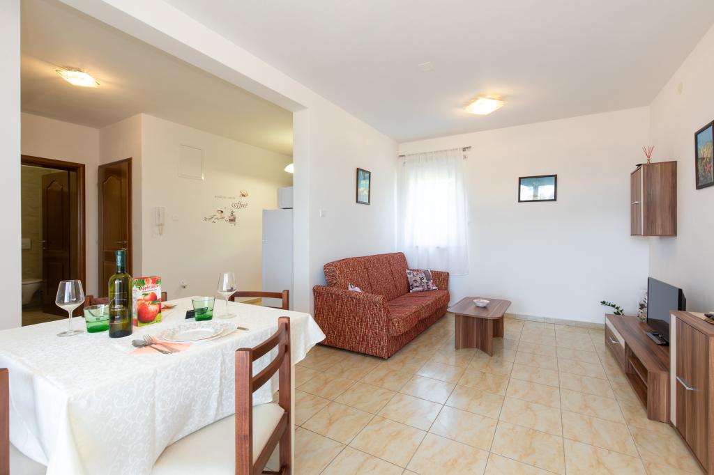 3 km od Krk, dogodnym dla tych, którzy mają środki, aby przenieść, Mieszkanie jest nowe i posiada wszystko, czego potrzebujesz na relaksujący zorganizowanego pobytu. Kuchnia posiada również czajnik i kuchenkę mikrofalową, a także lodówkę i elektryczny do gotowania. Czy pościel na łóżku, kąpieli i kuchnią, detergenty i mydła. Prywatny parking z wykorzystaniem wody do mycia samochodów. Barbecue. Tomislav i jego piękna rodziny dostępne są do złożenia wyjaśnień w uprzejmy, bez ingerencji ever! Zalecany dla 3 osób lub 2 dorosłych i 2 małych dzieci, bo kanapa nie jest podwójne.