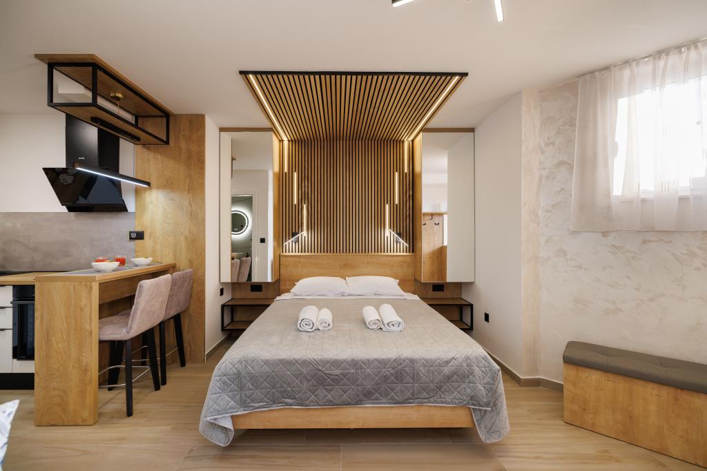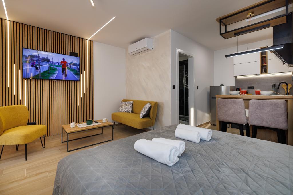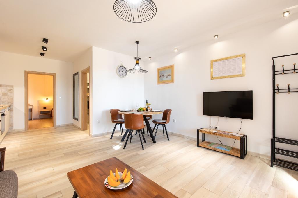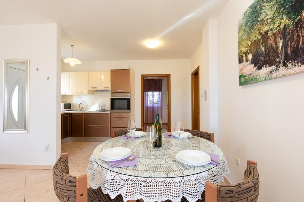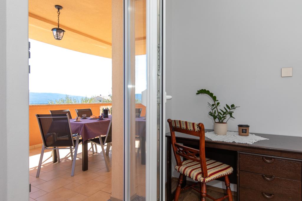 Bardzo przyjazna atmosfera, właściciel mieszka w tym samym domu i zawsze tam dla nas. Mieszkanie jest całkowicie nowe, świetne wyposażone, klimatyzacja, TV, bezpłatny internet, piękny balkon z widokiem na miasto Krk i morze, sypialnia duża i kuchnią bardzo przestronny, parking dla gości. Do morza jest około 3 km od hotelu, więc to mieszkanie jest idealne dla samochodów i motocykli turystów. Gorąco polecam!