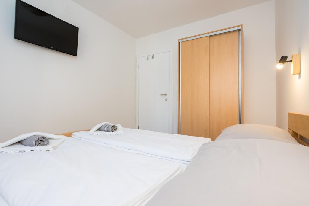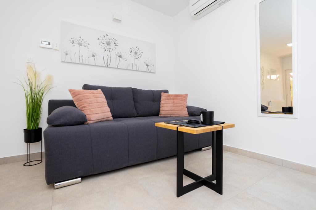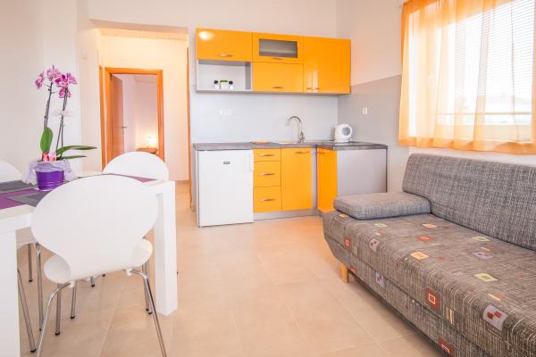 Mieszkanie jest bardzo ładne, nowocześnie urządzone i czyste. Zakwaterowano nas w apartamencie A2+2. Obydwa pokoje są bardzo przestronne i wyposażone w klimatyzację. Pobyt był bardzo przyjemny. Pan Rajko jest bardzo sympatycznym i prawdziwym miejscowym. Jest też pralka, która jest bardzo przydatna. Plaża jest bardzo blisko. Do miasta można dojść w 10 minut. Droga do miasta jest bardzo piękna, a spacer jest dość relaksujący. Chętnie wrócimy do apartamentów.