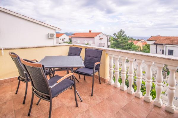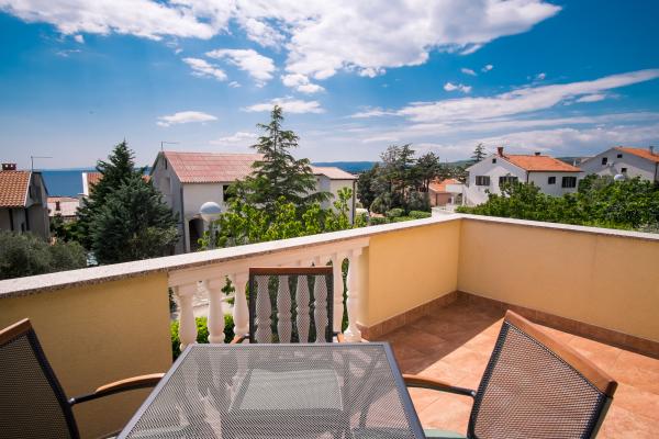 Duży, pięknie urządzony apartament w spokojnej części Krk. Świetne duże łóżko, taras z widokiem na morze, duży telewizor, odpowiedni dla zwierząt...