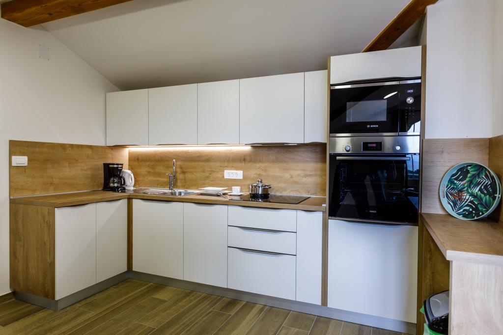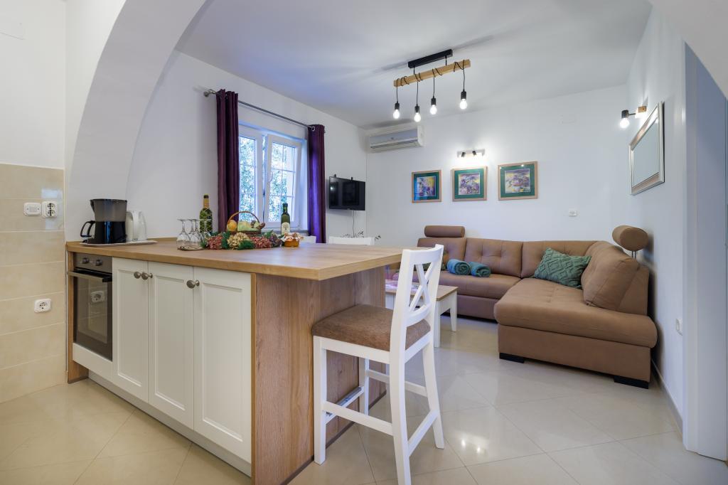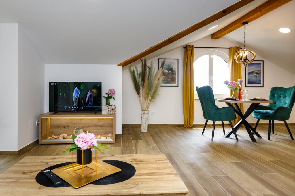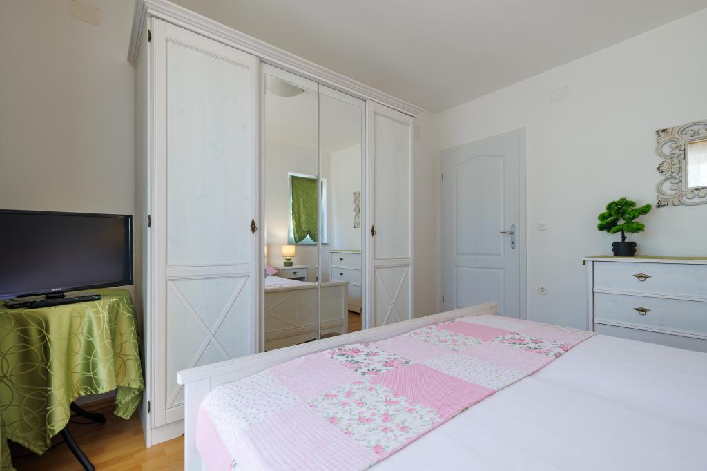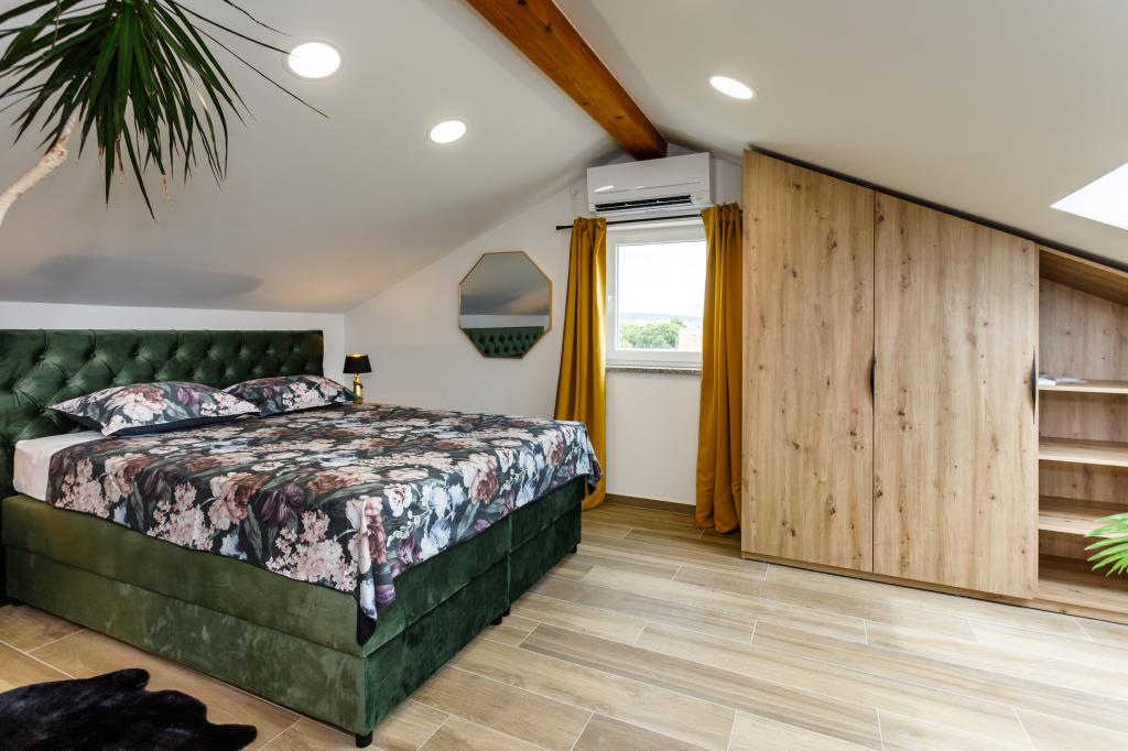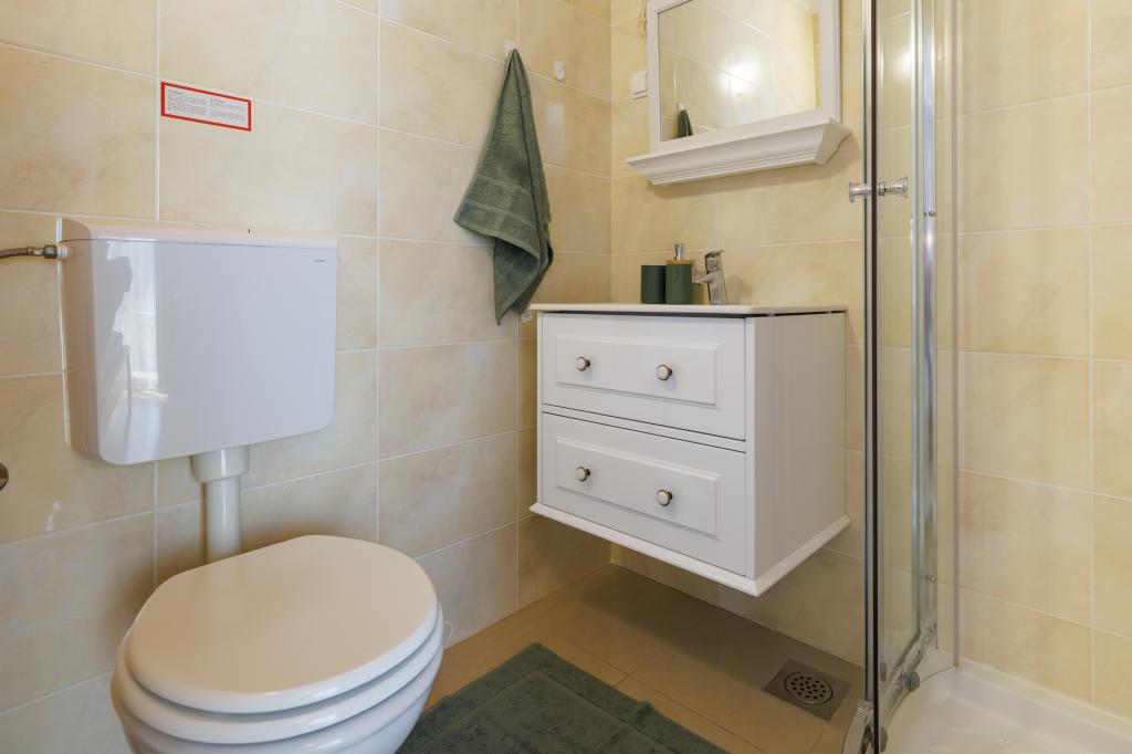 Nowe, nowoczesne apartamenty w spokojnej i atrakcyjnej lokalizacji Krka z widokiem na morze. Dom położony jest 300 metrów od plaży i 700 metrów od centrum miasta. Budynek posiada własny parking i ogród. Apartamenty są dobrze wyposażone i wygodne dla Twojego pobytu.