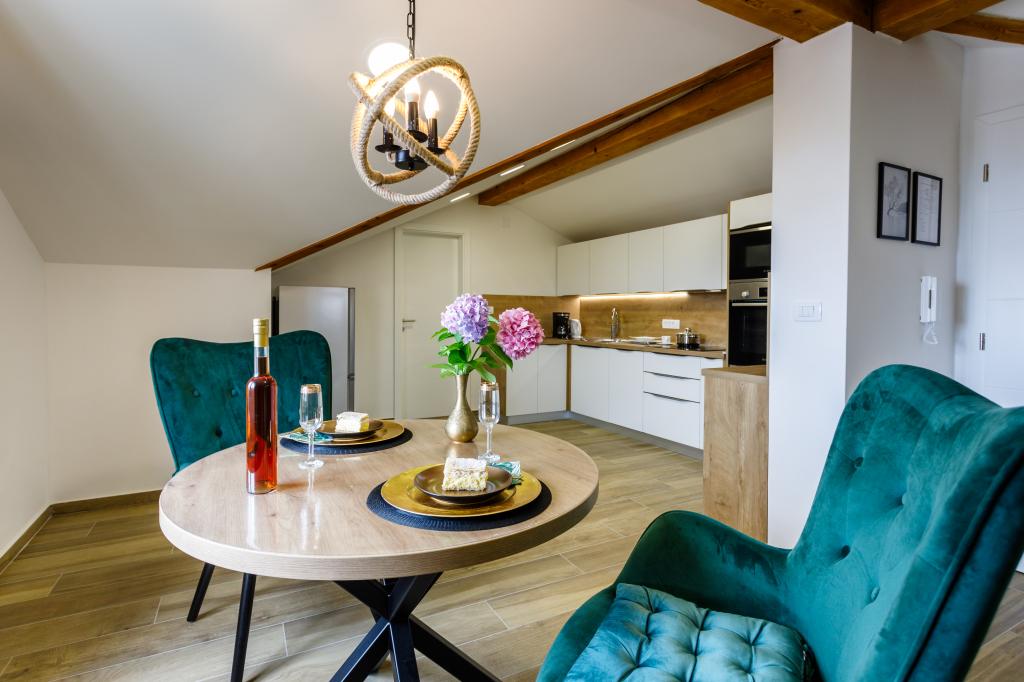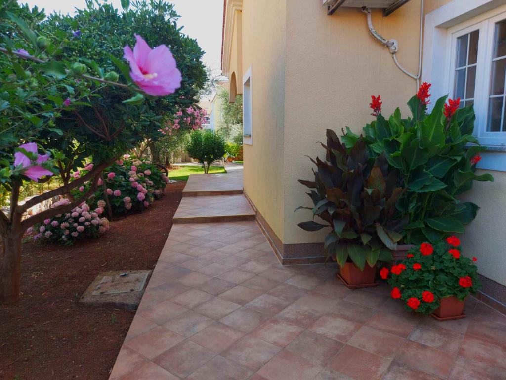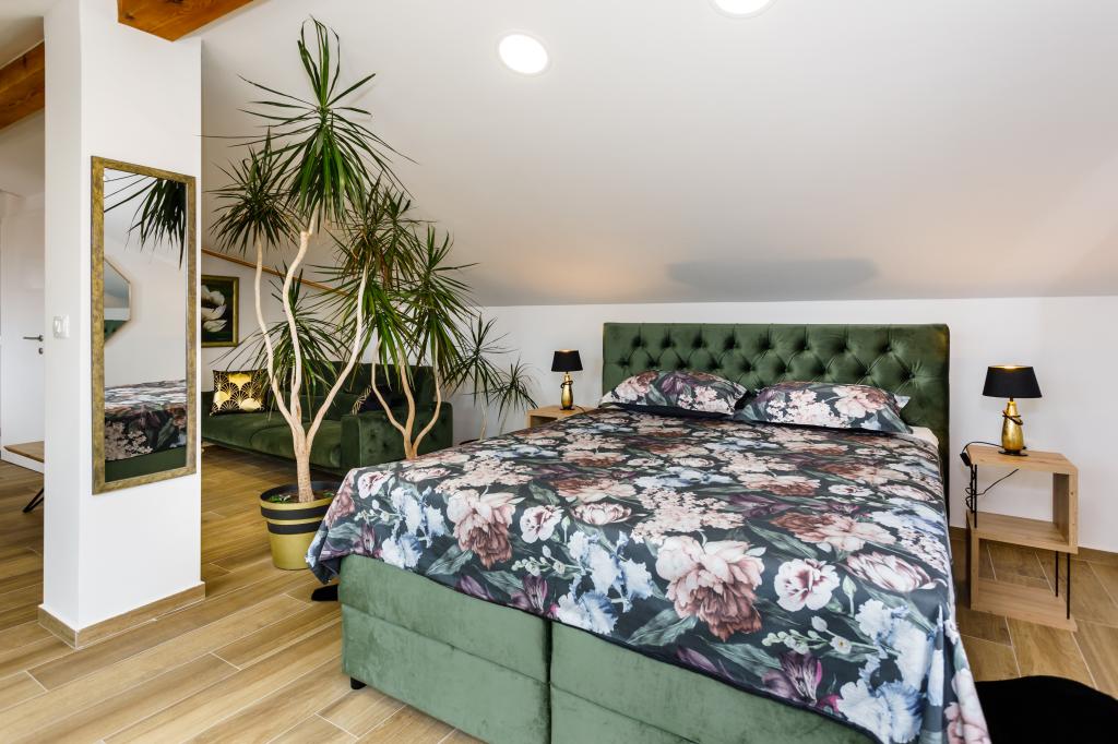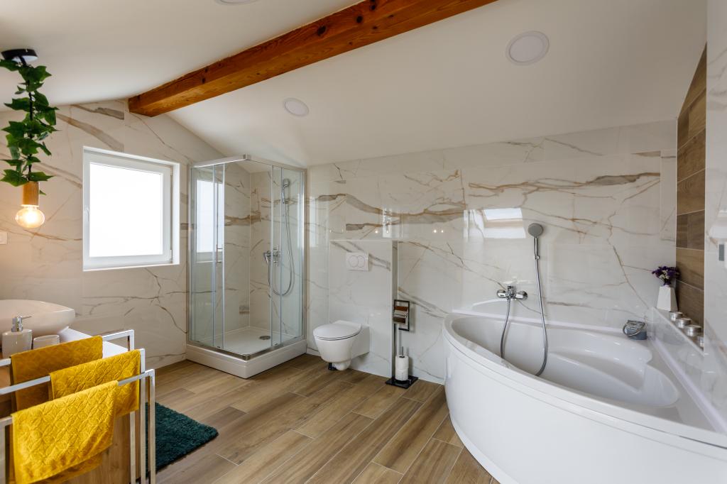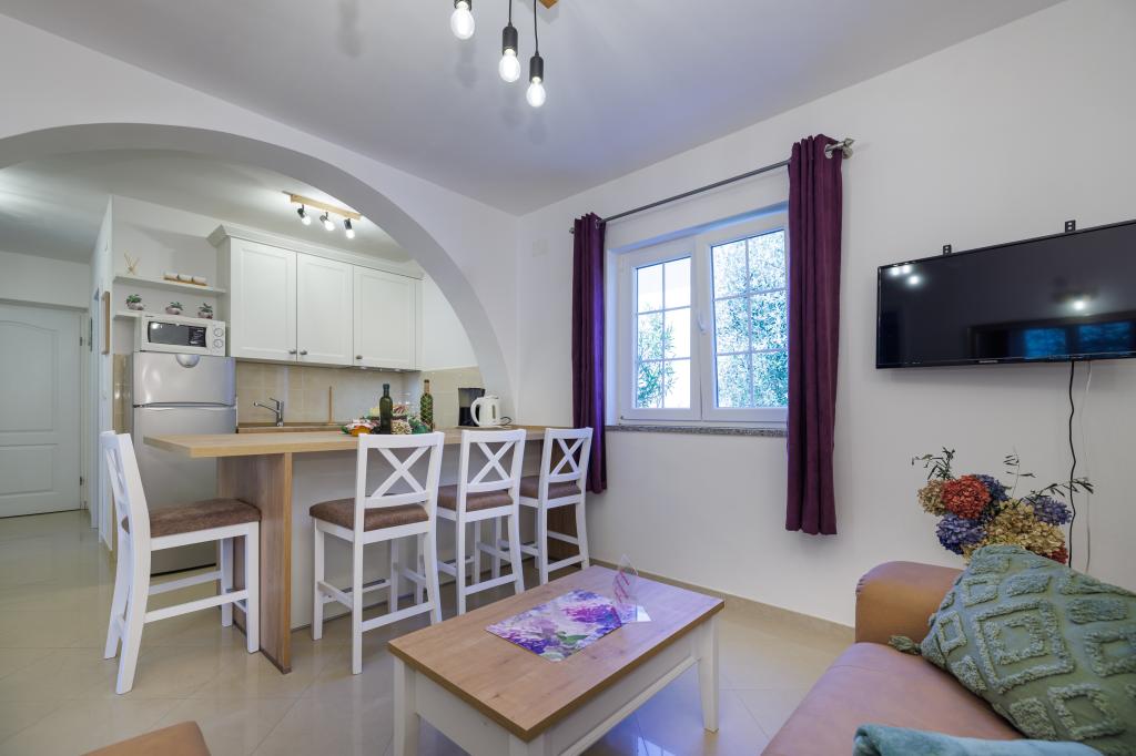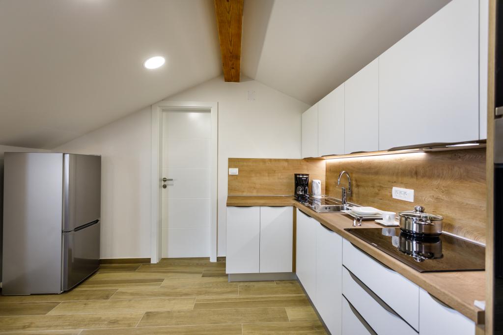 Nowe, nowoczesne apartamenty w spokojnej i atrakcyjnej lokalizacji Krka z widokiem na morze. Dom położony jest 300 metrów od plaży i 700 metrów od centrum miasta. Budynek posiada własny parking i ogród. Apartamenty są dobrze wyposażone i wygodne dla Twojego pobytu.