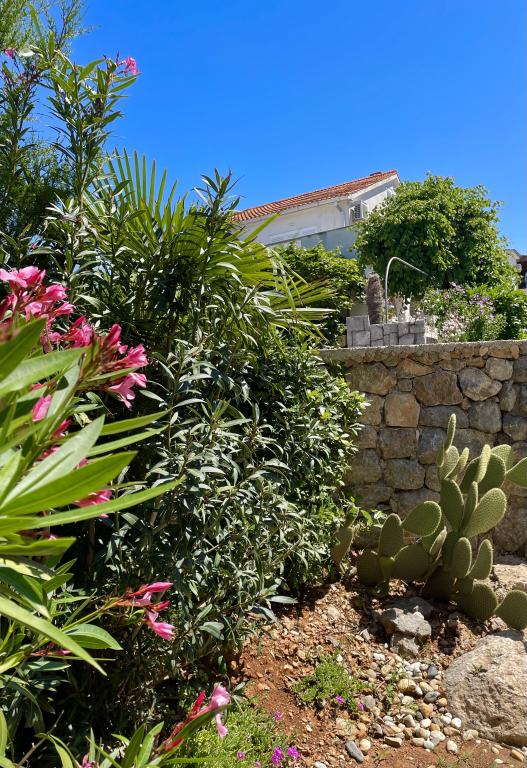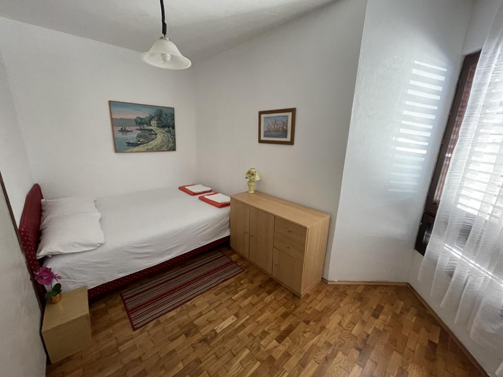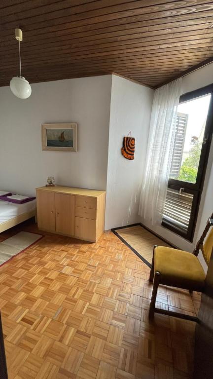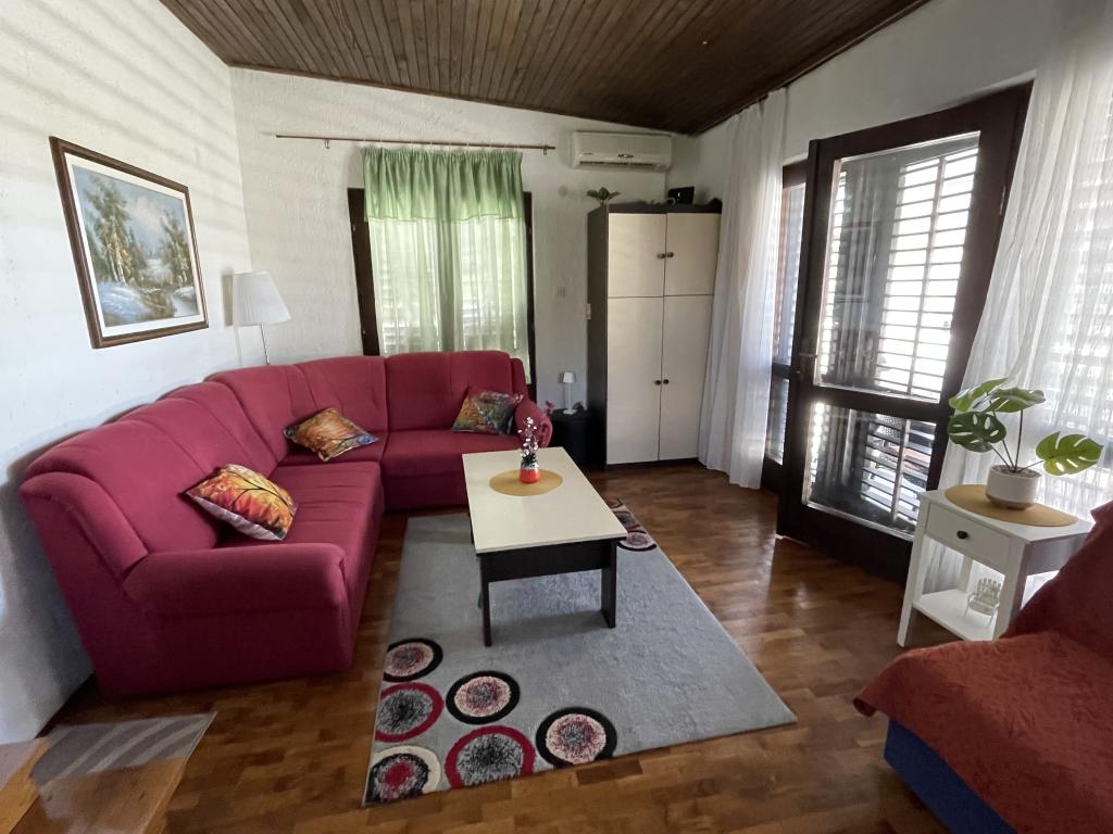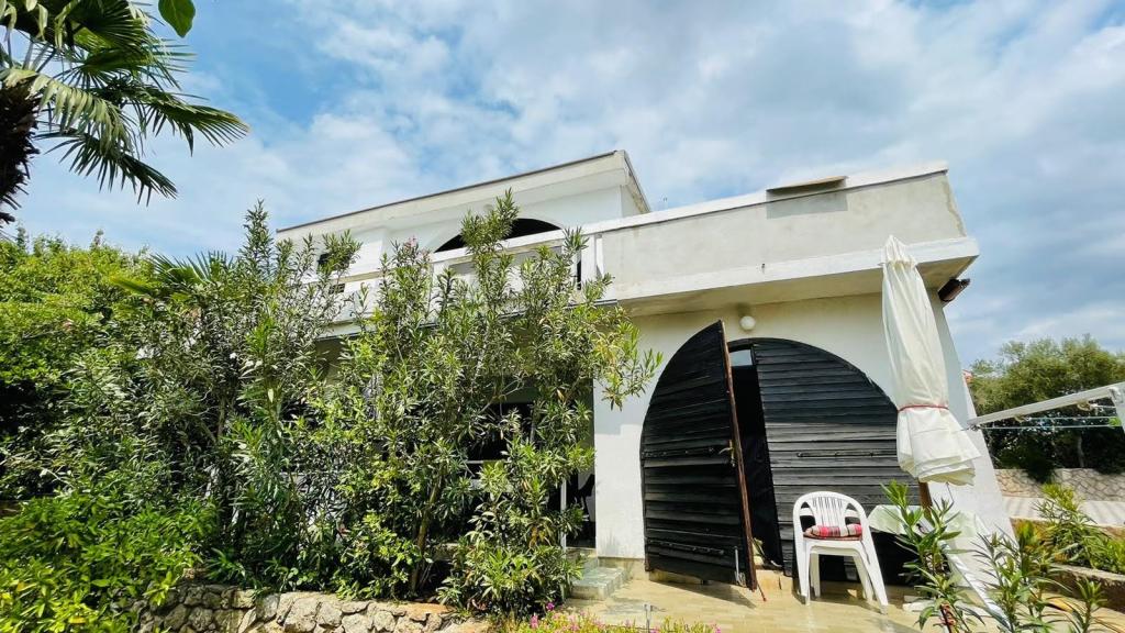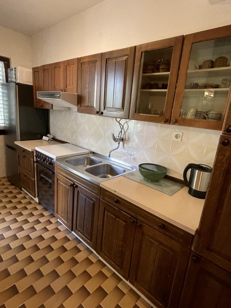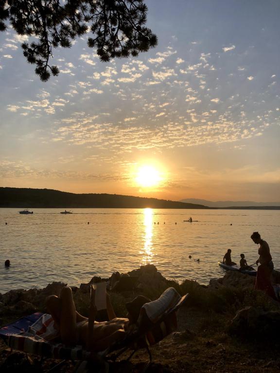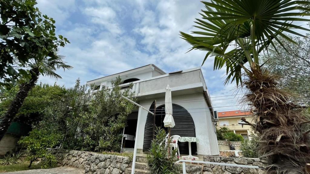 Dom rodzinny z 2 dużymi apartamentami 80m2 otoczony zielenią z przyjaznymi gospodarzami. Spokojna część Krk z domami rodzinnymi. Rodzina wynajmuje od ponad 30 lat. Górne mieszkanie zawiera duży taras z pięknym widokiem, kuchnię i jadalnię, salon, 2 sypialnie i łazienkę. Niższe mieszkanie zawiera taras w cieniu, kuchnię z jadalnią, salon, 2 sypialnie i łazienkę. Obiekt położony 10min spacerkiem do morza. W pobliżu sklepy, restauracje i benzyna to 3min spacerkiem. Parking prywatny. .