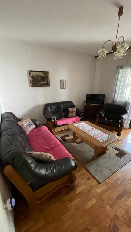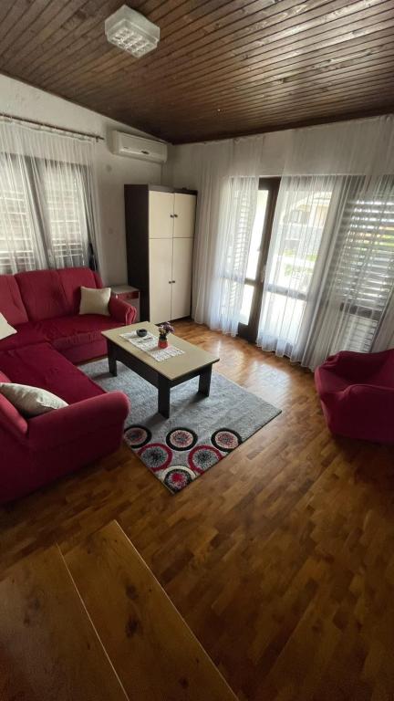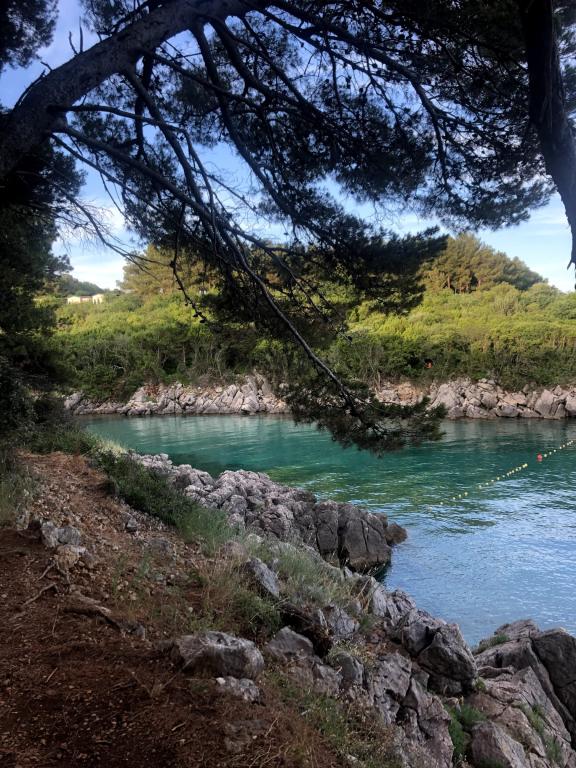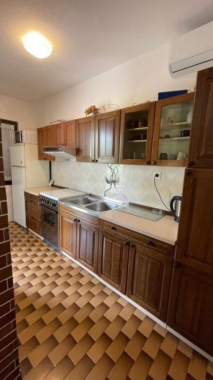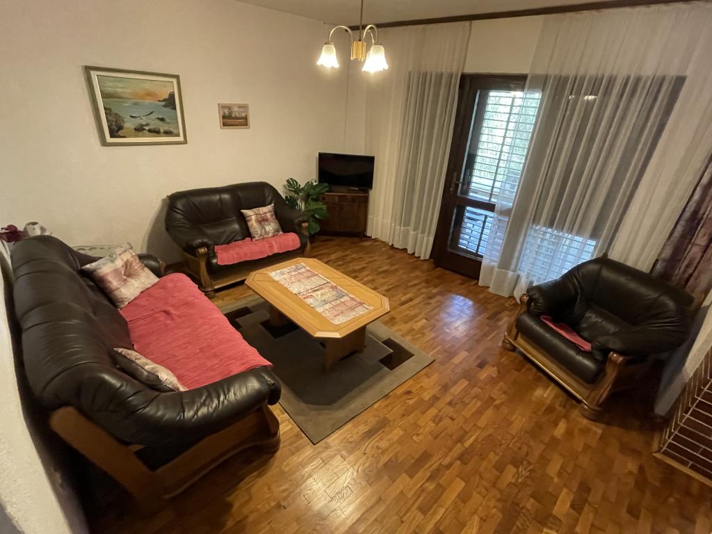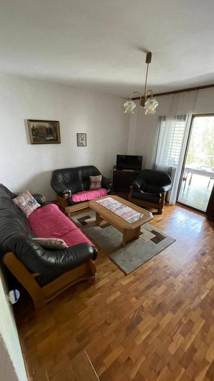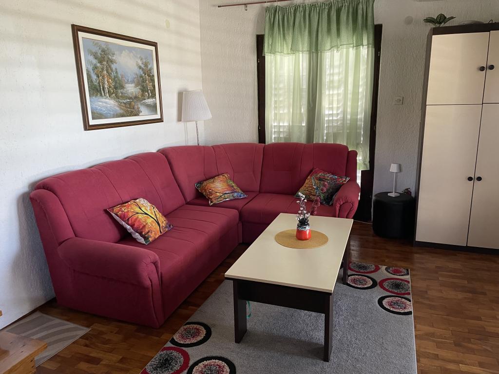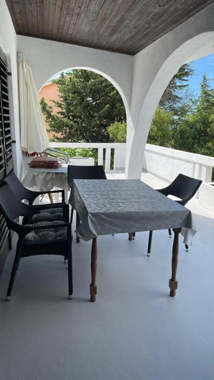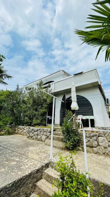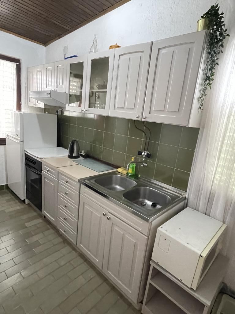 Dom rodzinny z 2 dużymi apartamentami 80m2 otoczony zielenią z przyjaznymi gospodarzami. Spokojna część Krk z domami rodzinnymi. Rodzina wynajmuje od ponad 30 lat. Górne mieszkanie zawiera duży taras z pięknym widokiem, kuchnię i jadalnię, salon, 2 sypialnie i łazienkę. Niższe mieszkanie zawiera taras w cieniu, kuchnię z jadalnią, salon, 2 sypialnie i łazienkę. Obiekt położony 10min spacerkiem do morza. W pobliżu sklepy, restauracje i benzyna to 3min spacerkiem. Parking prywatny. .
