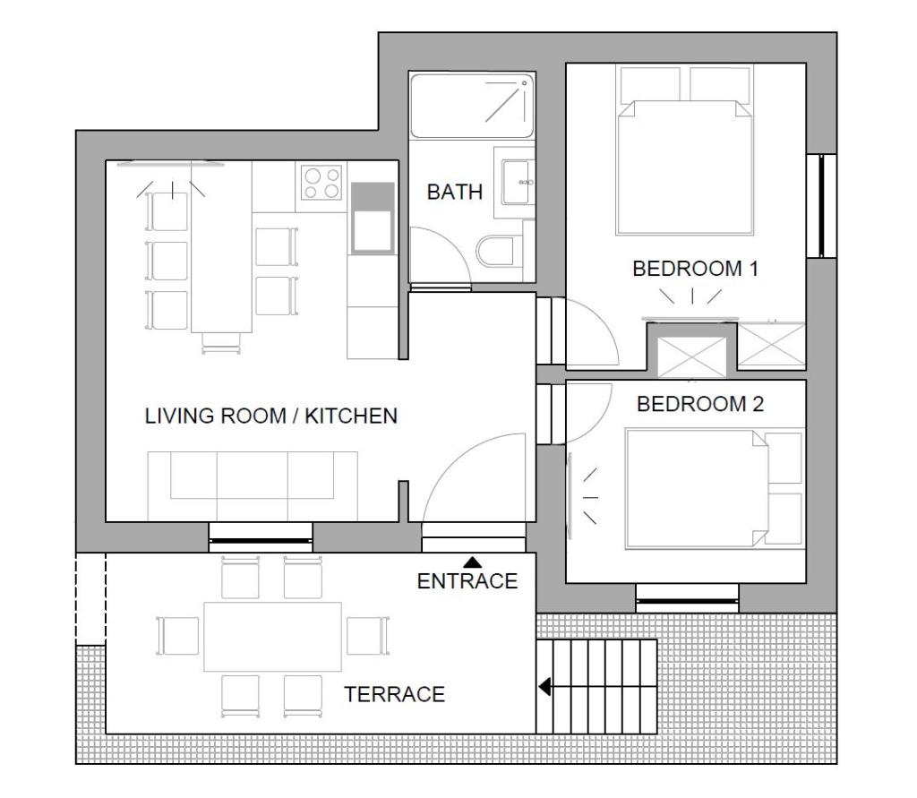 Apartament dla dwóch osób z dwoma dostawkami (29 m2)