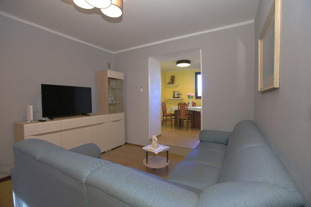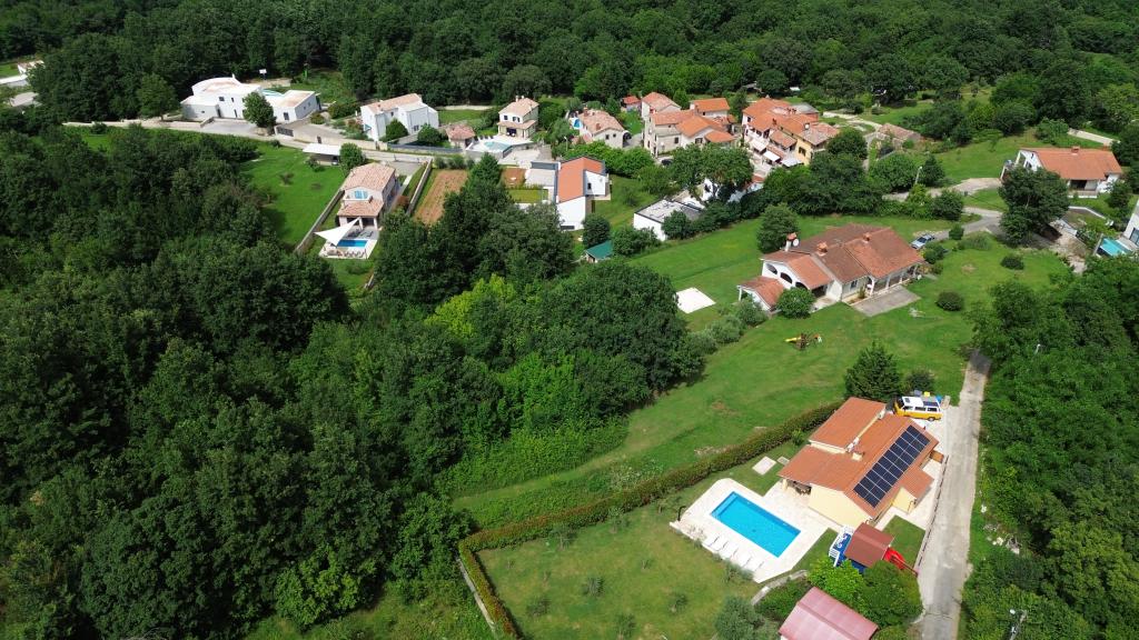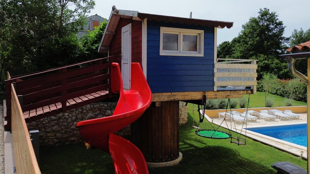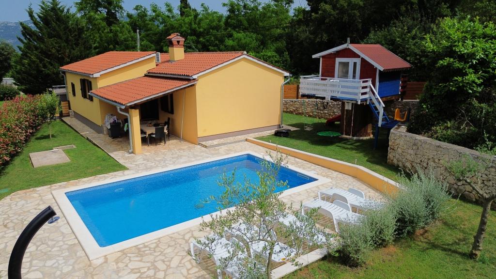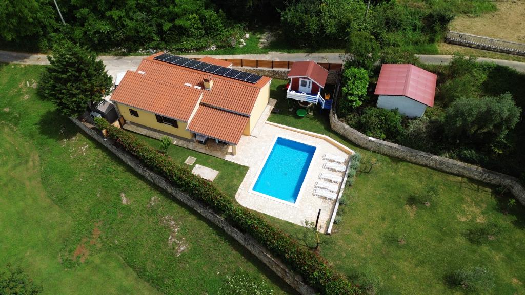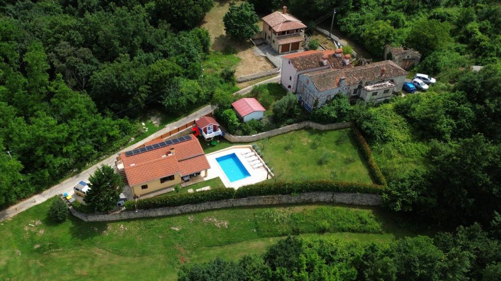 Zapraszamy do naszego domu wakacyjnego położonego w małej, spokojnej miejscowości Vlašići, niedaleko Kršan, z widokiem na przyrodę i górę Učka. To idealna oaza spokoju na rodzinne wakacje lub wakacje z przyjaciółmi. Mamy nadzieję, że będą Państwo cieszyć się ciszą i spokojem, podczas gdy Państwa dzieci będą się bawić w domku na drzewie, na zjeżdżalniach i huśtawkach. Dom o powierzchni 98 m² (korytarz, salon, kuchnia, łazienka, sypialnia z łóżkiem małżeńskim o wymiarach 160 x 200 oraz sypialnia z łóżkiem małżeńskim o wymiarach 160 x 200 i sofą 160 x 200) znajduje się na dużym, ogrodzonym ogrodzie o powierzchni 870 m² z miejscem parkingowym na działce. Dom wyposażony jest w zewnętrzny, podgrzewany basen o wymiarach 7 x 4 i głębokości 140 cm. Woda w basenie jest podgrzewana do maksymalnej temperatury 25 stopni Celsjusza w okresie, gdy jest to konieczne. Największa miejscowość w pobliżu to Kršan, która szczyci się bogatym dziedzictwem kulturowym i historycznym. Również w pobliżu wioski (15 minut drogi) znajduje się miasto Labin, położone na wzgórzu nad Rabac. Labin to cel podróży dla gości poszukujących turystyki kulturalnej i miłośników antyków, znany z licznych galerii, wystaw i imprez plenerowych. Rabac (25 minut drogi) z pięknymi plażami, uważanymi za jedyne z najpiękniejszych na Istrii, z krystalicznie czystym morzem, oraz miastami na półwyspie Istria, które również warto odwiedzić: Pulą, Rovinjem, Umagiem i Porečem, są oddalone o około 1-1,30 minuty. Wyspy Cres i Lošinj, Park Narodowy Brioni w pobliżu Puli oraz miasto Rijeka, trzecie co do wielkości miasto w Republice Chorwacji, oddalone jest o godzinę drogi od wioski. W drodze do nadmorskiej Rijeki, skąd roztacza się piękny widok na zatokę Kvarner i wyspy, warto również odwiedzić Opatiję – miejscowość turystyczną o najdłuższej tradycji w chorwackiej turystyce. Obserwatorium Višnjan położone jest w centr