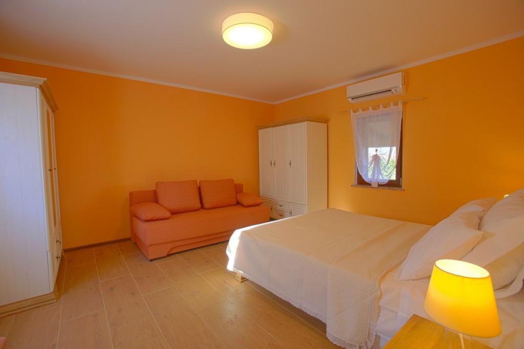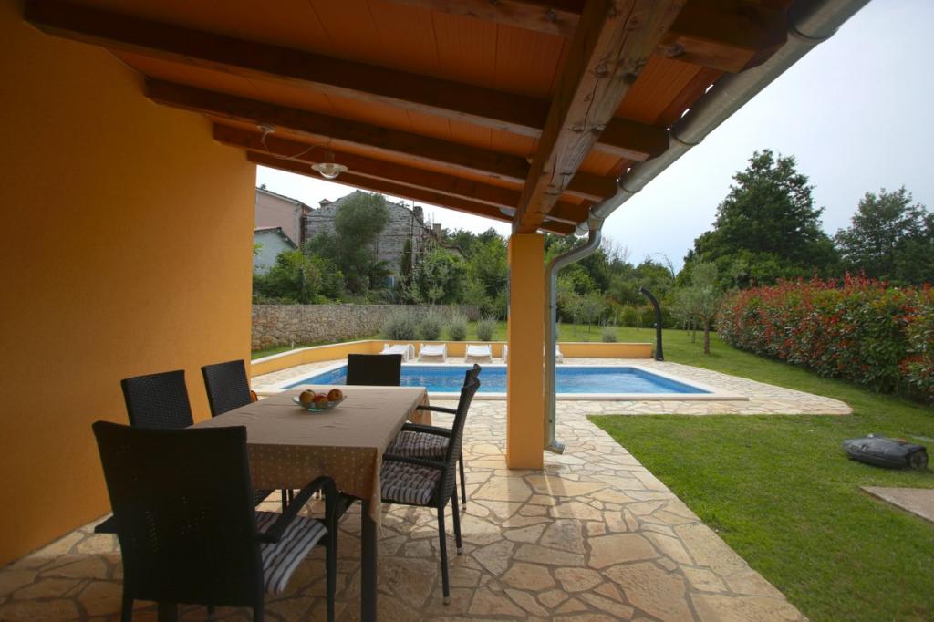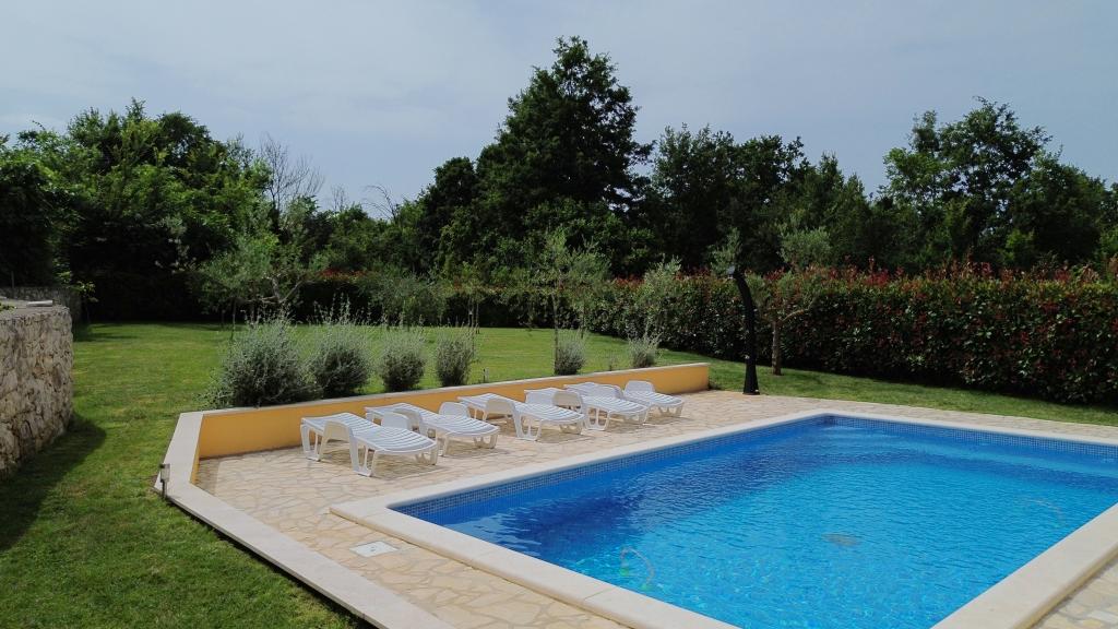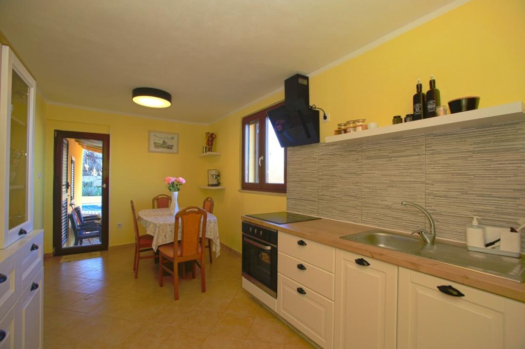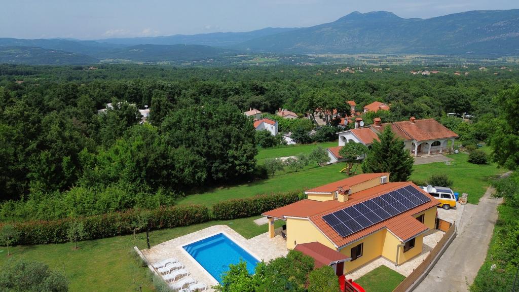 Zapraszamy do naszego domu wakacyjnego położonego w małej, spokojnej miejscowości Vlašići, niedaleko Kršan, z widokiem na przyrodę i górę Učka. To idealna oaza spokoju na rodzinne wakacje lub wakacje z przyjaciółmi. Mamy nadzieję, że będą Państwo cieszyć się ciszą i spokojem, podczas gdy Państwa dzieci będą się bawić w domku na drzewie, na zjeżdżalniach i huśtawkach. Dom o powierzchni 98 m² (korytarz, salon, kuchnia, łazienka, sypialnia z łóżkiem małżeńskim o wymiarach 160 x 200 oraz sypialnia z łóżkiem małżeńskim o wymiarach 160 x 200 i sofą 160 x 200) znajduje się na dużym, ogrodzonym ogrodzie o powierzchni 870 m² z miejscem parkingowym na działce. Dom wyposażony jest w zewnętrzny, podgrzewany basen o wymiarach 7 x 4 i głębokości 140 cm. Woda w basenie jest podgrzewana do maksymalnej temperatury 25 stopni Celsjusza w okresie, gdy jest to konieczne. Największa miejscowość w pobliżu to Kršan, która szczyci się bogatym dziedzictwem kulturowym i historycznym. Również w pobliżu wioski (15 minut drogi) znajduje się miasto Labin, położone na wzgórzu nad Rabac. Labin to cel podróży dla gości poszukujących turystyki kulturalnej i miłośników antyków, znany z licznych galerii, wystaw i imprez plenerowych. Rabac (25 minut drogi) z pięknymi plażami, uważanymi za jedyne z najpiękniejszych na Istrii, z krystalicznie czystym morzem, oraz miastami na półwyspie Istria, które również warto odwiedzić: Pulą, Rovinjem, Umagiem i Porečem, są oddalone o około 1-1,30 minuty. Wyspy Cres i Lošinj, Park Narodowy Brioni w pobliżu Puli oraz miasto Rijeka, trzecie co do wielkości miasto w Republice Chorwacji, oddalone jest o godzinę drogi od wioski. W drodze do nadmorskiej Rijeki, skąd roztacza się piękny widok na zatokę Kvarner i wyspy, warto również odwiedzić Opatiję – miejscowość turystyczną o najdłuższej tradycji w chorwackiej turystyce. Obserwatorium Višnjan położone jest w centr