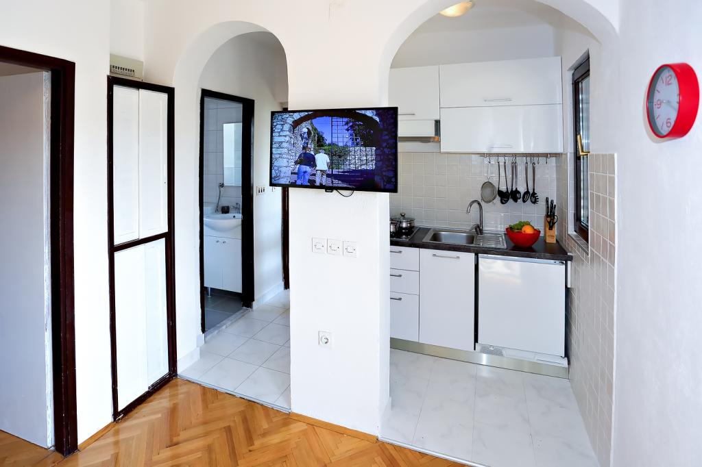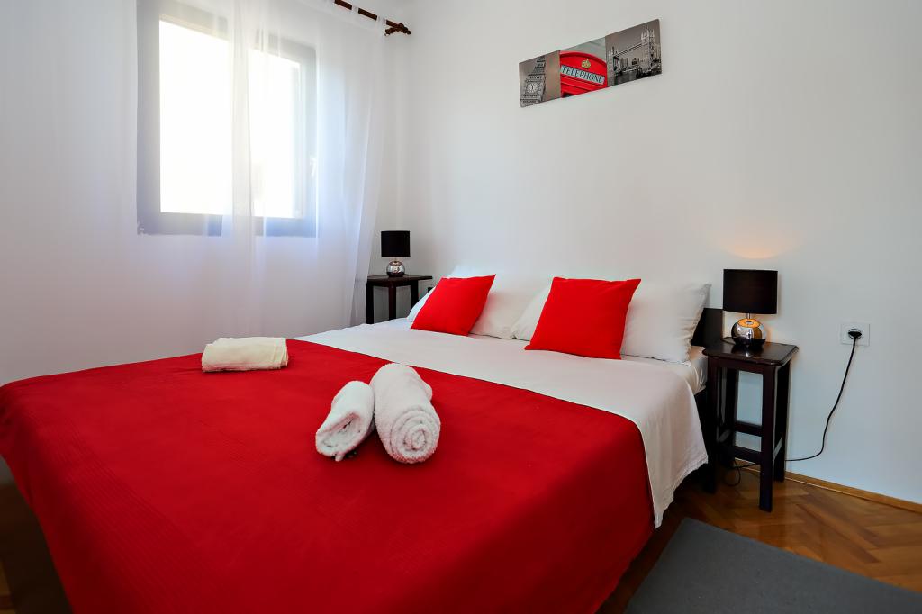 Apartamenty Nena znajdują się na wyspie Ugljan w pięknym i cichym miejscu Goście mogą wynająć dwa apartamenty. Jeden na 4+2 0 pokoi a drugi na 2 osoby.Apartament 4+2 składa się z dwóch sypialni, kuchni, jadalni i pokoju dziennego z rozkładaną sofą.Kuchnia nowocześnie wyposażona we wszystkie sprzęty (2 lodówki, zmywarka, piekarnik, mikrofalówka.... Na dużym tarasie znajduje się szklane ogrodzenie, więc wydaje się, że jesteś na plaży. dwie osoby 38m2 Składa się z małej sypialni, łazienki, kuchni z jadalnią z balkonem.