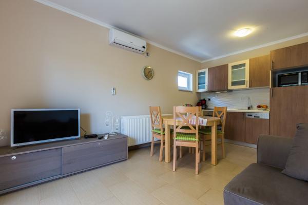 Opłata jest wliczone w cenę.Doskonałe apartamenty. Bardzo czysto. Pani zadbała o czyste ręczniki i pościel (wymieniane po kilku dniach). Doskonała lokalizacja, kilka różnych plaż w odległości 2-5 minut. Piękny widok na przystań. Basen czysty i zadbany, w nocy oświetlony. Polecić!