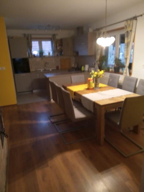 Dom wakacyjny położony na niewielkim wzniesieniu z pięknym widokiem na dolinę Sutlan i Słowenię. Ten prefabrykowany dom zawiera 2 sypialnie, jedną łazienkę z kabiną prysznicową i ogrzewaniem podłogowym, duży salon z telewizorem i dostępem do MAX tv i WIFI, dużą kuchnię ze sprzętem do gotowania i zmywarką. W salonie znajduje się duży gliniany kominek opalany drewnem, a dom posiada centralne ogrzewanie gazowe. Do domu przylega zadaszony taras, na którym znajduje się duży rożen/grill i piec chlebowy. Taras może pomieścić do 20 osób. Za domem znajduje się miejsce przeznaczone do zaparkowania kilku pojazdów.