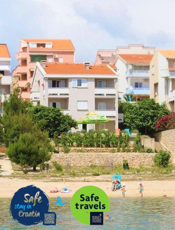 Ogólny Duda Apartamenty znajdują się w małej mieszkaniowej letnim Vidalići, nad brzegiem zatoki wewnętrznej (Zrce, Caska) otacza wyspę Pag. Dom położony jest 20 m od plaży (pierwszego rzędu). Dom położony jest w pięknym ogrodzie, pełnym lawenda, oleander i innych roślin śródziemnomorskich. Mieszkania są w pełni wyposażone w klimatyzację, TV, SAT, kuchenka mikrofalowa ... Każdy pokój Oferujemy trzy apartamenty (niebieski, różowy, pomarańczowy) z widokiem na morze i jeden apartament. Każdy apartament wyróżnia się ze względu na jego harmonijnie zaprojektowanych wnętrzach barwami. Apartamenty składają się z trzech pokoi (salon, kuchnia, sypialnia i łazienka) oraz dwa balkony z widokiem na morze. Każdy apartament może pomieścić cztery osoby. Kawalerka (zielony dekorowanie wnętrz) składa się z dwóch pokoi (sypialnia kuchnia i łazienka) i dużym balkonem 12m2.