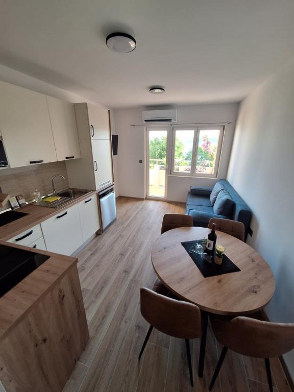 Dom rodzinny z niedawno odnowionym apartamentem (A2+1). Taras z widokiem na morze. Przestronny ogród, parking, prysznic na zewnątrz. Spokojna lokalizacja, blisko piaszczystej plaży i placu zabaw dla dzieci. W pobliżu nowa ścieżka rowerowa i do joggingu przez gaje oliwne. Sypialnia z podwójnym łóżkiem i otwartym salonem oraz dodatkowym łóżkiem. Telewizor w sypialni i salonie. Zmywarka i pralka. Łazienka z kabiną prysznicową. Wszystko NOWE!