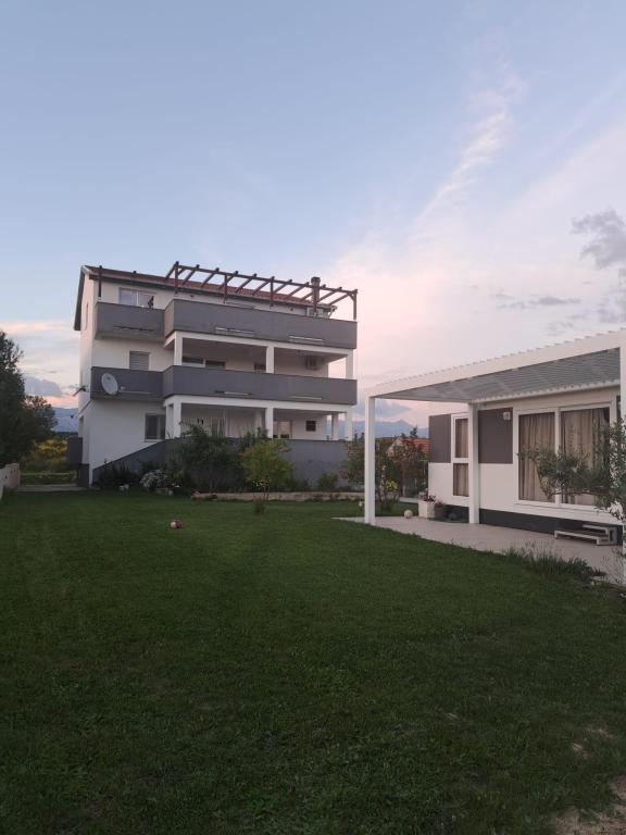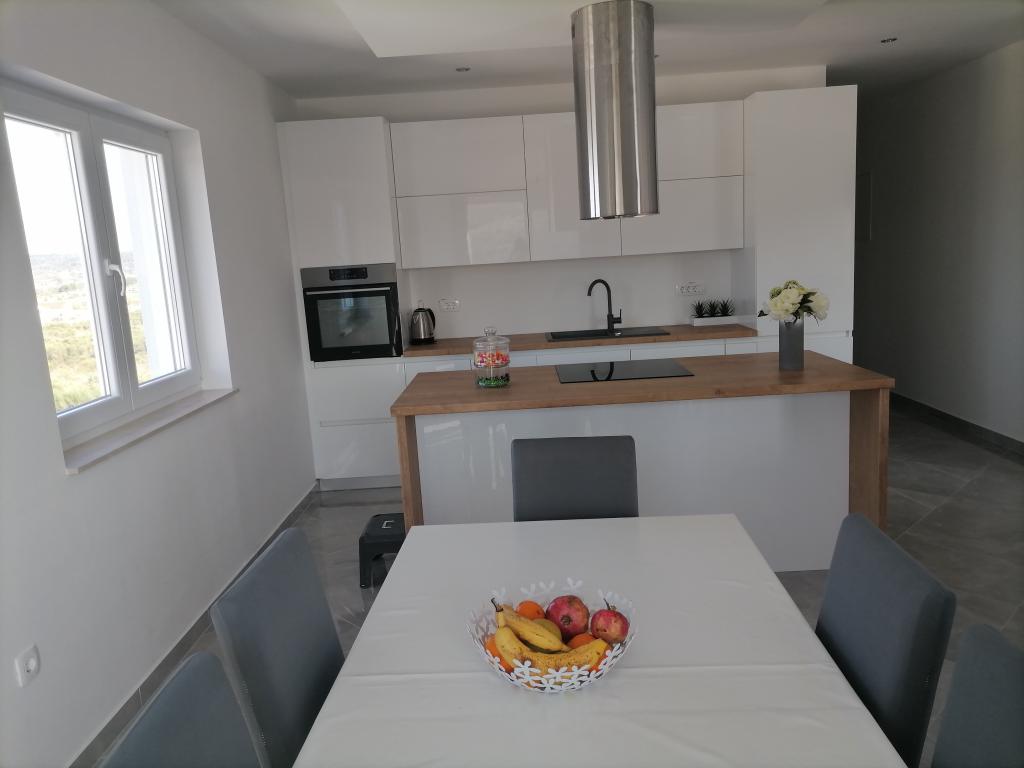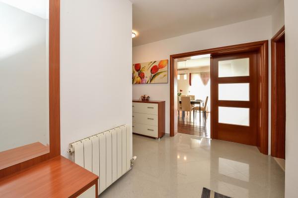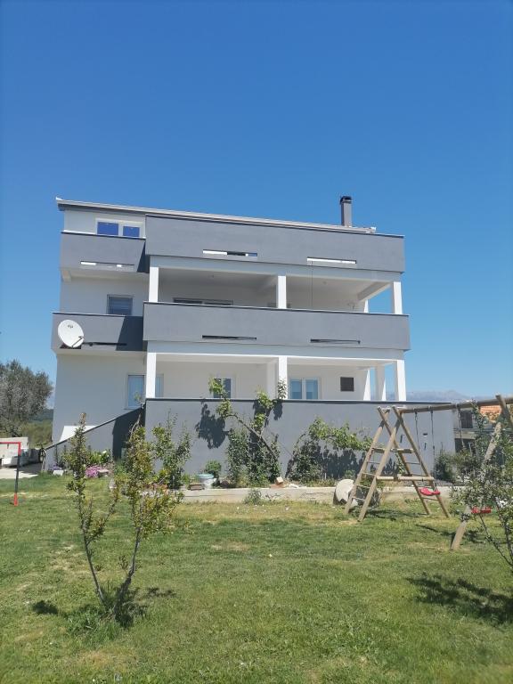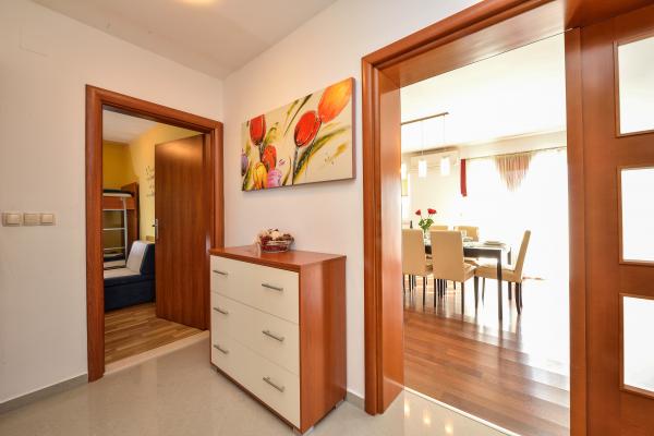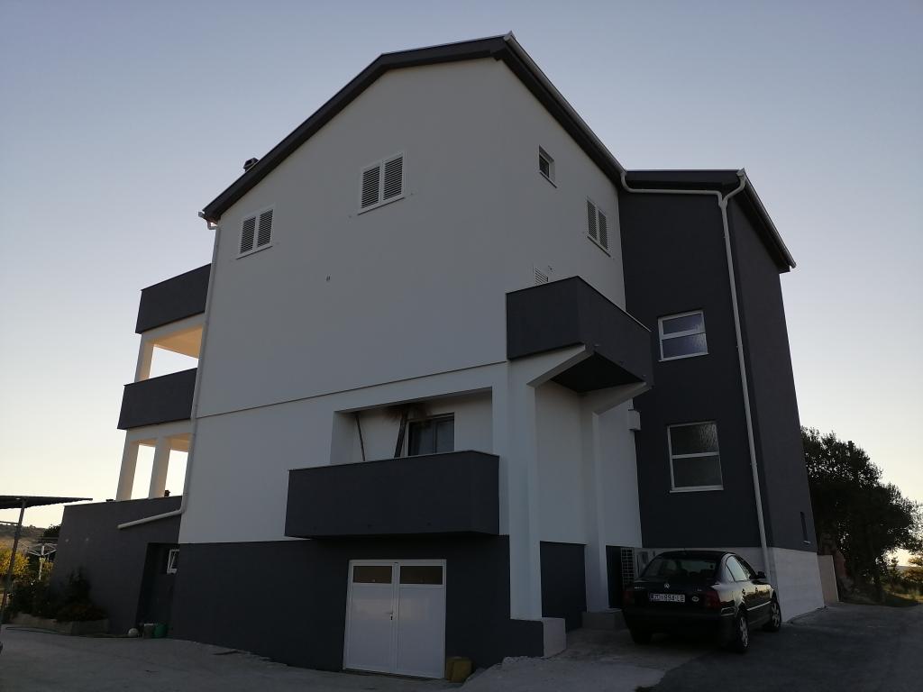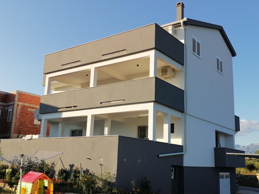 Apartamenty znajdują się w domu rodzinnym. Oba mają 100 metrów kwadratowych i taras o powierzchni 30 metrów kwadratowych. Apartament 1 znajduje się na 1. piętrze domu. Ma dwa pokoje i dwa dodatkowe łóżka. Ma dwie łazienki. Apartament 2 znajduje się na drugim piętrze domu. Ma 3 pokoje i jedno dodatkowe łóżko. Ma 2 łazienki. Podwórko jest przestronne i nadaje się do zabawy (huśtawki, zjeżdżalnia, bramki). Zapewniono zacienione miejsce parkingowe. Plaża jest piaszczysta, morze jest płytkie i ciepłe, idealne dla rodzin z małymi dziećmi.
