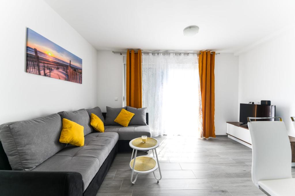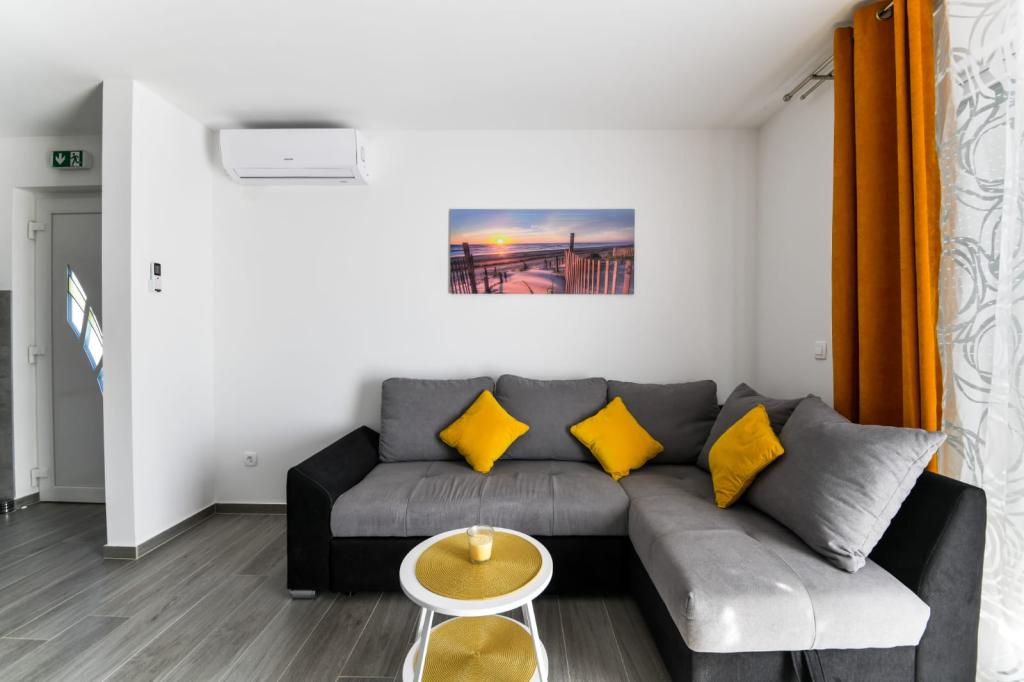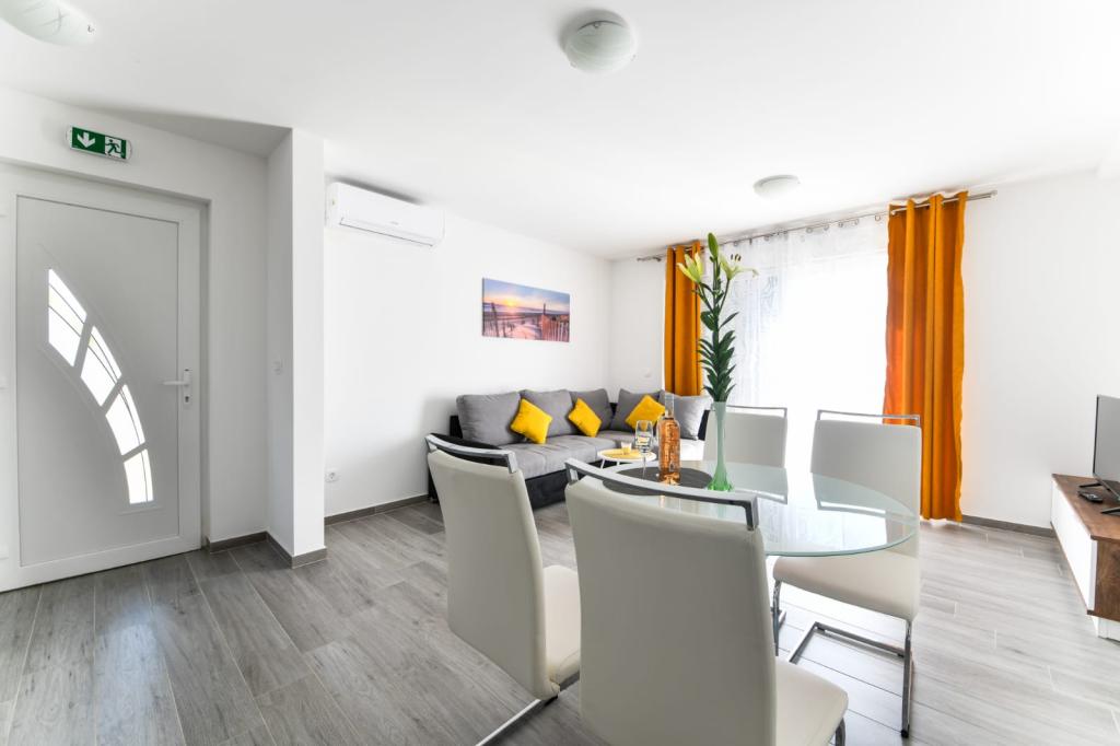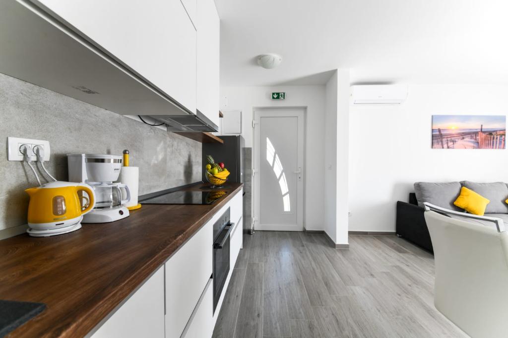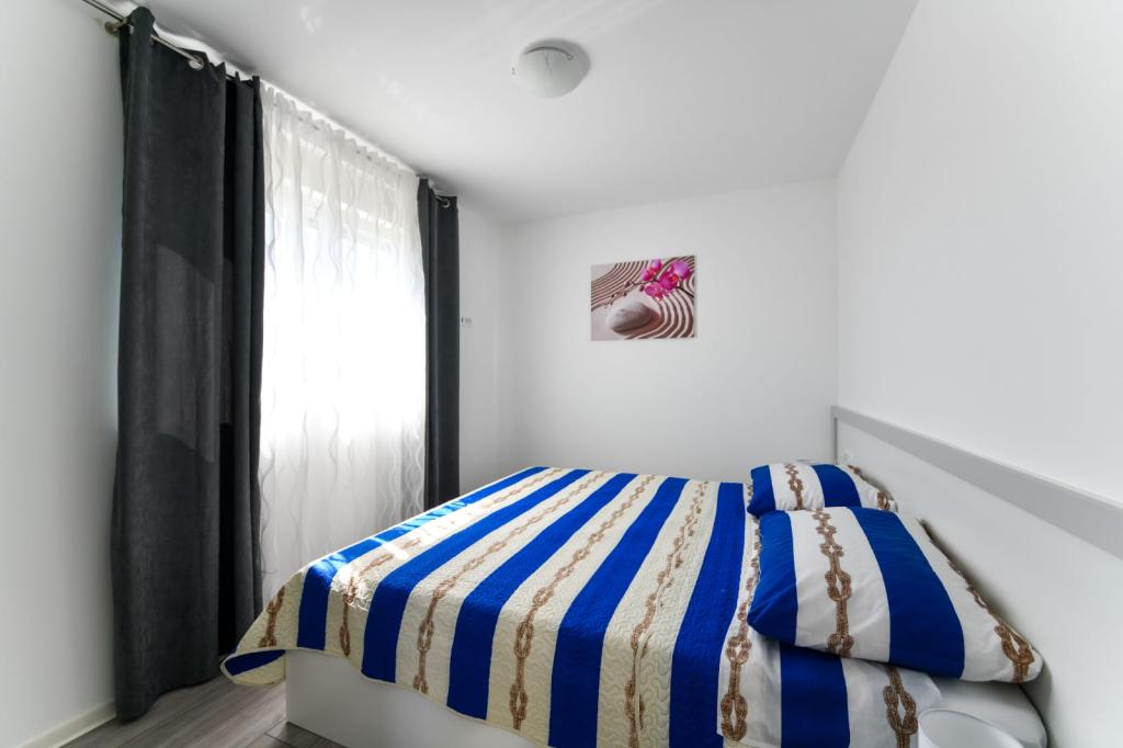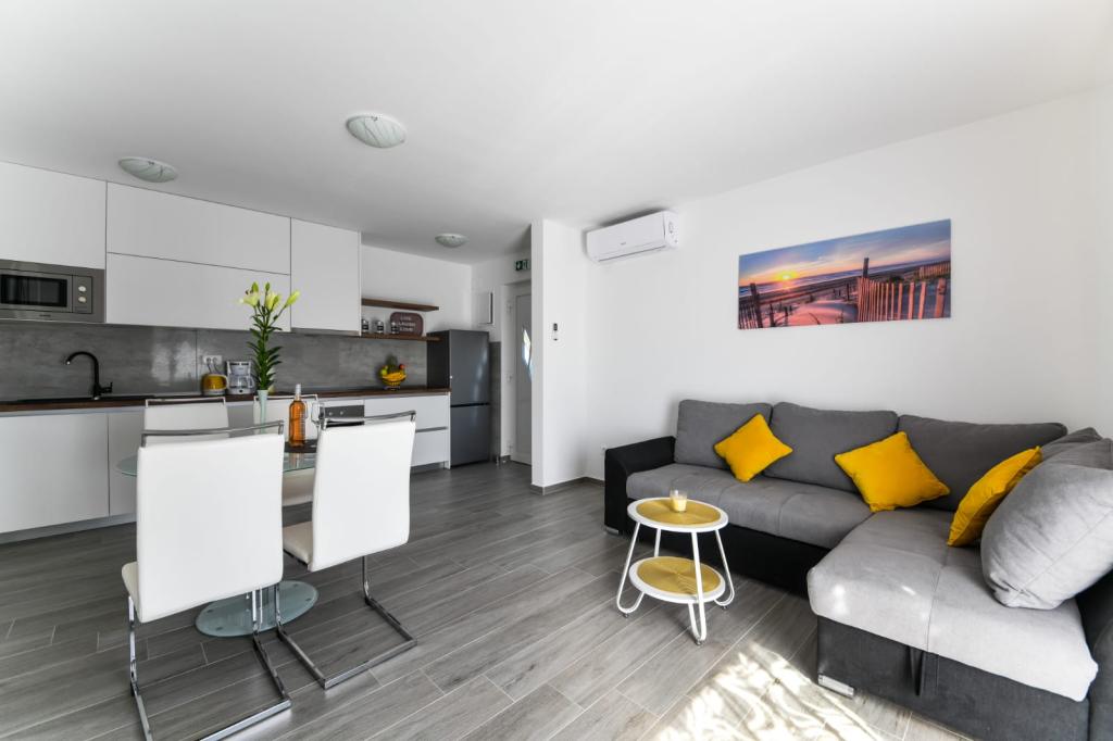 Apartament z jedną sypialnią 2+2, wybudowany w 2020 roku. Nowoczesny, w pełni wyposażony apartament w spokojnej części miasta, zapewniający ciszę i spokój. Znajduje się 300 m od morza, 700 m od restauracji i kawiarni oraz 800 m od sklepów. Do dyspozycji gości jest grill, taras i balkon z widokiem na morze. Strzeżony parking. Dla dzieci dostępne jest mobilne łóżeczko i krzesełko do karmienia. Łatwy dojazd samochodem do Parku Narodowego Paklenica, na wyspy Pag, Nin, Vrsi i Zadar, a także 24 km od lotniska Zemunik.