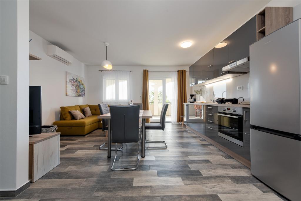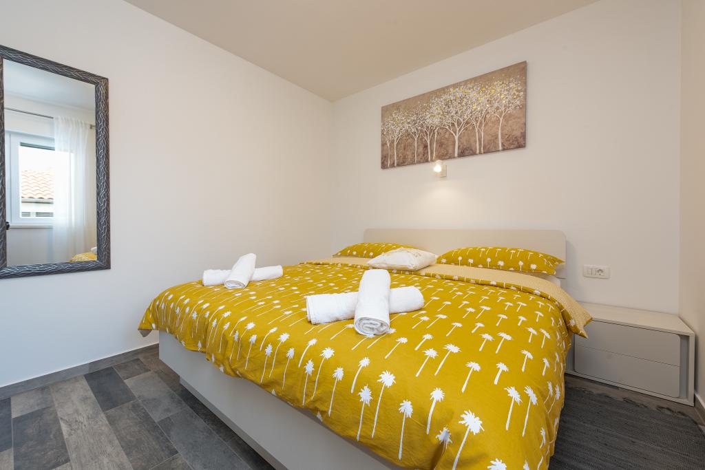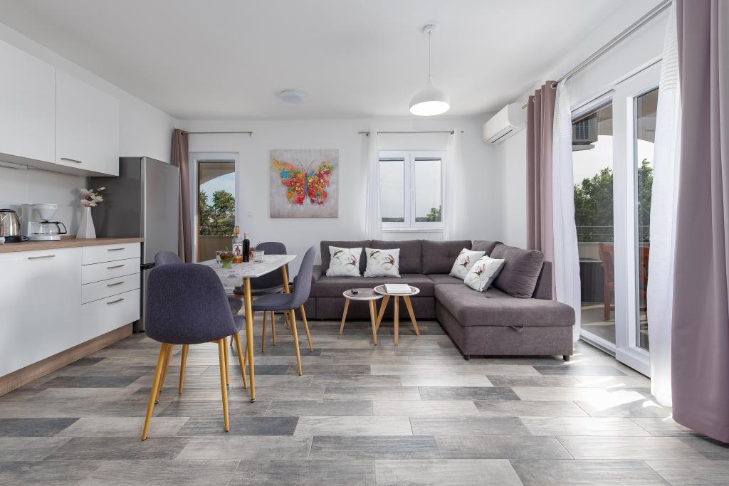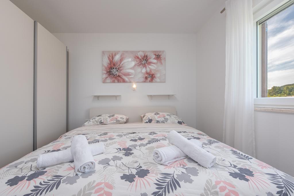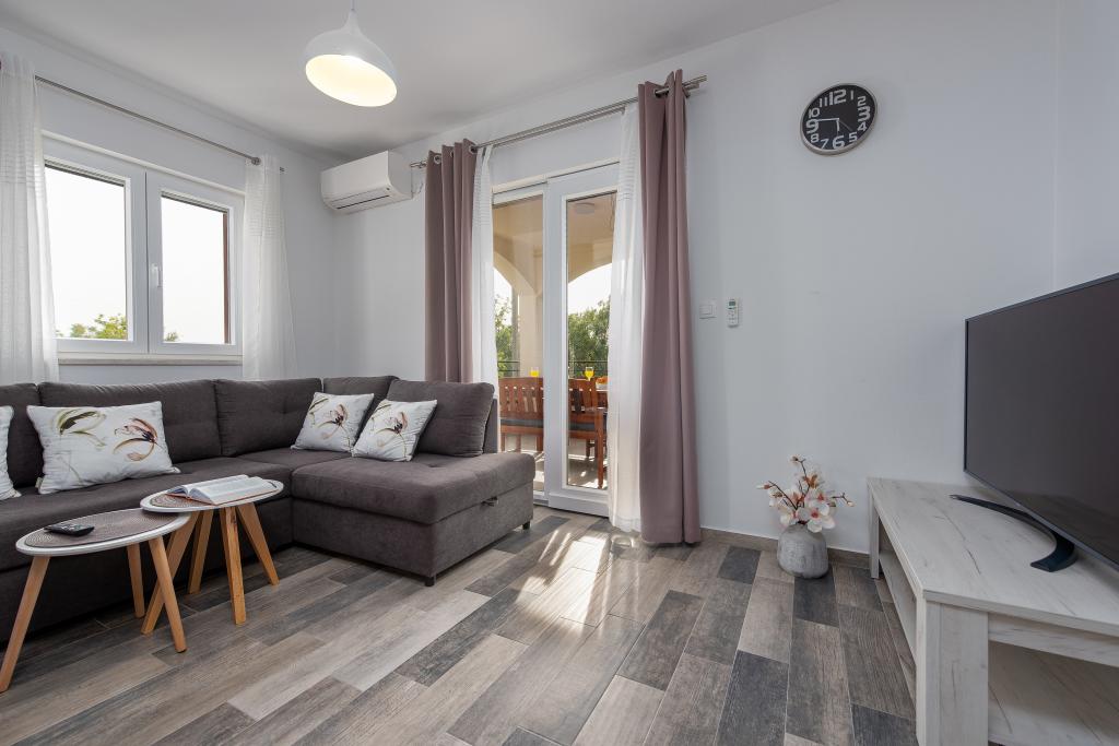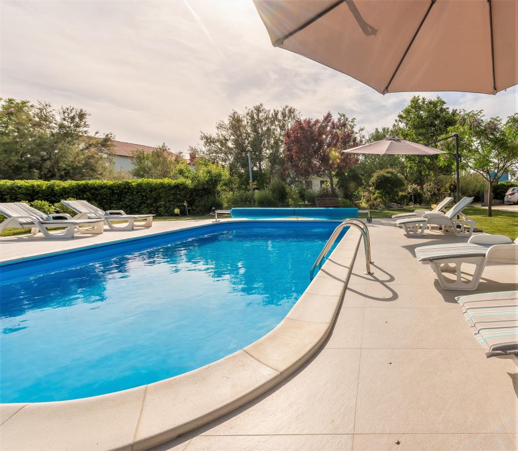 Apartamenty znajdują się w spokojnej miejscowości Ljubač, 16 km od Zadaru. Są 150 m od pierwszej plaży. W pobliżu znajdują się również inne plaże. Apartament jest 2+2, czyli 4 osobowy - pokój z łóżkiem małżeńskim plus dostawka - rozkładana sofa. W razie potrzeby dostępne jest również łóżeczko dziecięce. Powierzchnia mieszkania to 46m2 plus duży taras. Apartamenty są w pełni wyposażone: klimatyzacja, telewizja satelitarna, sieć WIFI, zmywarka, pralka, toster, ekspres do kawy, mikrofalówka itp. Wszystkie okna są zabezpieczone przed komarami. Z przodu znajduje się basen 8x4m o głębokości 1,5m. Dostępne miejsce parkingowe. Opłata klimatyczna wliczona w cenę!