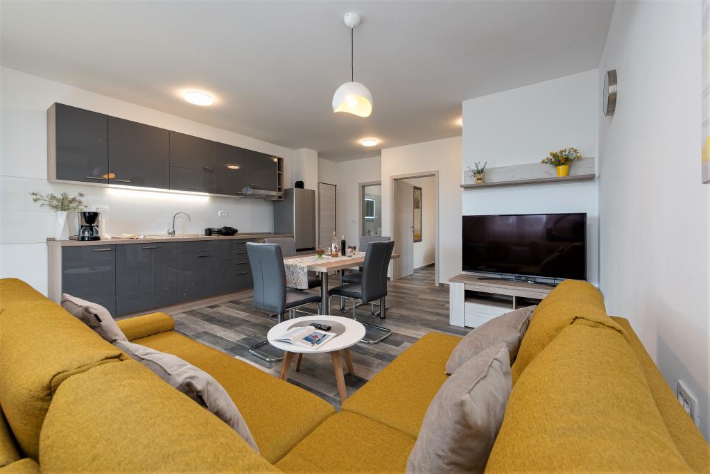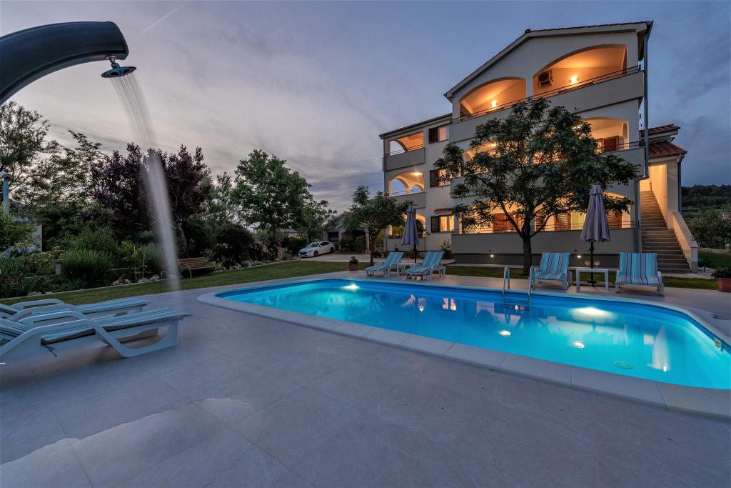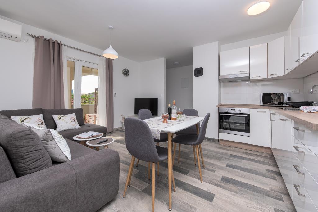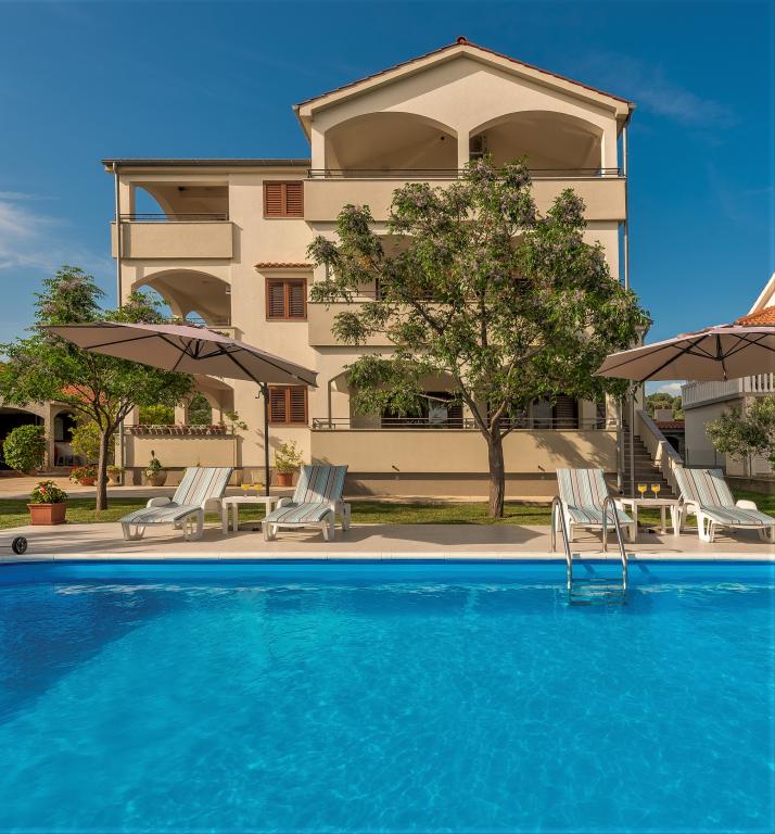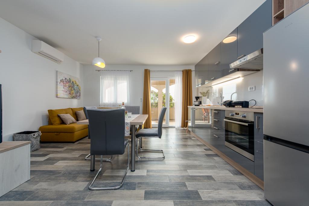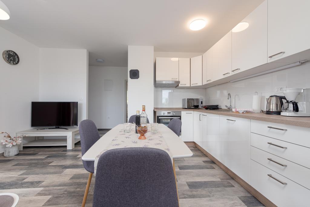 Apartamenty znajdują się w spokojnej miejscowości Ljubač, 16 km od Zadaru. Są 150 m od pierwszej plaży. W pobliżu znajdują się również inne plaże. Apartament jest 2+2, czyli 4 osobowy - pokój z łóżkiem małżeńskim plus dostawka - rozkładana sofa. W razie potrzeby dostępne jest również łóżeczko dziecięce. Powierzchnia mieszkania to 46m2 plus duży taras. Apartamenty są w pełni wyposażone: klimatyzacja, telewizja satelitarna, sieć WIFI, zmywarka, pralka, toster, ekspres do kawy, mikrofalówka itp. Wszystkie okna są zabezpieczone przed komarami. Z przodu znajduje się basen 8x4m o głębokości 1,5m. Dostępne miejsce parkingowe. Opłata klimatyczna wliczona w cenę!