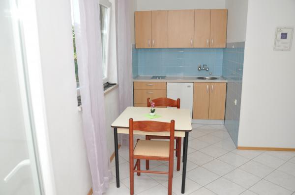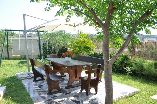 Apartamenty 2/2 są w pełni wyposażone, sypialnia dla trzech osób (łóżeczko dziecięce na życzenie), pokój dzienny z kuchnią posiada rozkładaną sofę, telewizor, klimatyzację, internet i balkon. Studio idealne dla dwóch osób, w pełni wyposażone, każde studio posiada balkon, klimatyzację i internet. Dom posiada duży ogród z ogrodzonym podwórkiem, grillem, placem zabaw dla dzieci oraz parkingiem. Apartament 2/2 z dwiema sypialniami znajduje się 50 metrów od tego domu, mieszkanie znajduje się na parterze, posiada własną werandę, klimatyzację, internet, parking, grill i duże podwórko.