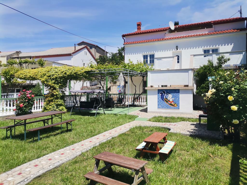 Nasze apartamenty znajdują się w Lopar przy głównej drodze. Obszar, w którym znajduje się dom, jest dość spokojny i wygodny na spokojne i beztroskie wakacje. Plaża i morze znajdują się po drugiej stronie ulicy, w odległości 50 m od hotelu. Oferujemy dwa odnowione i wyposażone apartamenty. Jeden apartament może pomieścić 4 osoby, inny apartament może pomieścić 6 osób. Oferujemy bezpłatny bezprzewodowy dostęp do Internetu i telewizję satelitarną. Nie możesz się pomylić, jeśli zdecydujesz się spędzić z nami wakacje. Ceny na życzenie, skontaktuj się z nami w przypadku jakichkolwiek pytań i zapytań. Dziękujemy za zainteresowanie.