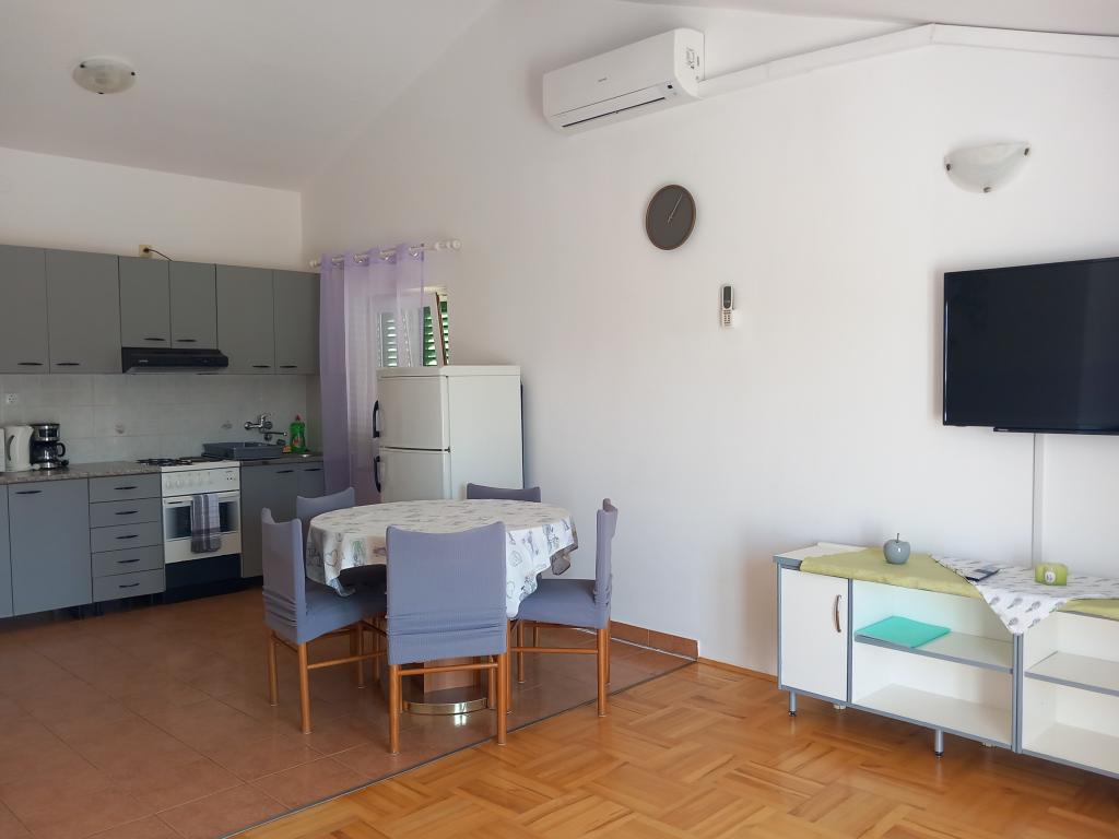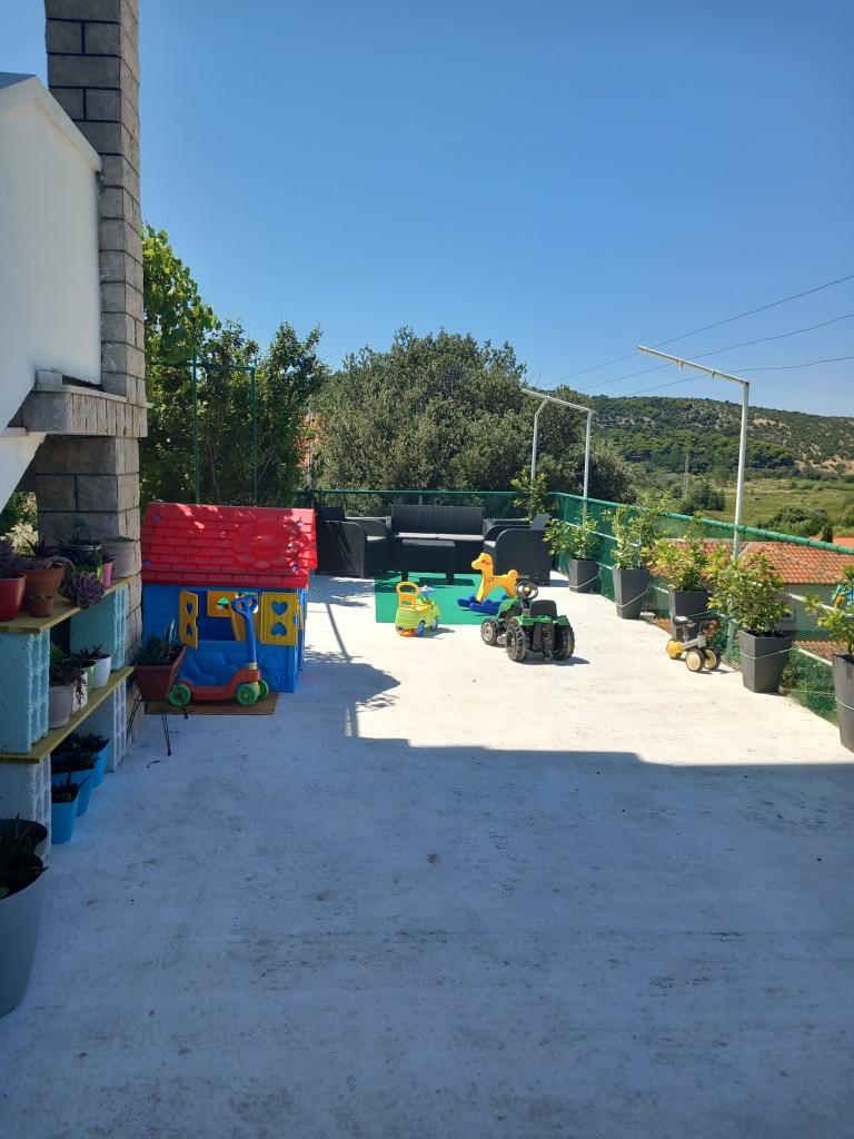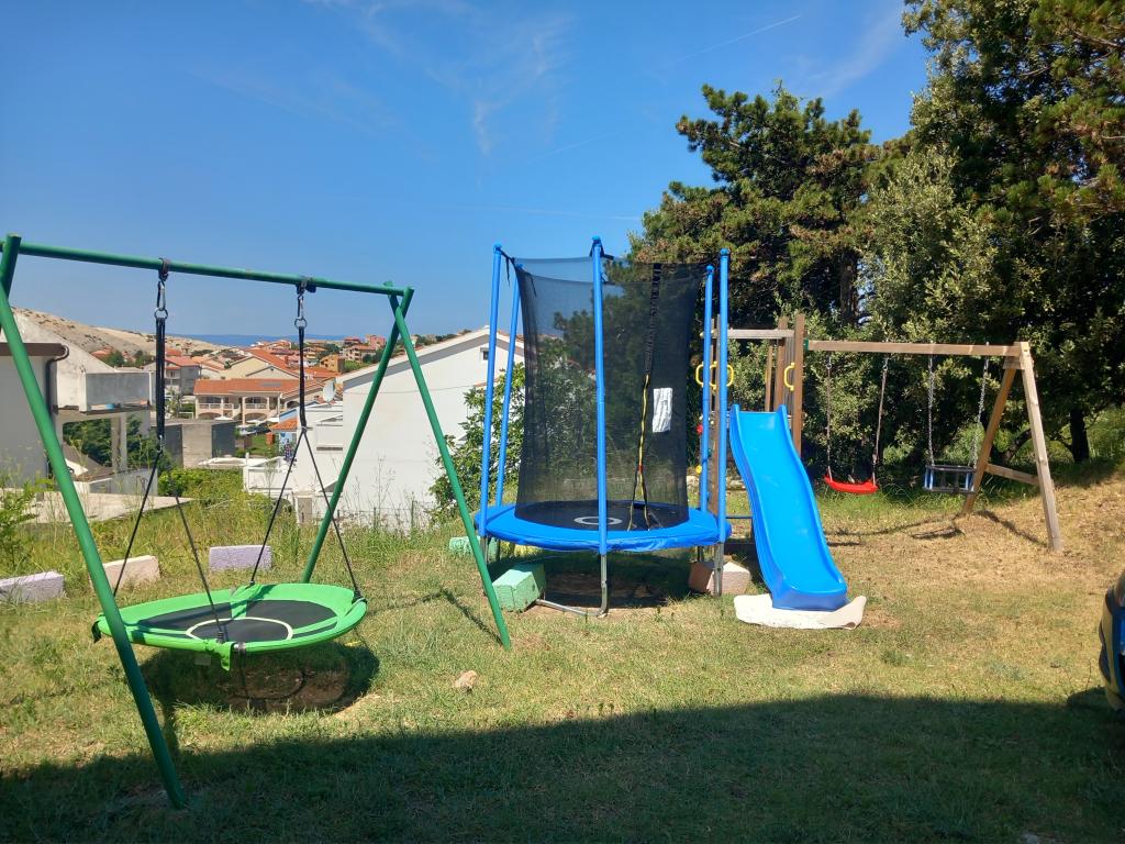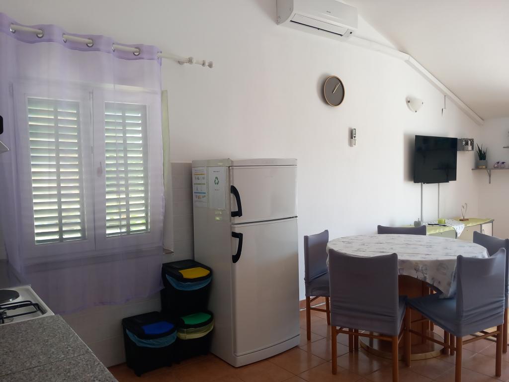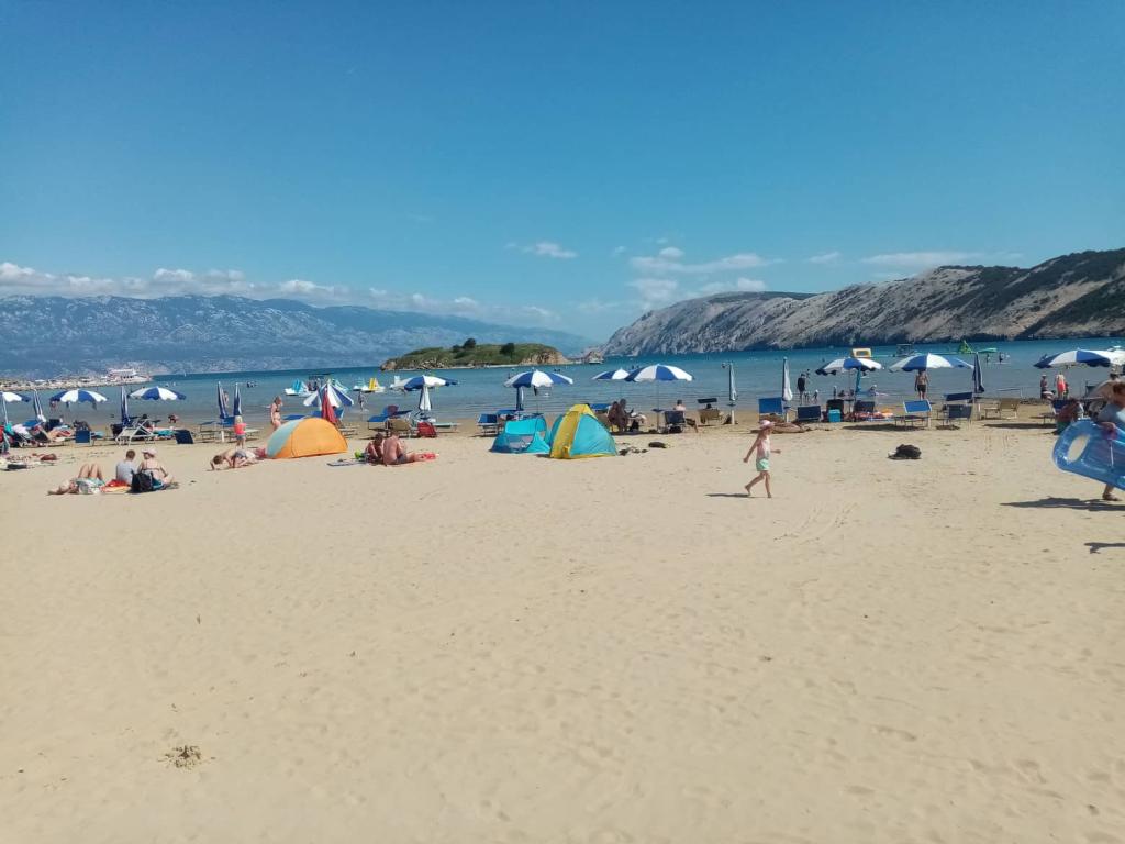 Apartamenty Mira mieszczą się w domu rodzinnym i oferują zakwaterowanie dla maksymalnie 15 osób w 3 apartamentach. Znajdujemy się w spokojnej okolicy, niemal na końcu ślepej uliczki, a wszystkie niezbędne udogodnienia (sklep, piekarnia, bankomat, apteka, restauracje, poczta, kawiarnie...) są w pobliżu, niecałe 10 minut spacerem. Najbliższa plaża to najsłynniejsza plaża na Rabie, Rajska Plaža, o długości prawie 2 km, idealna dla dzieci, do której można dotrzeć w 10 minut spacerem. Oferujemy bezpłatny parking obok domu i 2 place zabaw dla dzieci. Apartamenty wyposażone są w pralkę i schowek na parterze (na wózki dziecięce lub rowery). Wszystkie apartamenty wyposażone są w telewizory Smart TV z nielimitowanym dostępem do Netflixa :)
