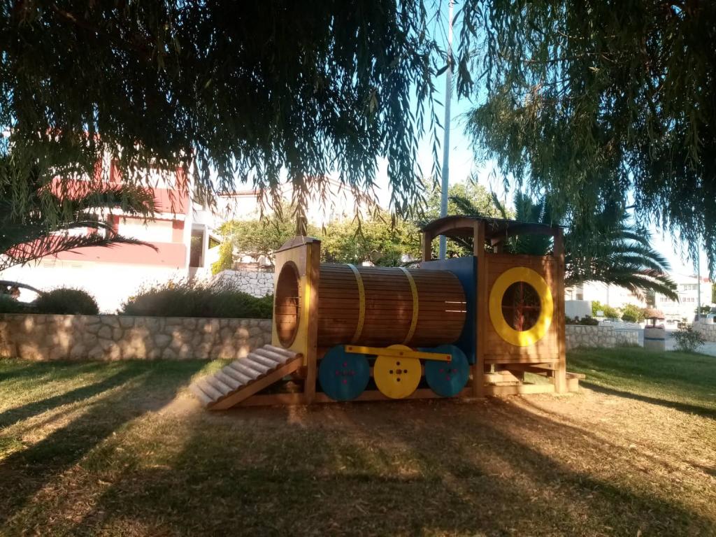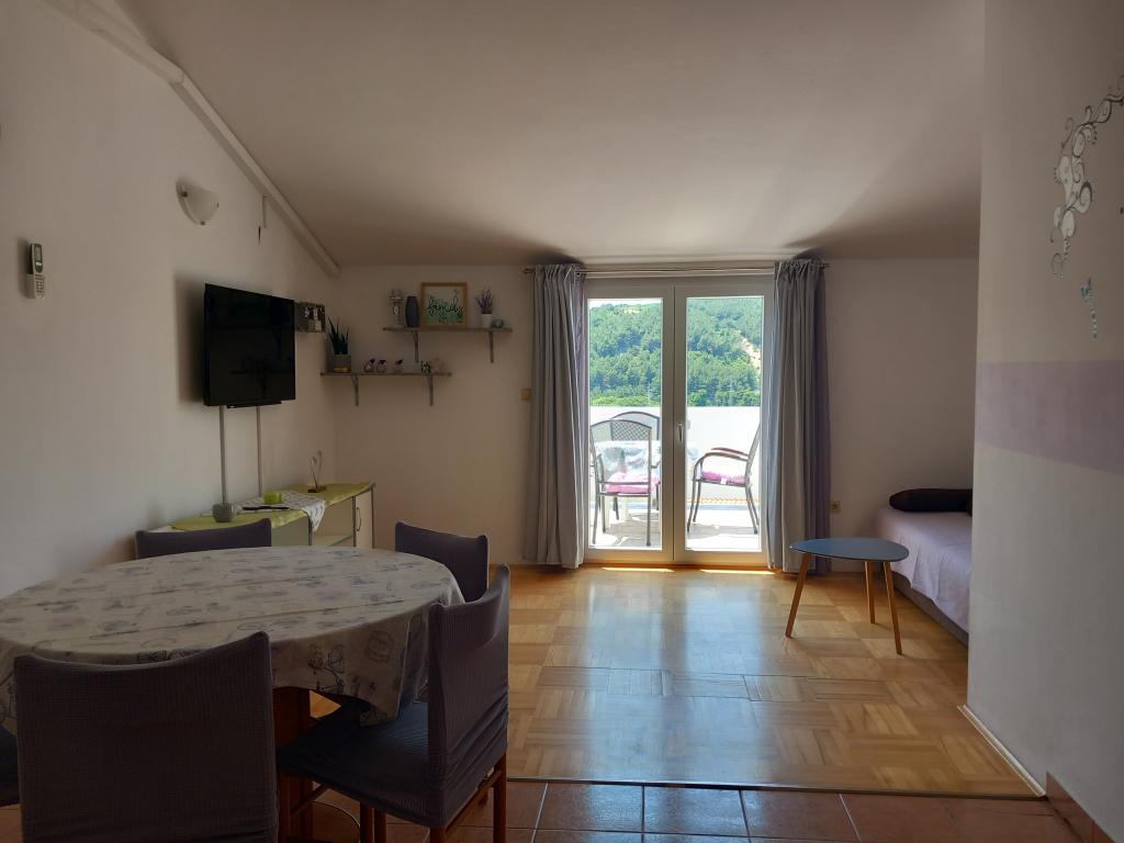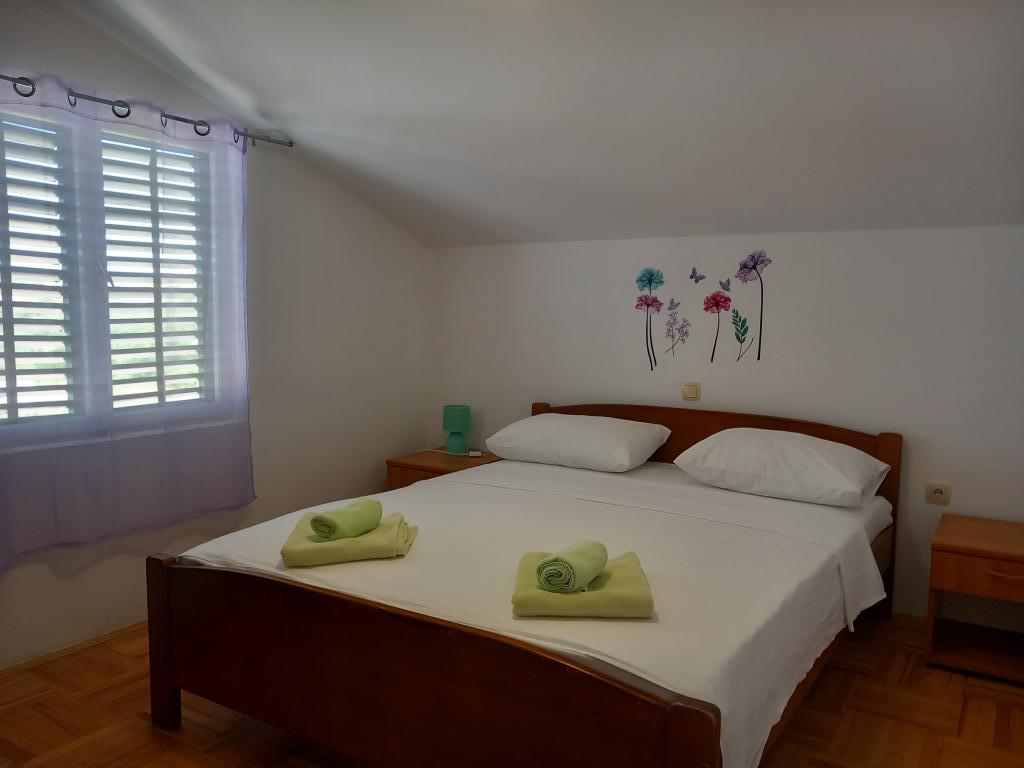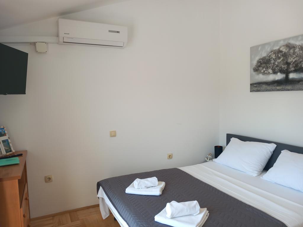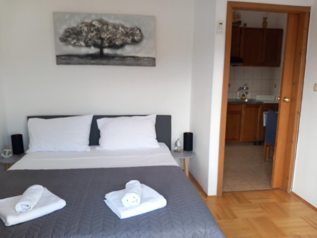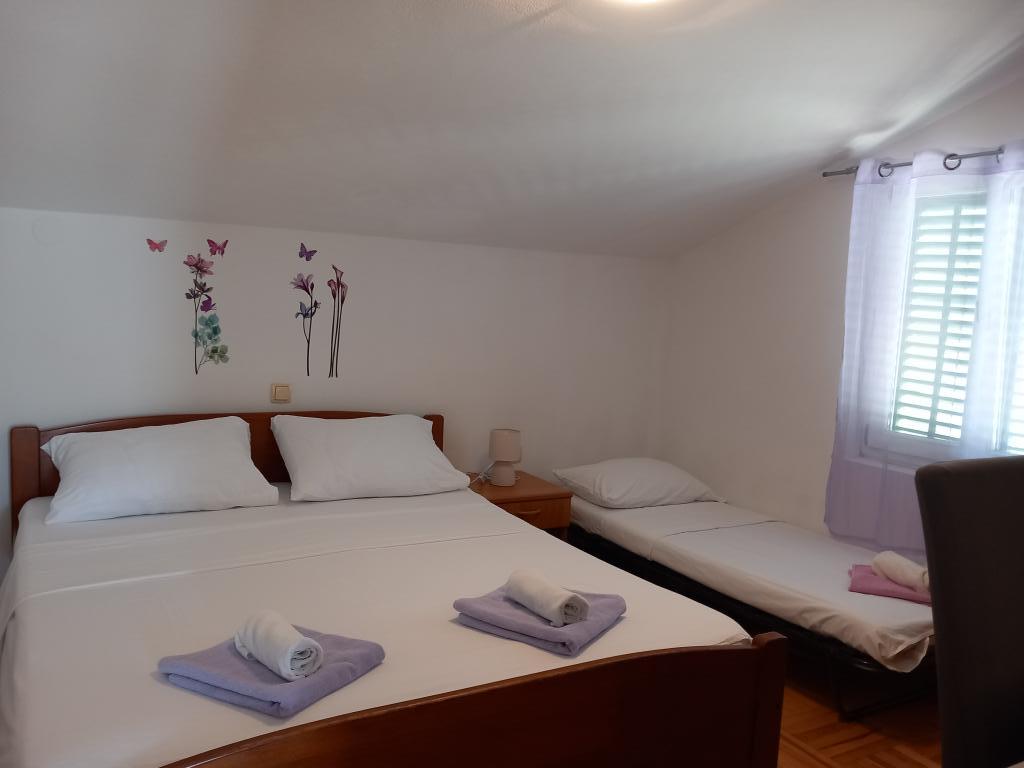 Apartamenty Mira mieszczą się w domu rodzinnym i oferują zakwaterowanie dla maksymalnie 15 osób w 3 apartamentach. Znajdujemy się w spokojnej okolicy, niemal na końcu ślepej uliczki, a wszystkie niezbędne udogodnienia (sklep, piekarnia, bankomat, apteka, restauracje, poczta, kawiarnie...) są w pobliżu, niecałe 10 minut spacerem. Najbliższa plaża to najsłynniejsza plaża na Rabie, Rajska Plaža, o długości prawie 2 km, idealna dla dzieci, do której można dotrzeć w 10 minut spacerem. Oferujemy bezpłatny parking obok domu i 2 place zabaw dla dzieci. Apartamenty wyposażone są w pralkę i schowek na parterze (na wózki dziecięce lub rowery). Wszystkie apartamenty wyposażone są w telewizory Smart TV z nielimitowanym dostępem do Netflixa :)