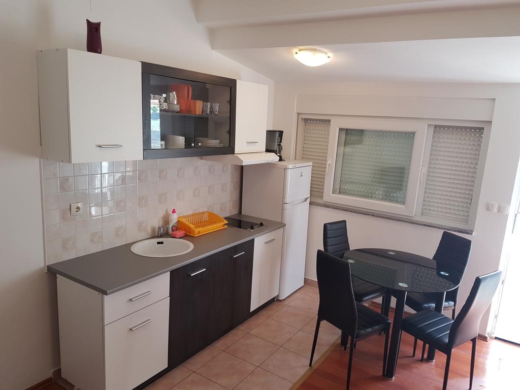 W pełni wyposażone apartamenty dla dwóch osób dorosłych i dwójki dzieci. Apartamenty składają się z jednej sypialni, łazienki, salonu, kuchni i jadalni. Do dyspozycji Gości jest zadaszony taras z grillem i leżakami. Każdy apartament posiada oddzielny taras. Dom z apartamentami położony jest w pierwszym rzędzie od morza (10 m), tuż przy piaszczystej plaży z udogodnieniami dla dzieci (huśtawki, zjeżdżalnia, statek piracki, rowery wodne, boisko do siatkówki, piłki wodnej, piłki nożnej...). Wybierz najlepsze miejsce na relaks dla siebie i swoich dzieci. Zapraszamy!