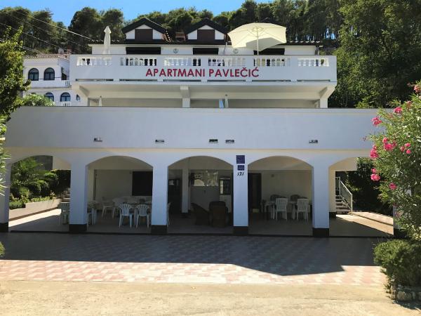 Apartamenty Pavlečić znajdują się w Lopar na wyspie Rab. Apartamenty składają się z 6 oddzielnych mieszkań. 4 apartamenty są przeznaczone dla 3 osób i 2 apartamenty są dla 4 osób. Każdy apartament ma osobne wejście, kuchnię, łazienkę, toaletę z prysznicem, 1 lub 2 sypialnie, telewizję satelitarną, taras ze stołem i krzesłami. Na parterze znajduje się duży taras ze stołami i krzesłami oraz grillem, z którego mogą korzystać wszyscy goście. Odległość od plaży wynosi zaledwie 20 m. Plaża jest idealna dla małych dzieci ze względu na płytkie morze i piaszczystą plażę. Sklepy, restauracje, poczta znajdują się w promieniu 400m.