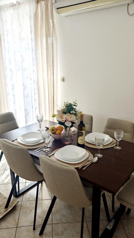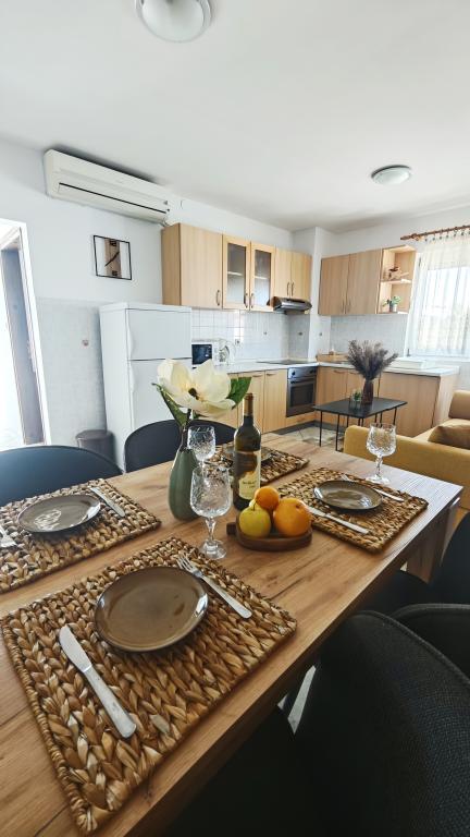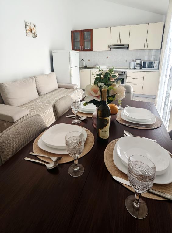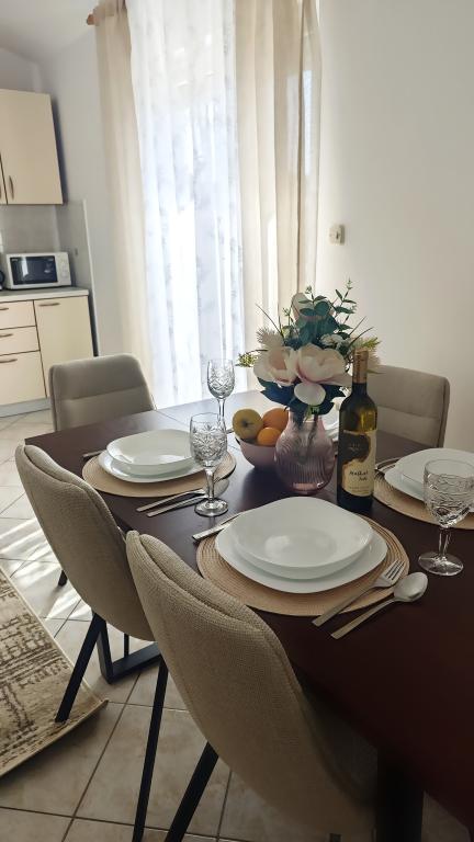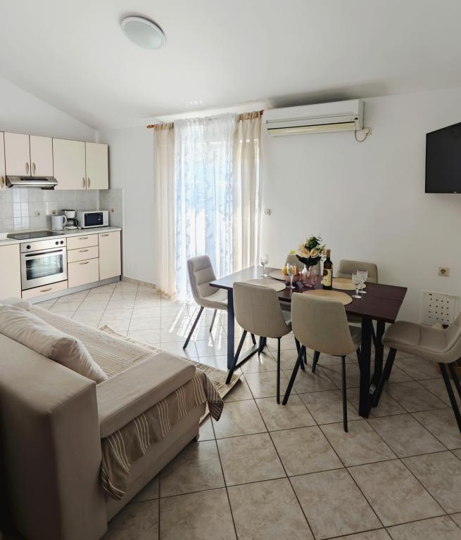 Apartamenty Petrinić znajdują się w odległości 100 metrów od centrum miejscowości Lopar. Oferują wysokiej jakości zakwaterowanie i przyjemny pobyt dla rodziny i przyjaciół. Znajdują się one w spokojnej okolicy, dzięki czemu można spędzić urlop bardziej zrelaksowany i beztroski. W pobliżu znajduje się restauracja, duże centrum handlowe Konzum, piekarnia, poczta, plac zabaw dla dzieci, kawiarnia, apteka, dworzec autobusowy. W każdym apartamencie znajdują się: dwie duże sypialnie dla 4 osób plus dodatkowe łóżko (4 1), łazienka, pralka, kuchnia, tv / sat, internet, klimatyzacja, balkon, parking i wszystkie niezbędne sprzęty (pościel, ręczniki, ekspres do kawy, czajnik, lodówka, naczynia). W pobliżu jest także piaszczysta plaża. Najbliższa plaża znajduje się 500 metrów od naszego domu, a najsłynniejsza "Paradise Beach" znajduje się zaledwie 800 metrów od hotelu. Mamy nadzieję, że wybierzesz apartamenty Petrinić i czekamy na Twój przyjazd! Rodzina Petrinić