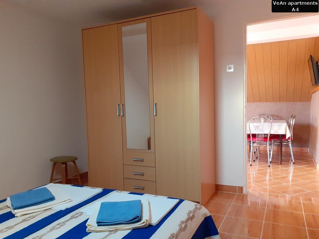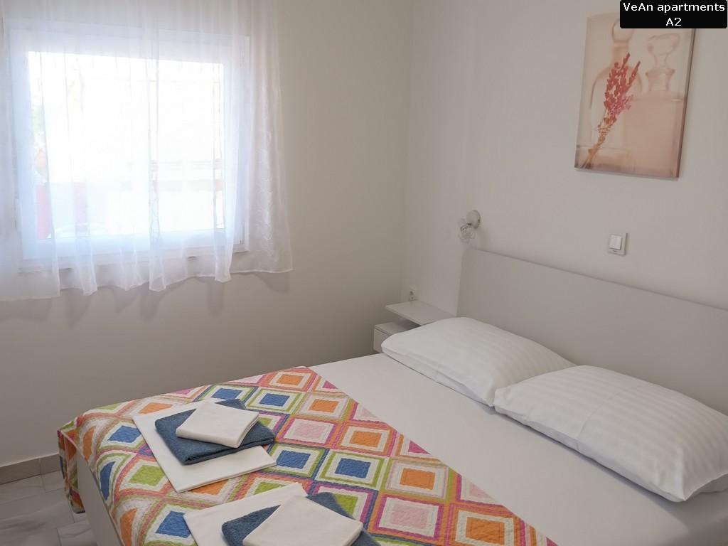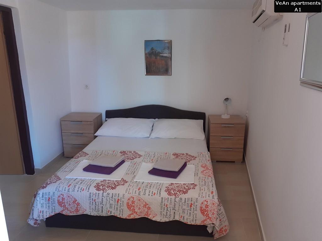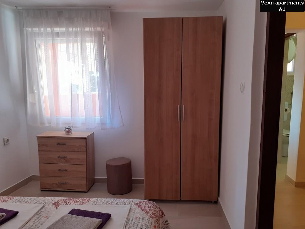 Czekają na Ciebie cztery komfortowe apartamenty. Apartament A1 (A2+1) ma powierzchnię 30m2 i może być zarezerwowany dla 2-3 osób. Dużą zaletą A1 jest to, że zawsze jest fajnie, ponieważ znajduje się na parterze (podziemie z tyłu). Apartament A1 wyróżnia się wyjątkowością dwoma tarasami; jedna odkryta i ma widok na morze, a druga zadaszona i można się nią cieszyć podczas deszczu. Apartament A2 (A4+1) ma powierzchnię 60m2 i może być zarezerwowany dla 4-5 osób. Wielką specjalnością A2 jest to, że posiada duży taras o powierzchni 20m2, na którym można się relaksować i opalać na leżaku, oraz znajduje się na parterze, na tym samym poziomie co podwórko. Apartament A3 (A4+1) ma powierzchnię 60m2 i może być zarezerwowany dla 4-5 osób. Dużym atutem A3 jest to, że znajduje się na 1 piętrze i posiada ładny widok z dużego tarasu. Wszystko jest piękniejsze z ładnym widokiem, nawet czytanie książki. Apartament A4 (A4+1) ma powierzchnię 60m2 i może być zarezerwowany dla 4-5 osób. Dużym atutem A4 jest to, że znajduje się na 1 piętrze i posiada ładny widok z dużego tarasu. Jeśli pierwszą rzeczą, którą lubisz robić rano przed wyjściem z sypialni, jest wyjrzeć na słońce z małego balkonu, to jest to odpowiednie mieszkanie dla Ciebie, ponieważ jedna sypialnia ma mały balkon.