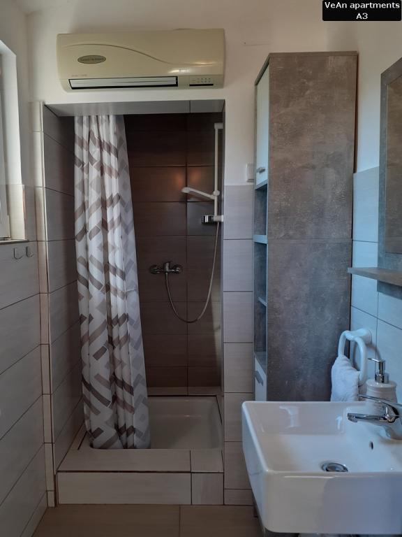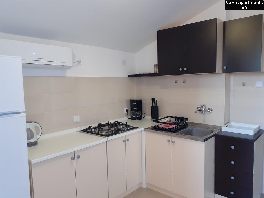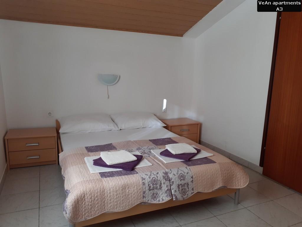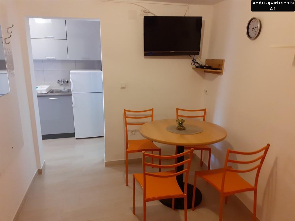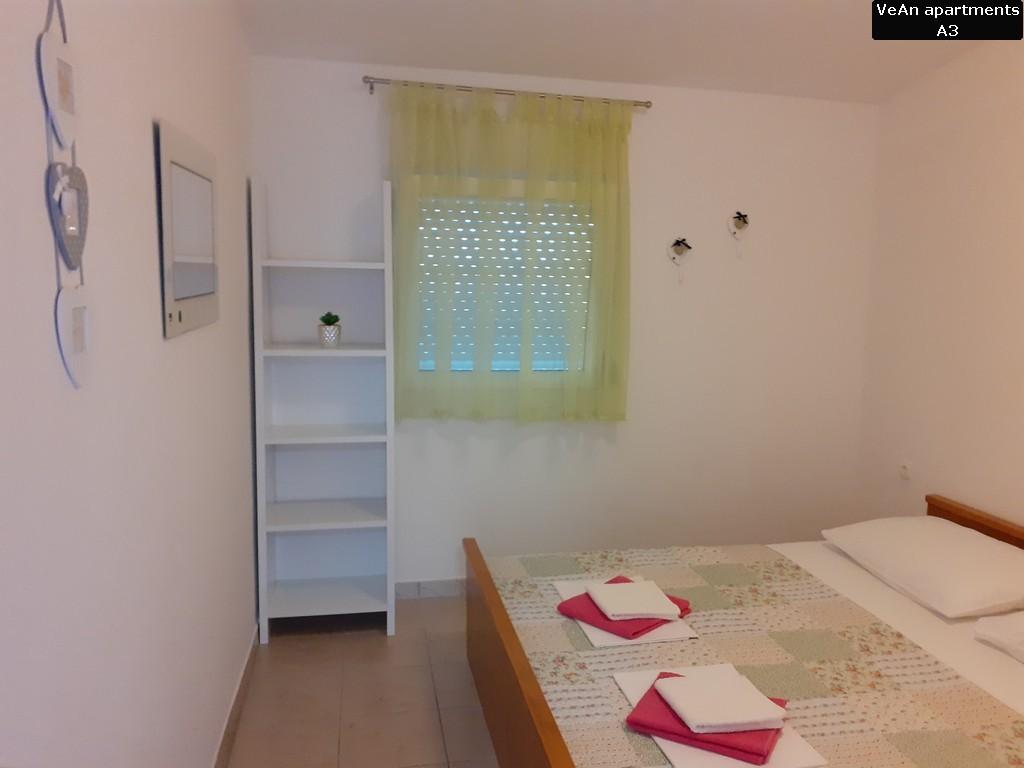 Czekają na Ciebie cztery komfortowe apartamenty. Apartament A1 (A2+1) ma powierzchnię 30m2 i może być zarezerwowany dla 2-3 osób. Dużą zaletą A1 jest to, że zawsze jest fajnie, ponieważ znajduje się na parterze (podziemie z tyłu). Apartament A1 wyróżnia się wyjątkowością dwoma tarasami; jedna odkryta i ma widok na morze, a druga zadaszona i można się nią cieszyć podczas deszczu. Apartament A2 (A4+1) ma powierzchnię 60m2 i może być zarezerwowany dla 4-5 osób. Wielką specjalnością A2 jest to, że posiada duży taras o powierzchni 20m2, na którym można się relaksować i opalać na leżaku, oraz znajduje się na parterze, na tym samym poziomie co podwórko. Apartament A3 (A4+1) ma powierzchnię 60m2 i może być zarezerwowany dla 4-5 osób. Dużym atutem A3 jest to, że znajduje się na 1 piętrze i posiada ładny widok z dużego tarasu. Wszystko jest piękniejsze z ładnym widokiem, nawet czytanie książki. Apartament A4 (A4+1) ma powierzchnię 60m2 i może być zarezerwowany dla 4-5 osób. Dużym atutem A4 jest to, że znajduje się na 1 piętrze i posiada ładny widok z dużego tarasu. Jeśli pierwszą rzeczą, którą lubisz robić rano przed wyjściem z sypialni, jest wyjrzeć na słońce z małego balkonu, to jest to odpowiednie mieszkanie dla Ciebie, ponieważ jedna sypialnia ma mały balkon.