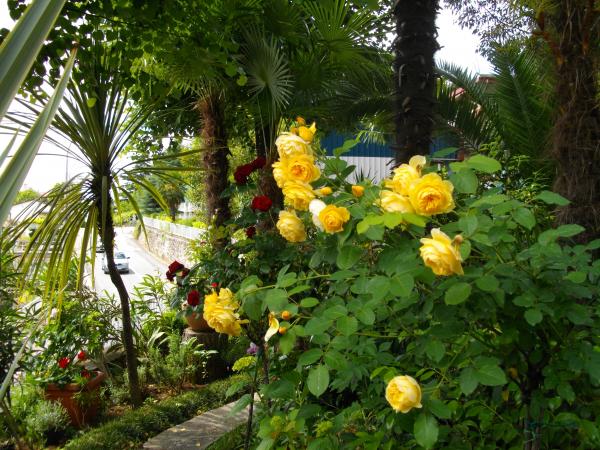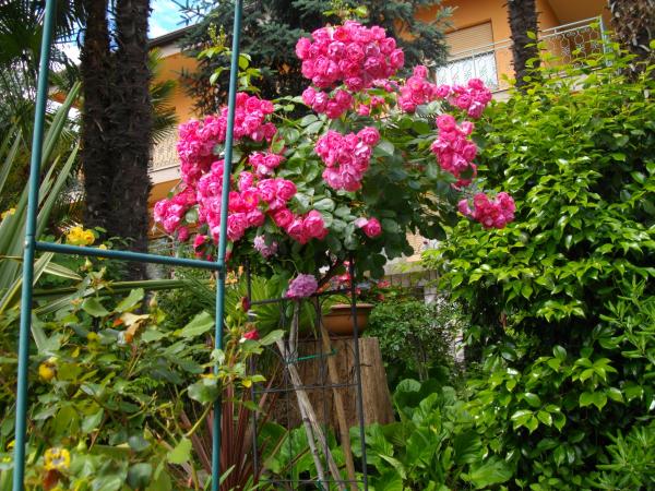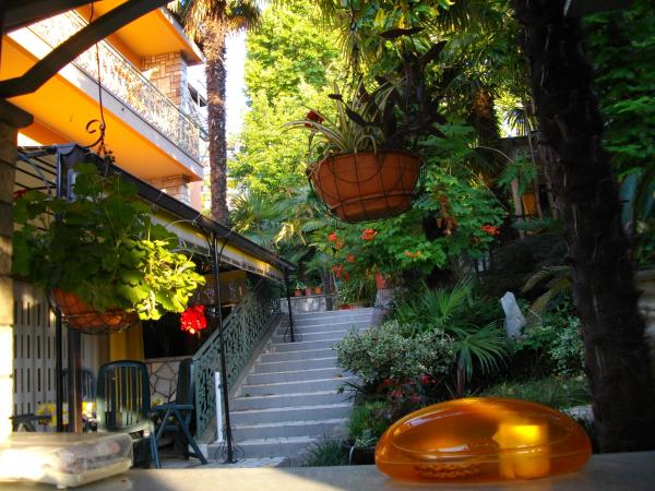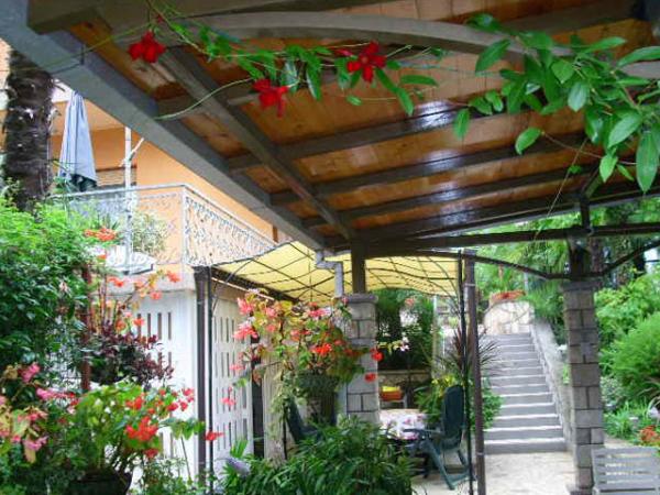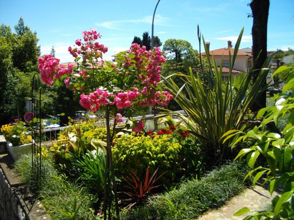 Apartament znajduje się na parterze domu wolnostojącego. Jego atutem jest duży ogród z mnóstwem drzew, róż, krzewów i kwiatów. W ogrodzie znajduje się zadaszona altana z grillem, w pełni wyposażona kuchnia oraz duży stół ogrodowy. Ogród jest połączony z częścią apartamentową i tworzy jedną całość, gdzie goście mogą cieszyć się przyjemną świeżością, spokojem i zielenią. To oaza spokoju blisko plaży i centrum miasta, z pełnym wyposażeniem. Telewizja satelitarna, klimatyzacja, Wi-Fi 24h/dobę. Parking na podwórku.