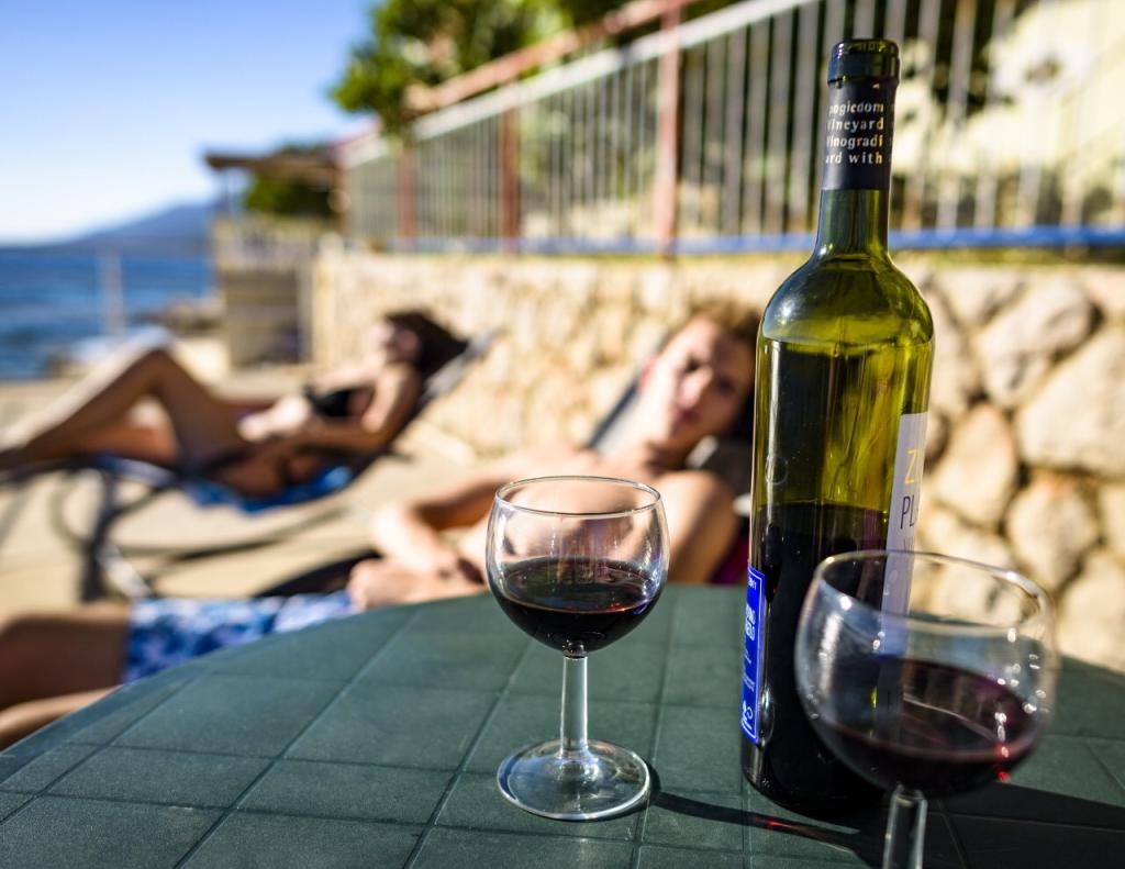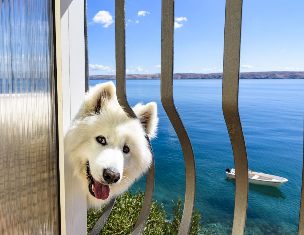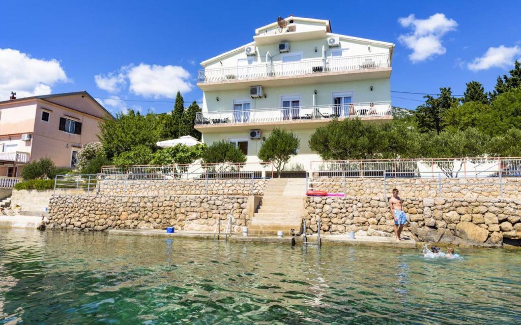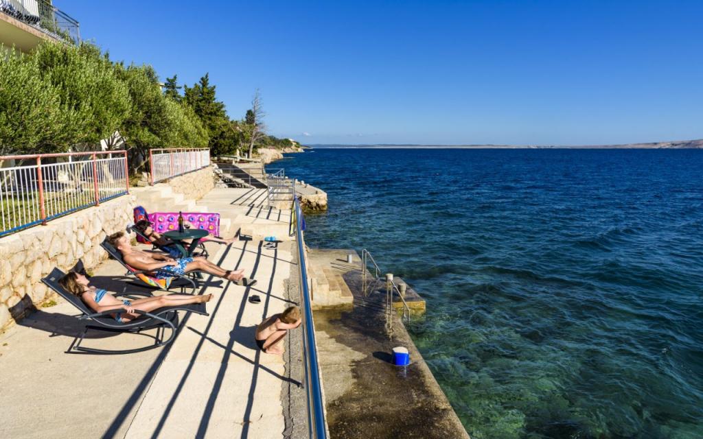 Nowocześnie wyposażone apartamenty Dalm położone w pierwszym rzędzie do morza, w małej wiosce Devčić draga w pobliżu Karlobag (ok. 15 km) i Starigrad Paklenica (ok. 17 km)