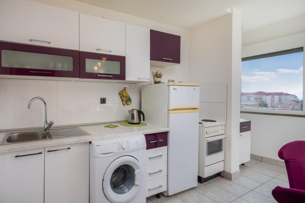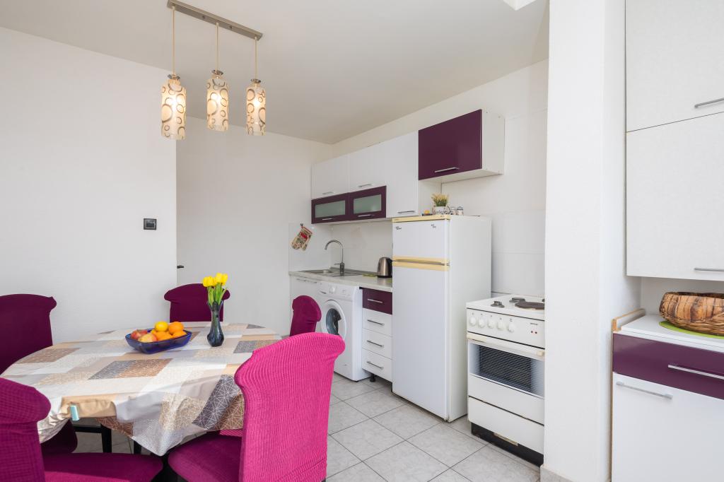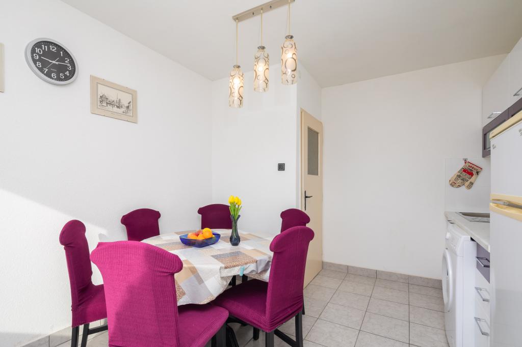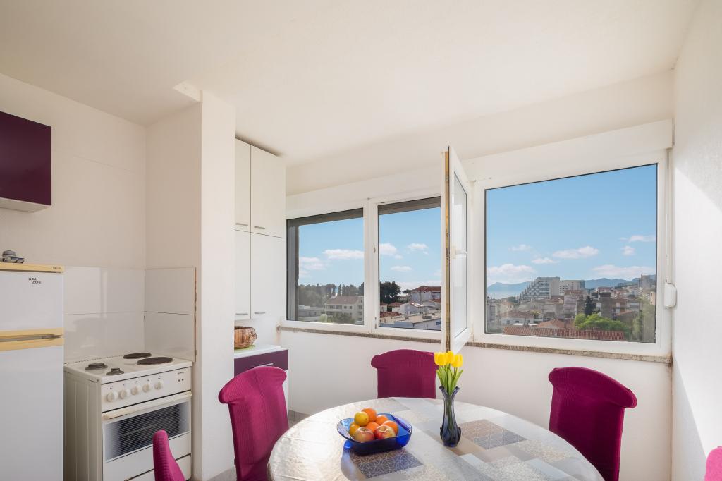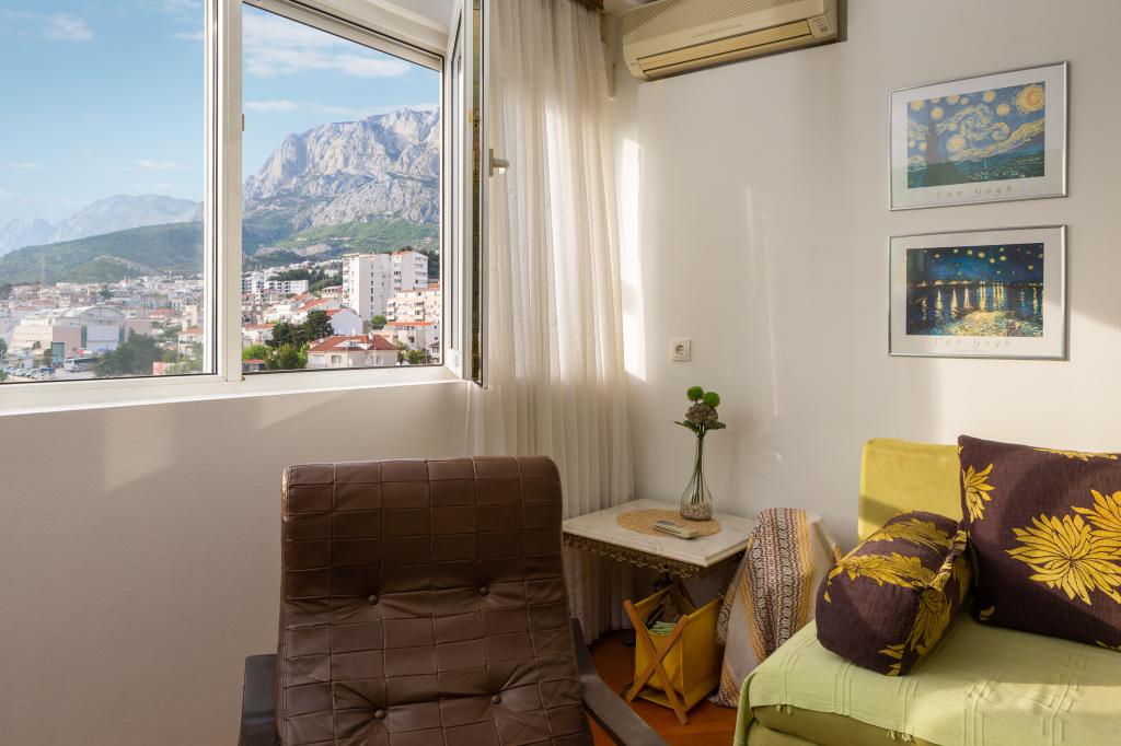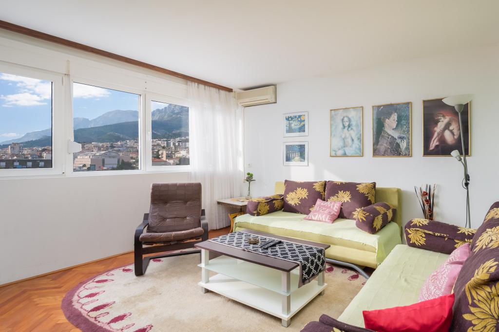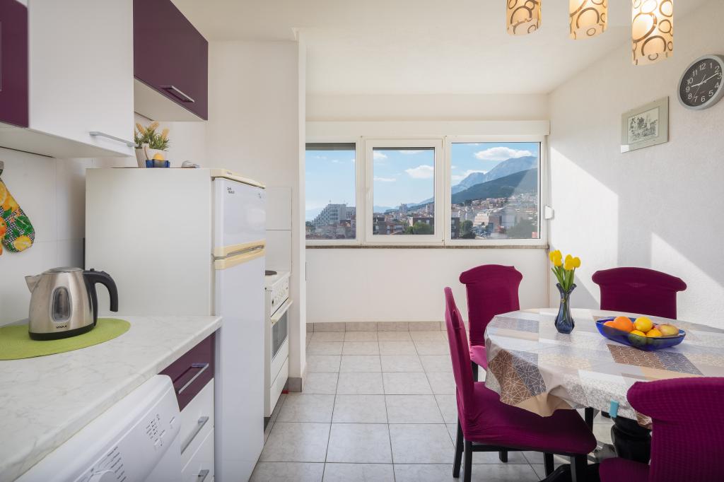 Zapraszamy do naszego apartamentu w samym sercu Makarskiej! Apartament położony jest na najwyższym piętrze i oferuje zachwycające, panoramiczne widoki na miasto oraz częściowy widok na morze, stanowiąc urokliwe tło dla Twojego pobytu. Po wejściu do środka zobaczysz przestronną sypialnię, która jest przytulnym kącikiem do spokojnego snu. Kuchnia i jadalnia są idealne do przygotowywania i spożywania posiłków, natomiast w salonie znajdują się dwie rozkładane sofy, co umożliwia zakwaterowanie dodatkowych gości. Aby jeszcze bardziej uatrakcyjnić pobyt, apartament zapewnia dostęp do urokliwego tarasu na dachu budynku, wyposażonego w kącik wypoczynkowy. Nie martw się, bezpłatny parking dostępny jest tuż obok obiektu, co gwarantuje bezstresowy pobyt. Do Państwa dyspozycji oddajemy również pralkę, co zapewnia dodatkową wygodę. Zanurz się w tętniącej życiem atmosferze Makarskiej, siedząc w naszym centralnie położonym apartamencie. Zarezerwuj pobyt już dziś i ciesz się idealnym połączeniem komfortu, wygody i pięknych widoków!
