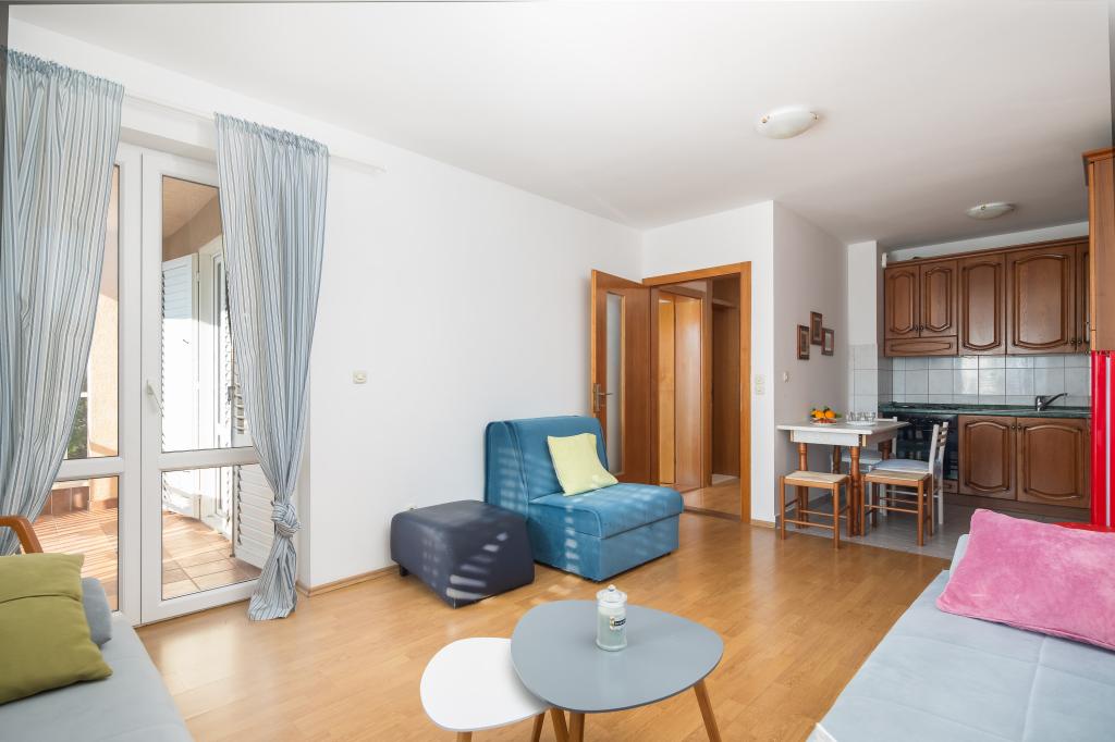 Zapraszamy do komfortowego zakwaterowania „Jasna” w Makarskiej, zaledwie 200 metrów od wybrzeża. Nowocześnie urządzony apartament z jedną sypialnią, dodatkowymi łóżkami, jedną łazienką i balkonem. 40 metrów kwadratowych powierzchni zapewniającej komfortowy pobyt. Zarezerwuj wakacje już dziś!