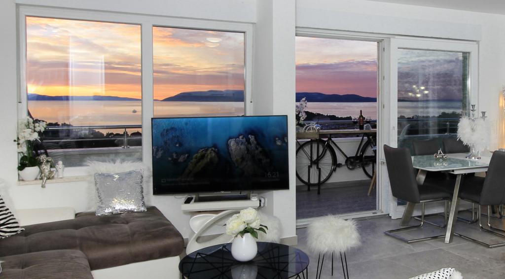 Luksusowy penthouse z prywatnym jacuzzi / widokiem na morze, miasto i wyspę Zupełnie nowy, klimatyzowany penthouse o powierzchni 125 m2 zawiera 3 sypialnie, każdy pokój posiada balkon, dwie łazienki z pralką, prywatne duże jacuzzi (5 1) na tarasie z widokiem na morze, telewizor z płaskim ekranem 55, telewizor 4K SMART, jadalnia z kuchnią z pralką i pełnym wyposażeniem kuchennym, dostępem do dużego tarasu, z meblami ogrodowymi i jacuzzi. Na miejscu dostępny jest bezpłatny parking Apartament jest idealny na rodzinne wakacje w Makarskiej, grupy na wakacje z przyjaciółmi, a także na aktywne wakacje na Riwierze Makarskiej. Makarska jest jednym z najbardziej znanych ośrodków turystycznych w Dalmacji (turystyka zorganizowana rozwija się od lat 60.) i jednym z najbardziej malowniczych miasteczek na Adriatyku, z wieloma charakterystycznymi wąskimi uliczkami na starym mieście. Słynie również z kilometrowych kamienistych plaż i bliskiego sąsiedztwa Parku Przyrody Biokovo, który oferuje piesze wycieczki, różne wycieczki i zajęcia z pięknymi panoramicznymi widokami na miasto, wyspy, Włochy ... Jeśli masz dodatkowe pytania, skontaktuj się z nami. Życzymy ciepłego powitania i miłego pobytu w naszym apartamencie