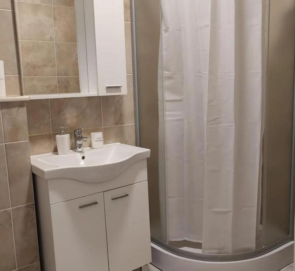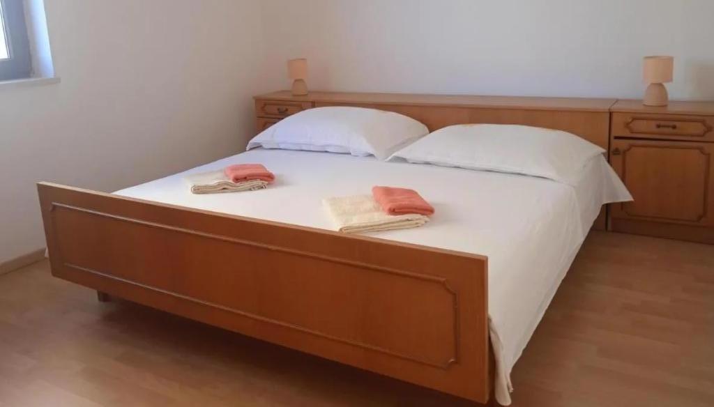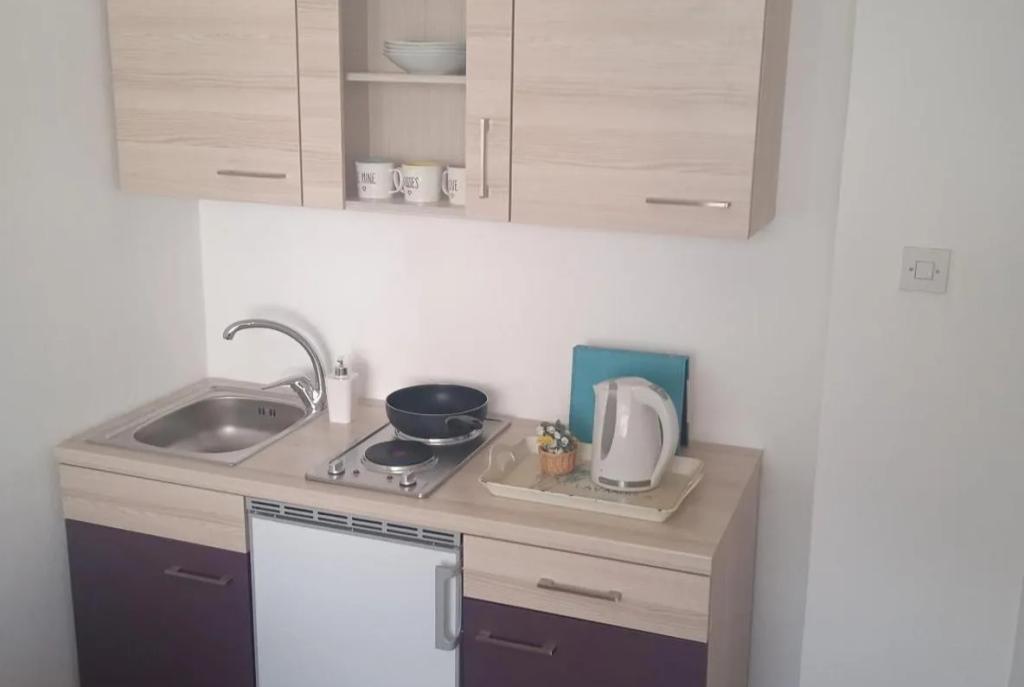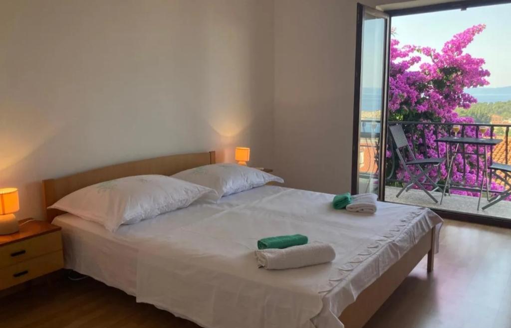 Apartament z 2 sypialniami, nową łazienką, funkcjonalną mini kuchnią i prywatnym balkonem z pięknym widokiem na morze. 1 miejsce parkingowe w garażu na samochód w apartamencie. Supermarket i piekarnia oddalone są o 20-30 metrów. Spacer do plaży zajmuje 7-8 minut, powrót około 10 minut. Do portu, czyli centrum miasta, można dojść pieszo w 10-12 minut.