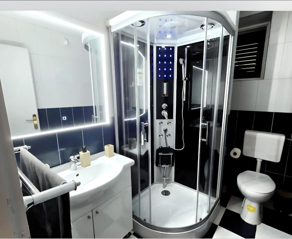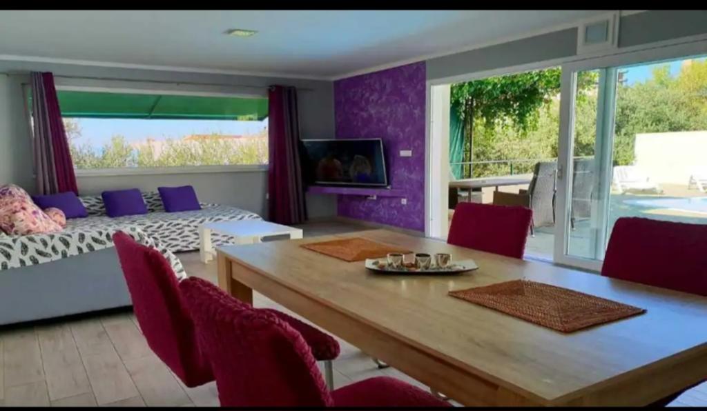 Apartament Robert położony jest 400 m nad starówką. Ma powierzchnię 120 m² i składa się z dwóch sypialni, dwóch łazienek, salonu oraz kuchni. Przed apartamentem znajduje się jacuzzi, telewizor, stół z ławkami, grill, basen z leżakami i prysznicem oraz prywatny parking. Zapraszamy!