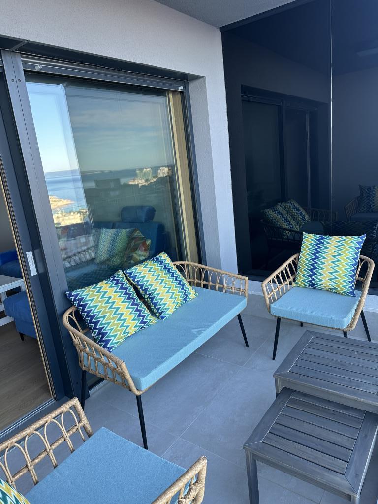 Nowo wyremontowany apartament w samym centrum miasta Makarska. Budynek został wybudowany według najwyższych standardów, luksusowo umeblowany, podobnie jak sam apartament! Prywatny parking dostępny, parking zewnętrzny nr 6 dla samochodów zasilanych LPG i dwa miejsca parkingowe na piętrze -2; nr 1 i 2. Apartament znajduje się na 3 piętrze. Jest zorientowany na południowy zachód. Składa się z kuchni z jadalnią i salonu w modelu open space. Kuchnia jest w pełni wyposażona, dzięki czemu możesz cieszyć się przygotowywaniem w niej ulubionych posiłków nawet podczas corocznych wakacji. Przestronna łazienka z prysznicem typu walk-in i pralką. Dwie sypialnie! Główna sypialnia ma łóżko 160/200, podczas gdy druga ma dwa łóżka 90/200. Apartament jest w pełni wyposażony w pościel, ręczniki, ręczniki kuchenne i ręczniki papierowe. Płynne mydło i detergent do prania ubrań, papier toaletowy i detergent do naczyń oraz tabletki do zmywarki. Piękny widok z zadaszonego tarasu rozciąga się na miasto Makarska i wyspy Brac i Hvar.