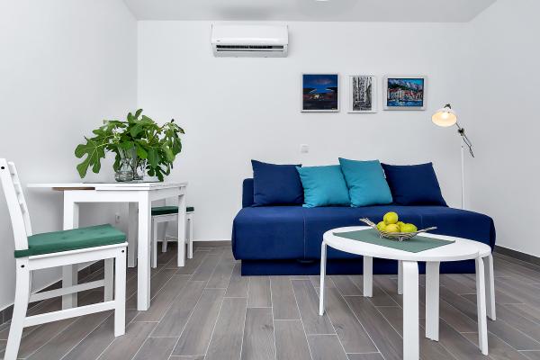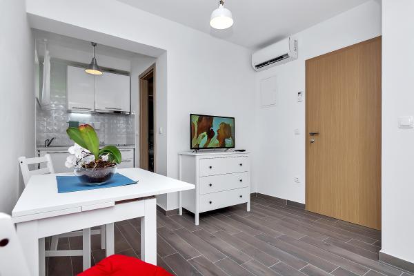 Nowo wyremontowane iw pełni wyposażone apartamenty w centrum miasta. Znajdują się one przy cichej ulicy, zaledwie kilka minut od nabrzeża i wszystkich udogodnień. Blisko dworca autobusowego. Tylko 10 minut od najbliższej plaży. Zapewniony bezpłatny parking przed domem.
