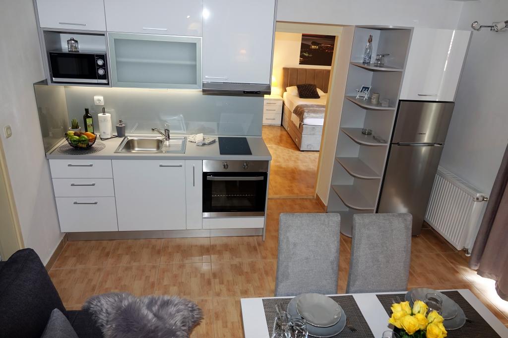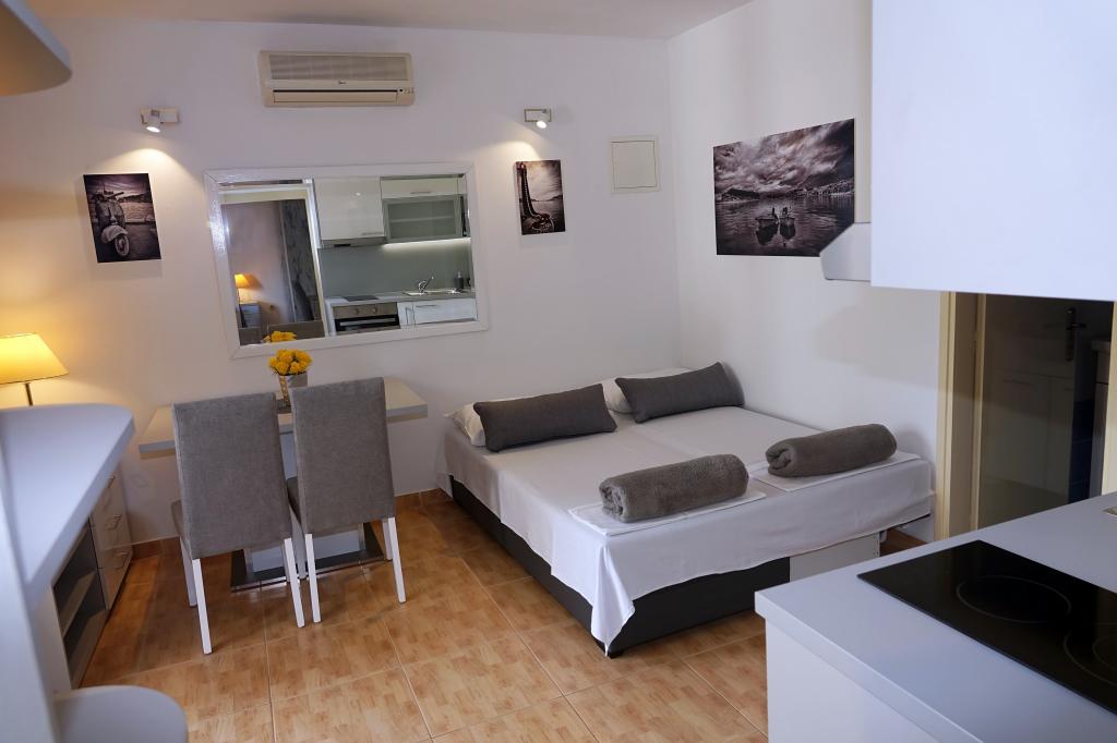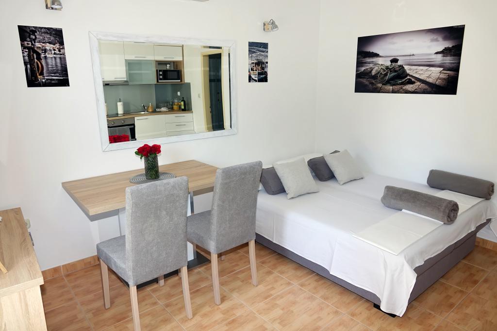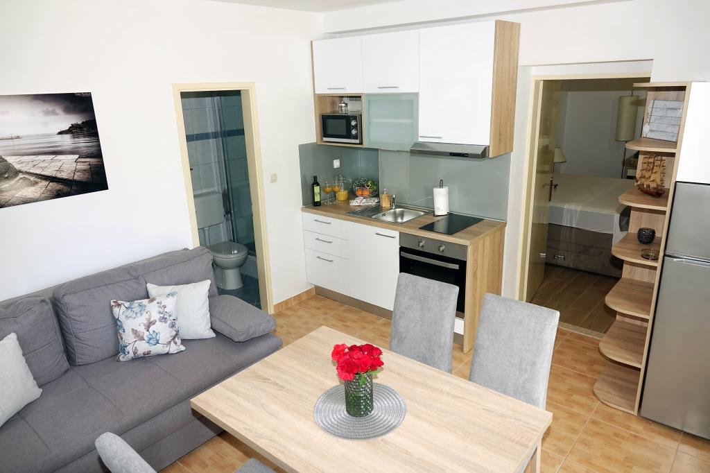 Chcieliśmy zarezerwować ten apartament już od kilku sezonów, ale niestety nie mieliśmy czasu. W tym roku mieliśmy szczęście i zatrzymaliśmy się w jednym z tych apartamentów. Naprawdę nam się podobało. Właściciel jest gościnny, lokalizacja jest doskonała. Mieszkanie jest czyste i wyposażone w wygodne łóżka, na których śpi się jak dziecko.