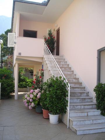Apartamenty znajdują się na oddzielnym piętrze domu rodzinnego, otoczonego zielenią i kwiatami. Dla samochodów wszystkich gości przewidziano miejsca parkingowe na ogrodzonym podwórzu. Każdy apartament posiada 1-2 balkony, na których można wypić przyjemną poranną kawę z widokiem na morze i wyspy Brač i Hvar. Do pięknej kamienistej plaży z gęstym lasem sosnowym można dojść w 5 minut, a do centrum tenisowego w dziesięć minut. Do centrum miasta można dotrzeć w 15-20 minut pięknie zagospodarowaną promenadą wzdłuż morza. Apartament A4+1 jest odpowiedni zarówno dla rodziny, jak i grupy przyjaciół, ponieważ zawiera 2 przestronne sypialnie z 2 łazienkami, salon z jadalnią oraz kuchnię wyposażoną w niezbędne naczynia i sprzęt AGD (lodówka z zamrażarką, kuchenka z piekarnik, kuchenka mikrofalowa, ... ). Mieszkanie jest klimatyzowane i posiada dwa balkony, wyposażone w stoły i krzesła oraz markizy. Studio jest nowocześnie wyposażone w mini kuchnię, podwójne łóżko, klimatyzację i telewizor, a także łazienkę z prysznicem i balkon ze stołem i krzesłami.