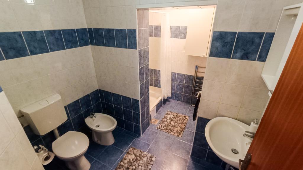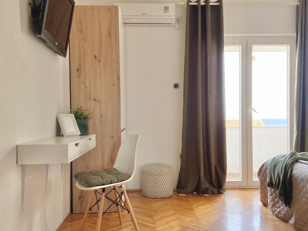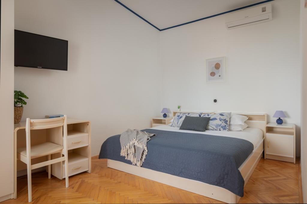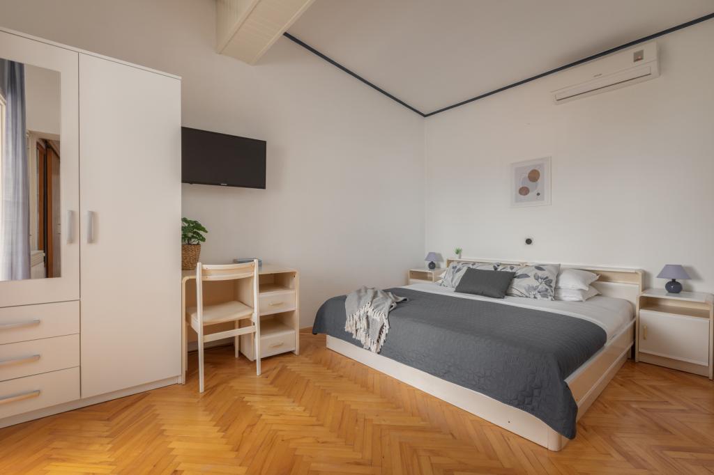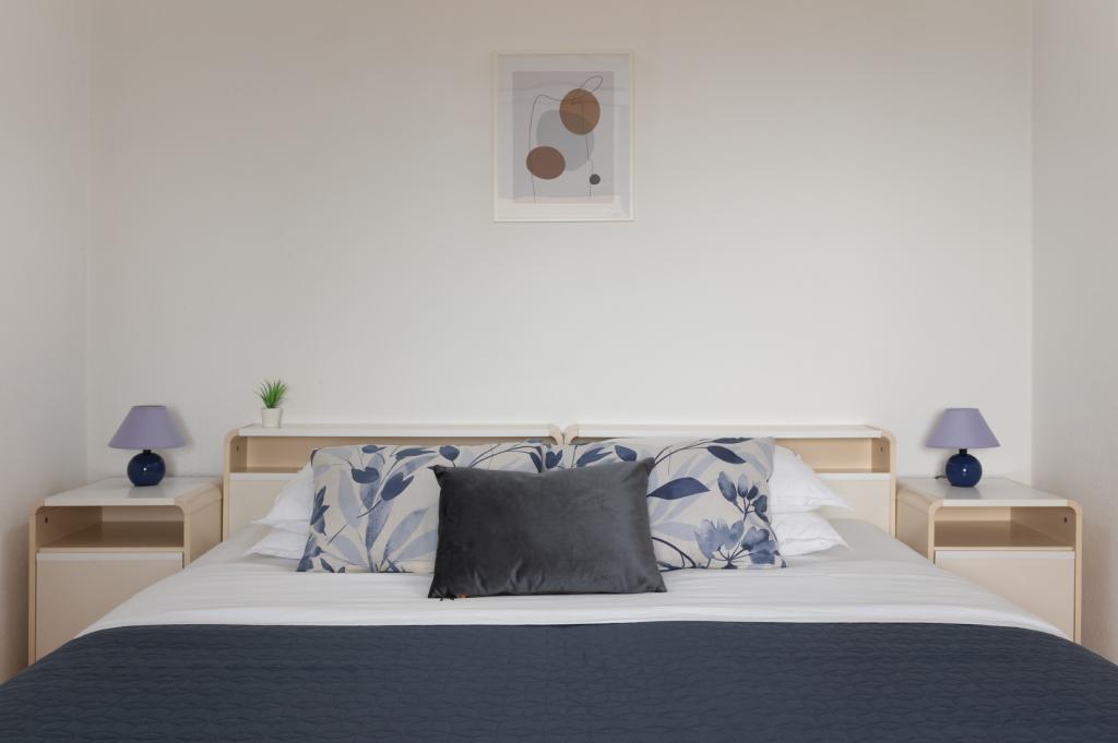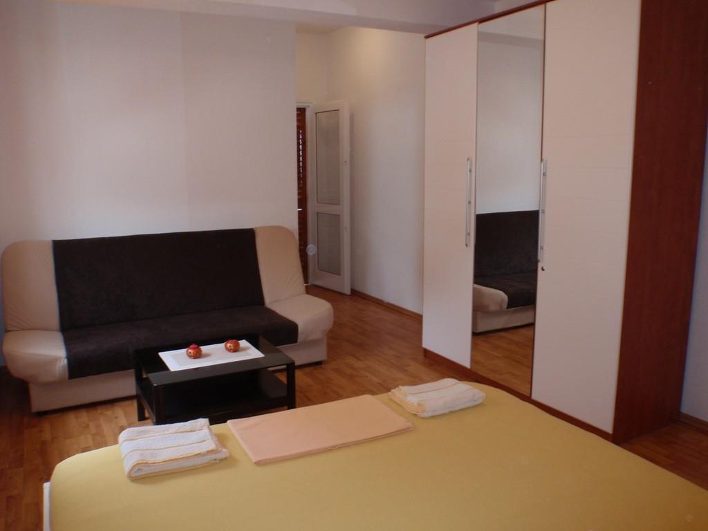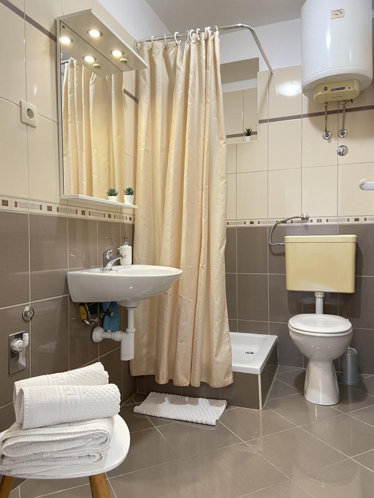 Apartament 5+4 jest idealny dla rodzin z dziećmi. Posiada dwie sypialnie (jedna dla 2 i jedna dla 3 osób), dwie rozkładane sofy w salonie, 3 łazienki, kuchnię oraz duże podwórko z miejscem do siedzenia, grillem i placem zabaw dla dzieci. Mniejsze mieszkania i pokoje w budynku przystosowane są dla 2 do 3 osób. Obiekt oddalony od plaży do 5 minut spacerkiem i 10 minut do centrum.