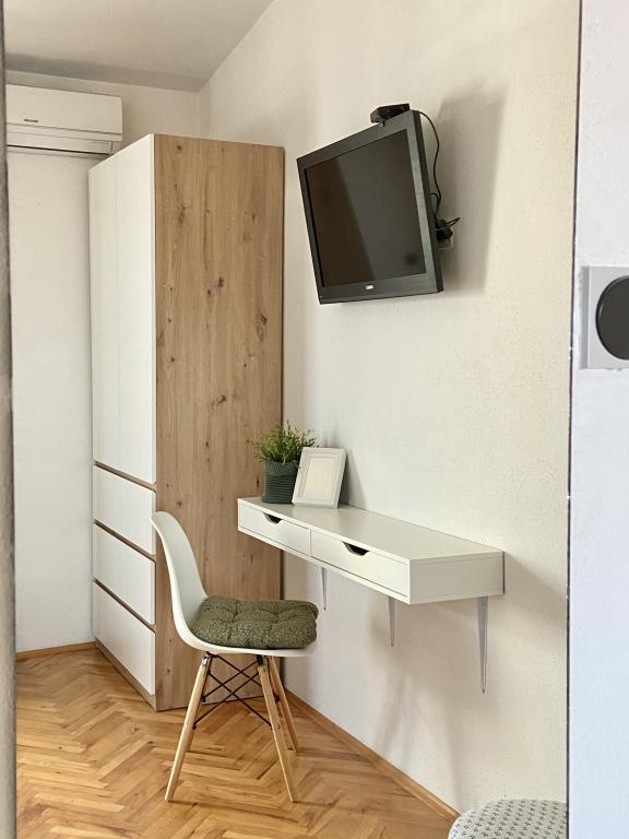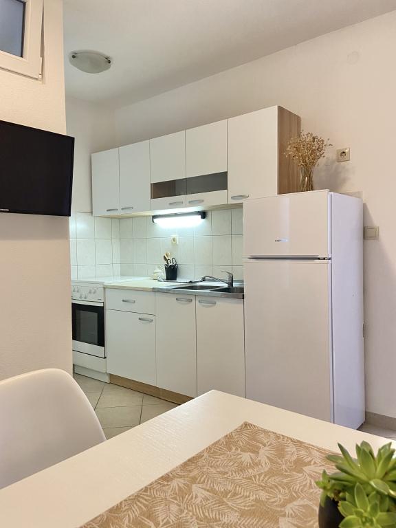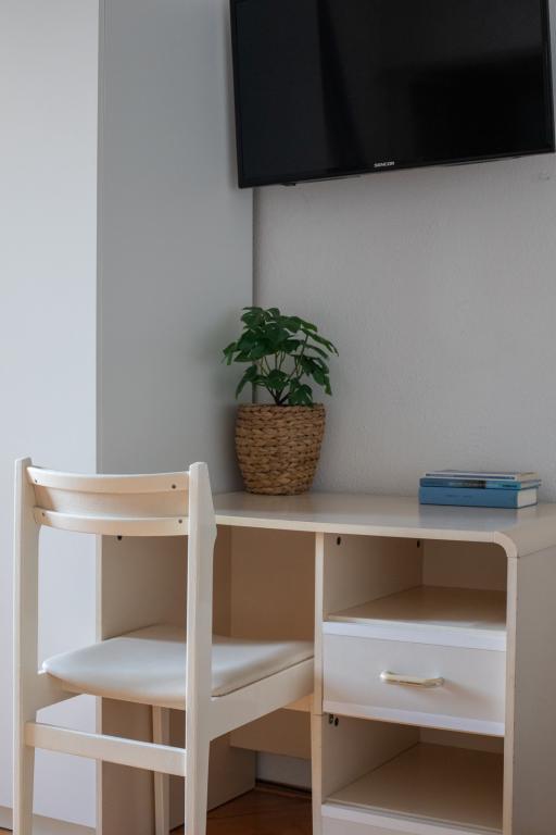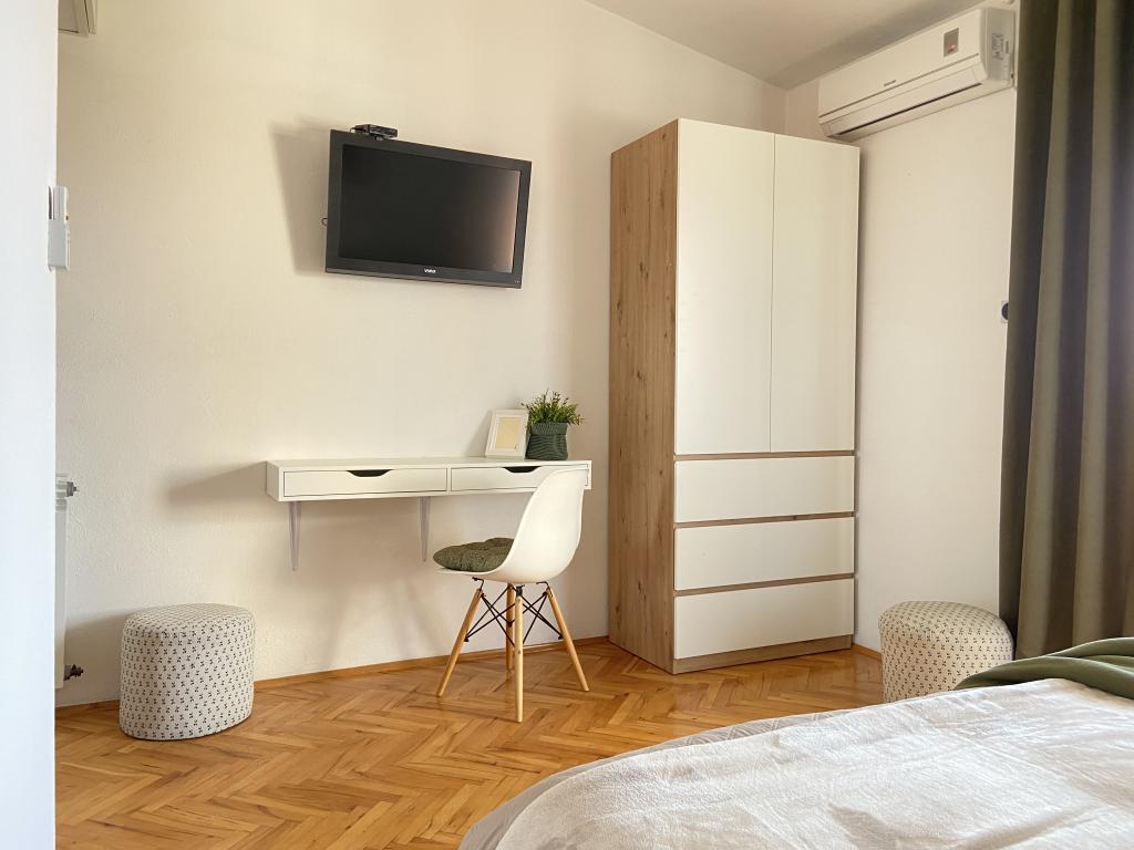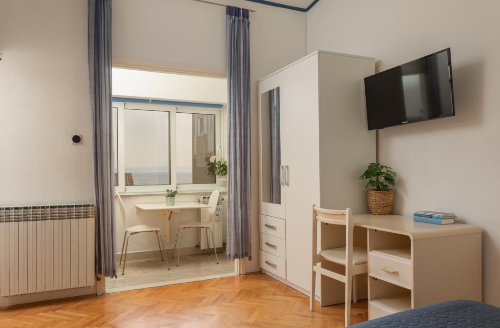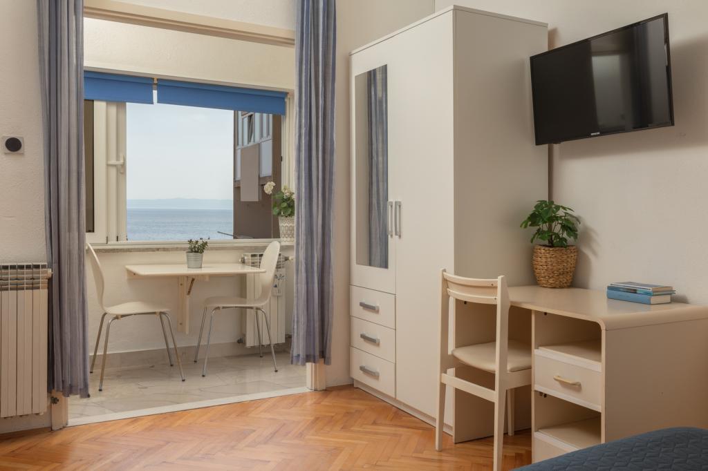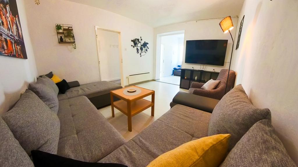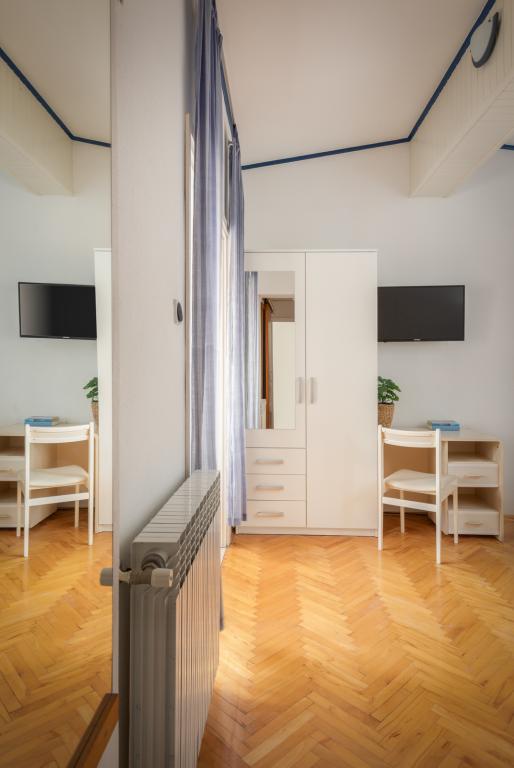 Apartament 5+4 jest idealny dla rodzin z dziećmi. Posiada dwie sypialnie (jedna dla 2 i jedna dla 3 osób), dwie rozkładane sofy w salonie, 3 łazienki, kuchnię oraz duże podwórko z miejscem do siedzenia, grillem i placem zabaw dla dzieci. Mniejsze mieszkania i pokoje w budynku przystosowane są dla 2 do 3 osób. Obiekt oddalony od plaży do 5 minut spacerkiem i 10 minut do centrum.